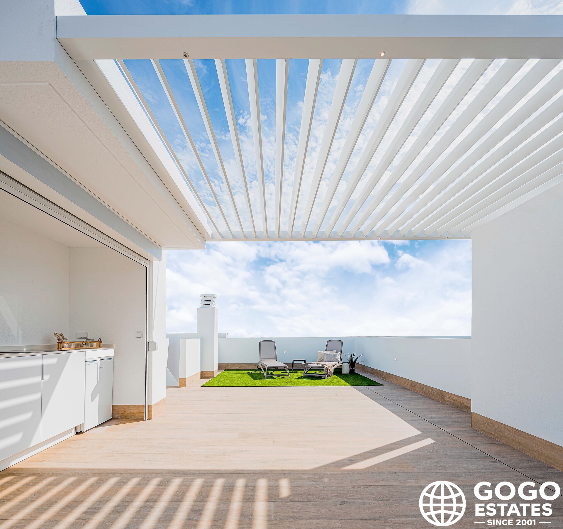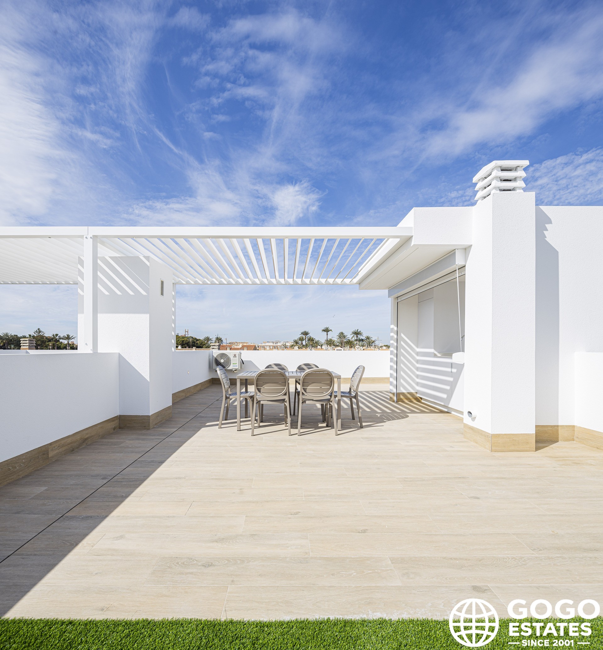 The exteriors of these properties are designed to enjoy the Mediterranean climate. Each bungalow has a private garden, perfect for moments of outdoor relaxation. Additionally, the terraces offer extra space to enjoy sea views and the natural surroundings. The inclusion of a solarium provides an ideal spot for sunbathing in privacy, while pergolas add a touch of elegance and shade, creating a welcoming environment for outdoor gatherings.