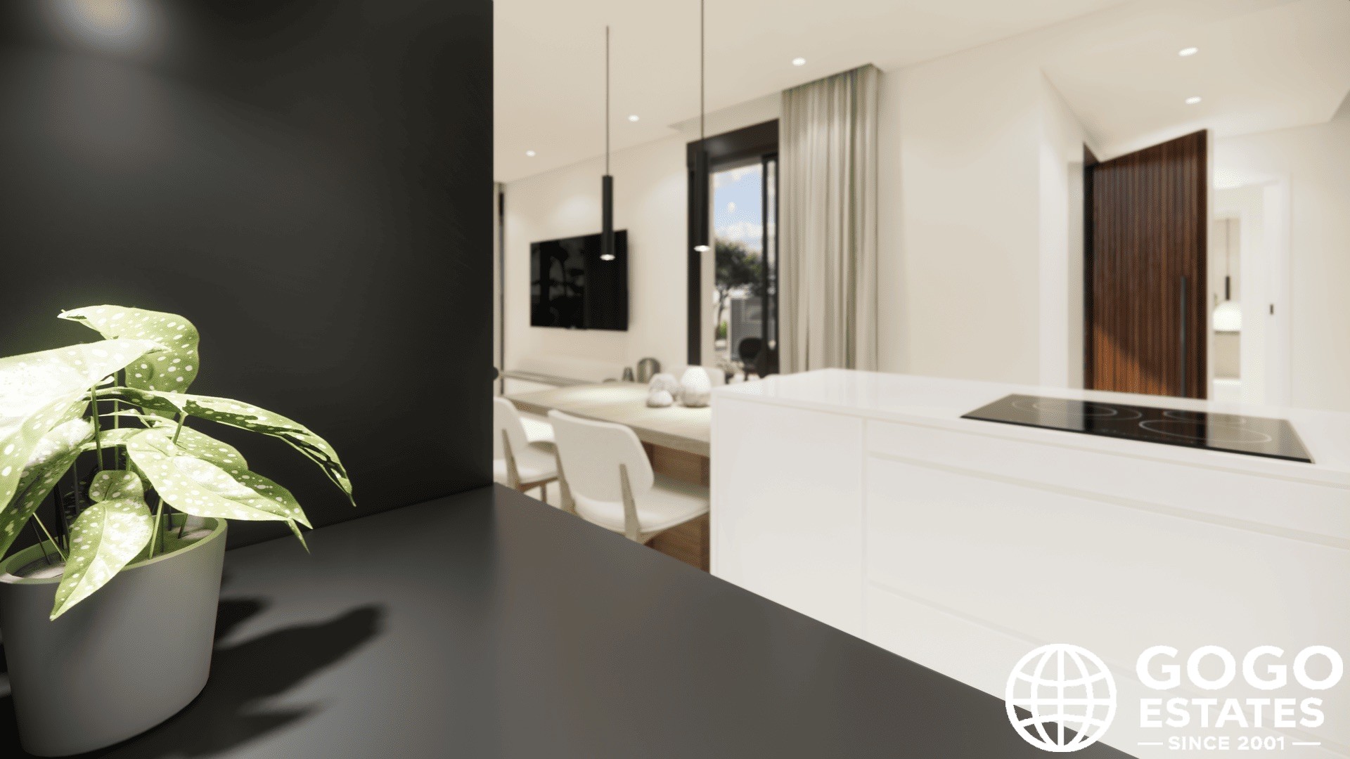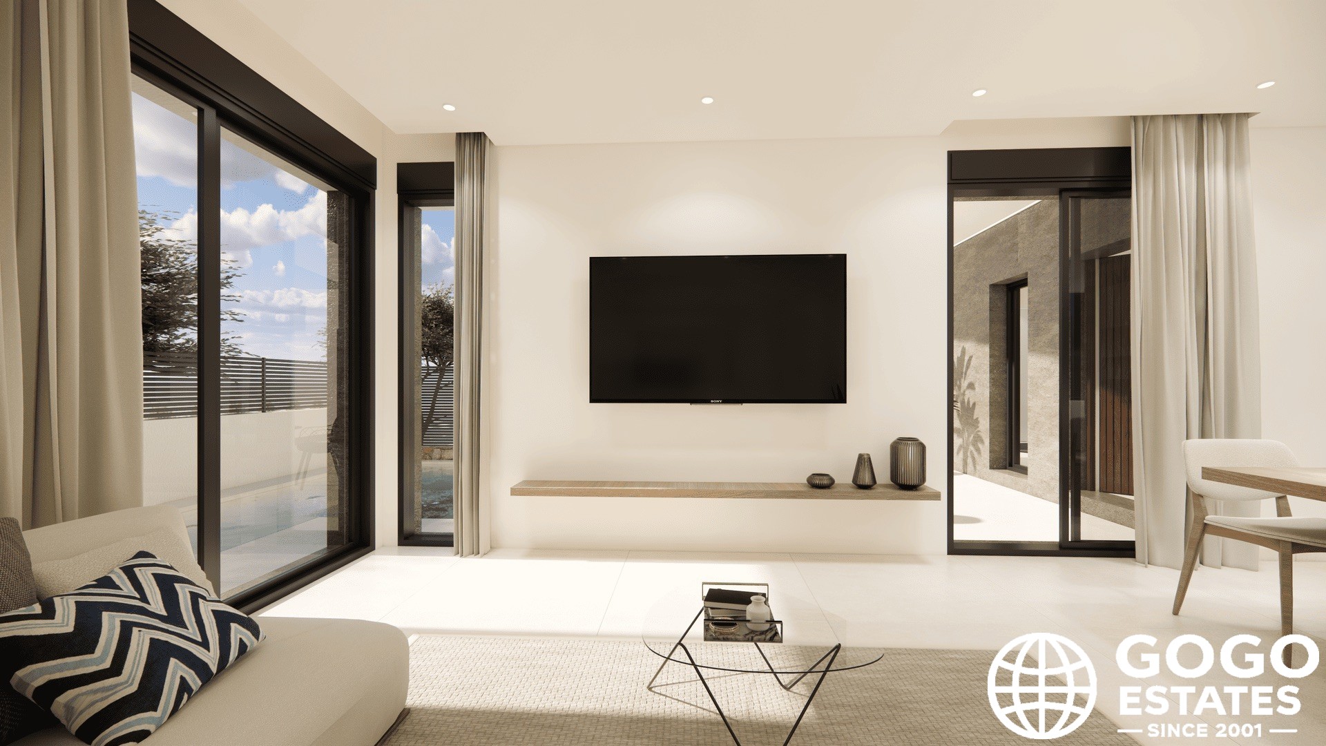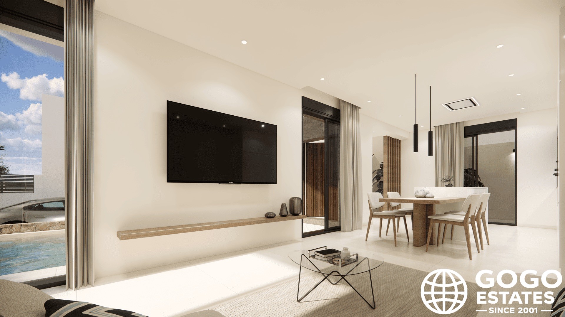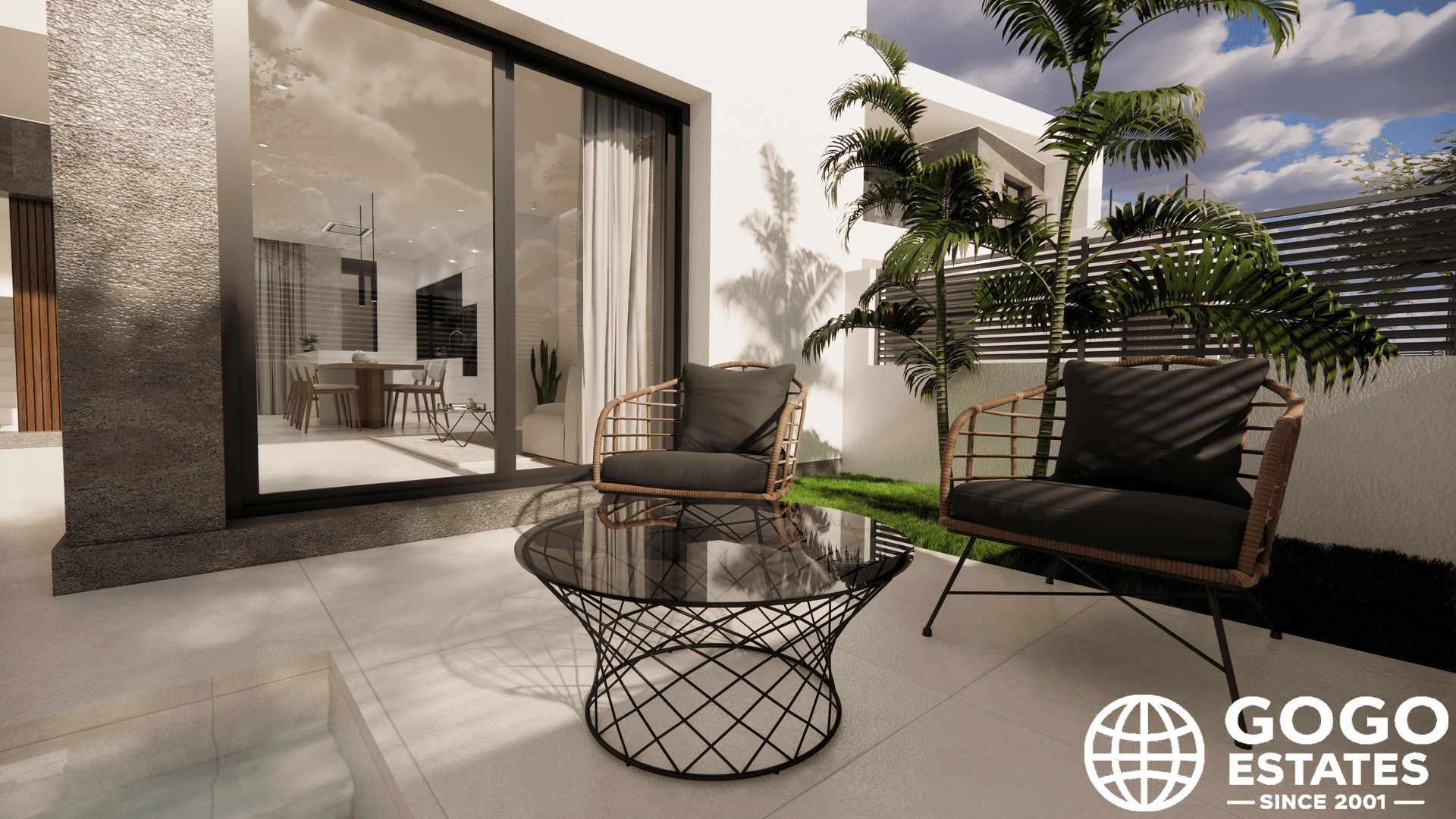The outdoor spaces of these townhouses are designed to maximize enjoyment of the Mediterranean climate. Each unit features a private garden, perfect for creating a personalized green space or enjoying outdoor moments. Additionally, the presence of a private pool in each townhouse offers a personal oasis to cool off during the warm summer days. The terrace, another standout feature, provides additional space for relaxation, outdoor dining, or simply enjoying the views of the surroundings.
