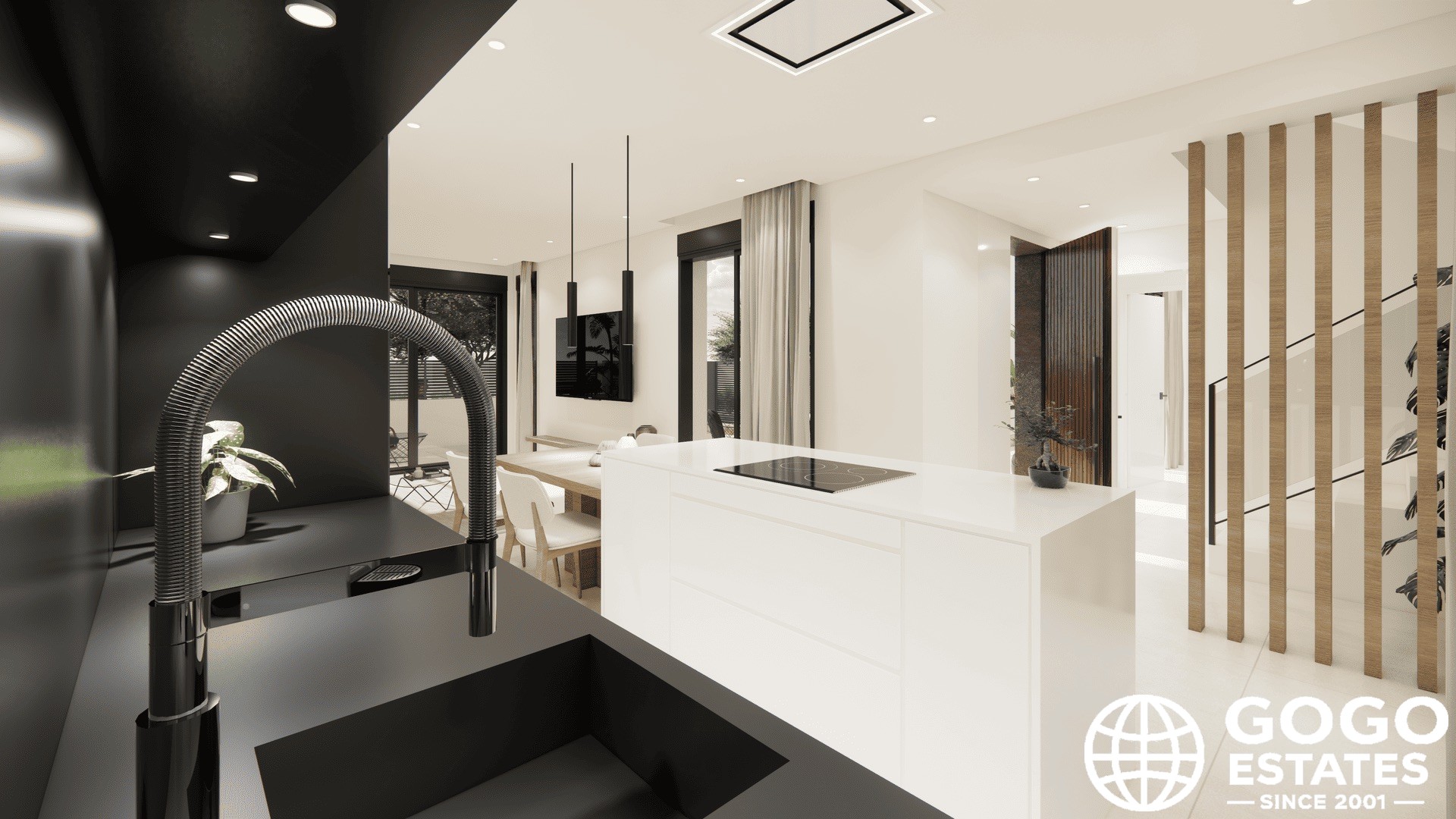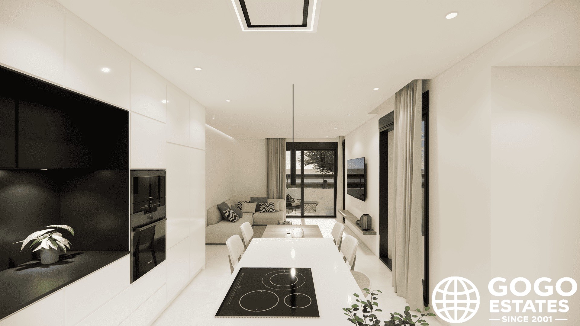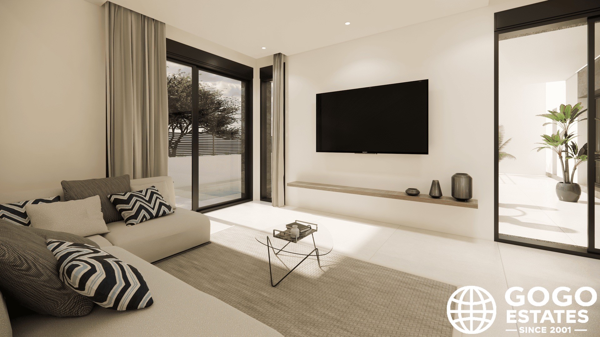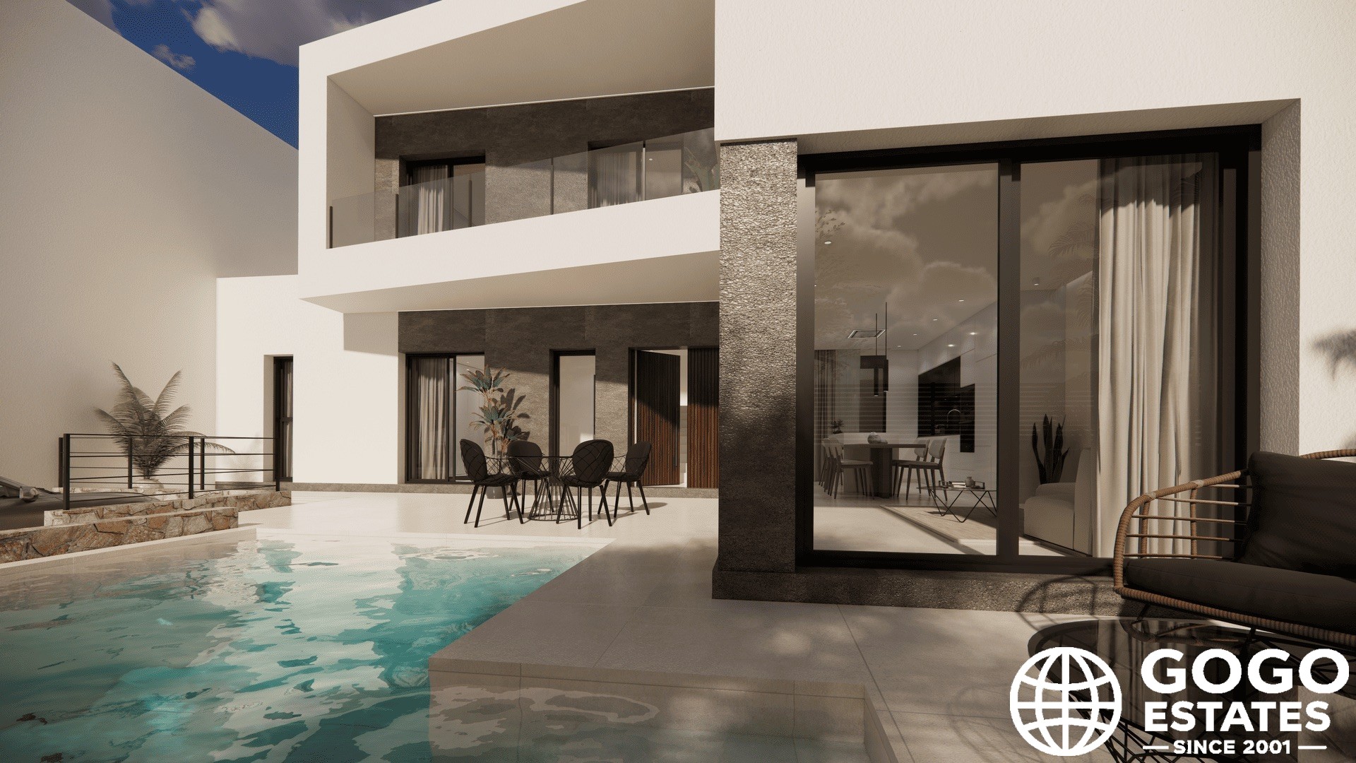 The outdoor spaces of these townhouses are designed to maximize enjoyment of the Mediterranean climate. Each unit features a private garden, perfect for creating a personalized green space or enjoying outdoor moments. Additionally, the presence of a private pool in each townhouse offers a personal oasis to cool off during the warm summer days. The terrace, another standout feature, provides additional space for relaxation, outdoor dining, or simply enjoying the views of the surroundings.