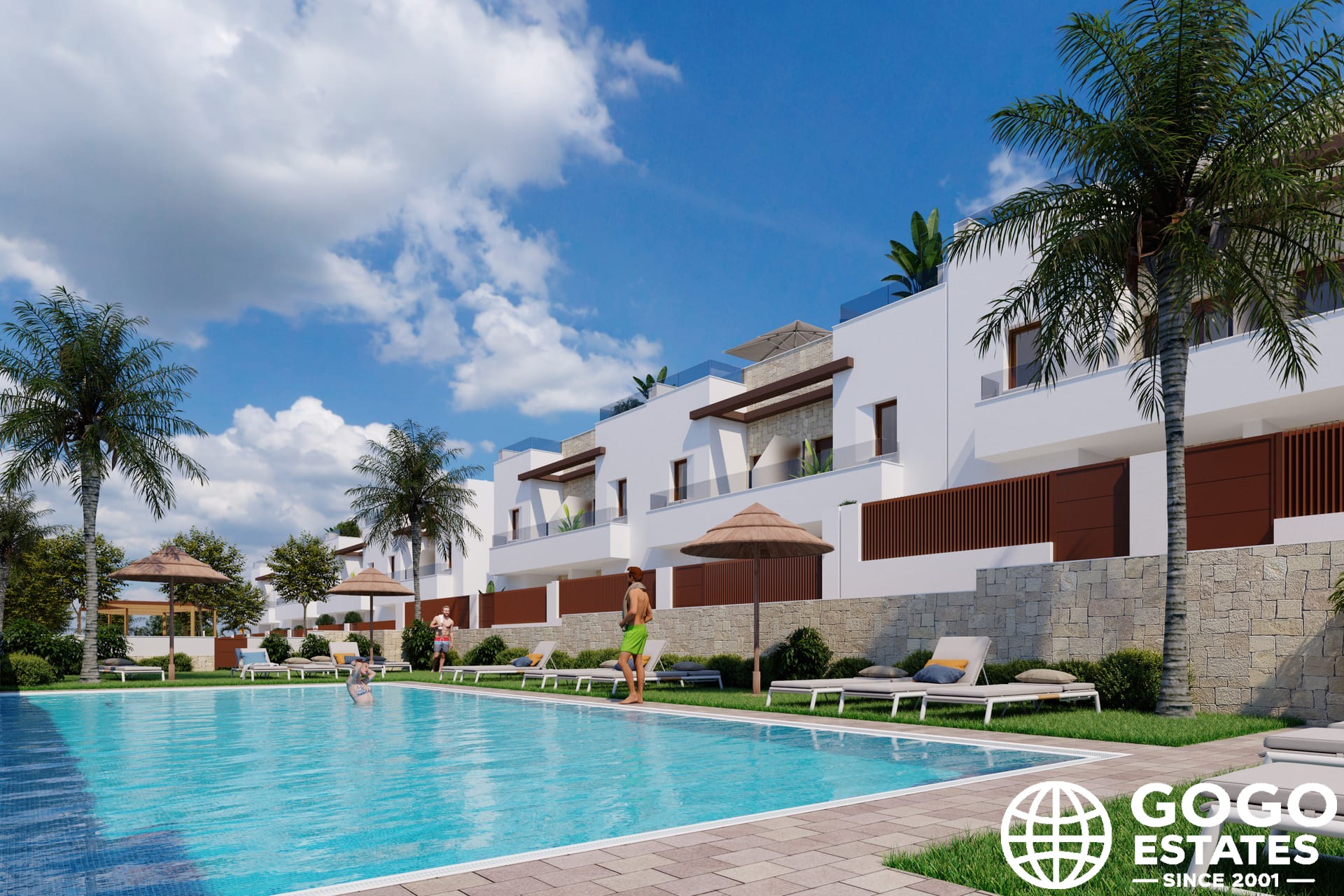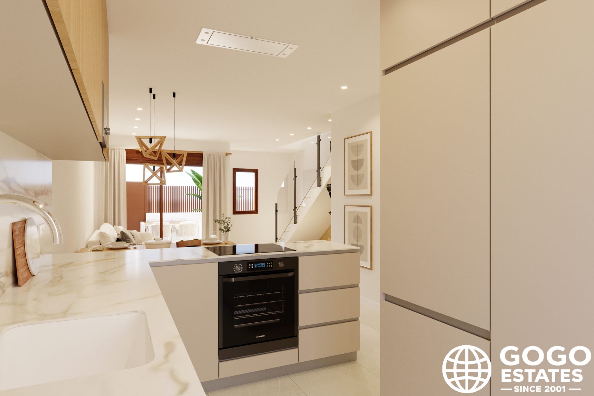 Located in the beautiful area of Orihuela Costa, this residential complex offers 13 townhouses designed for those seeking comfort and functionality. Each home includes three bedrooms and three bathrooms, maximizing space and comfort. The location is ideal for golf enthusiasts, as it is just 1 km away from a golf course.