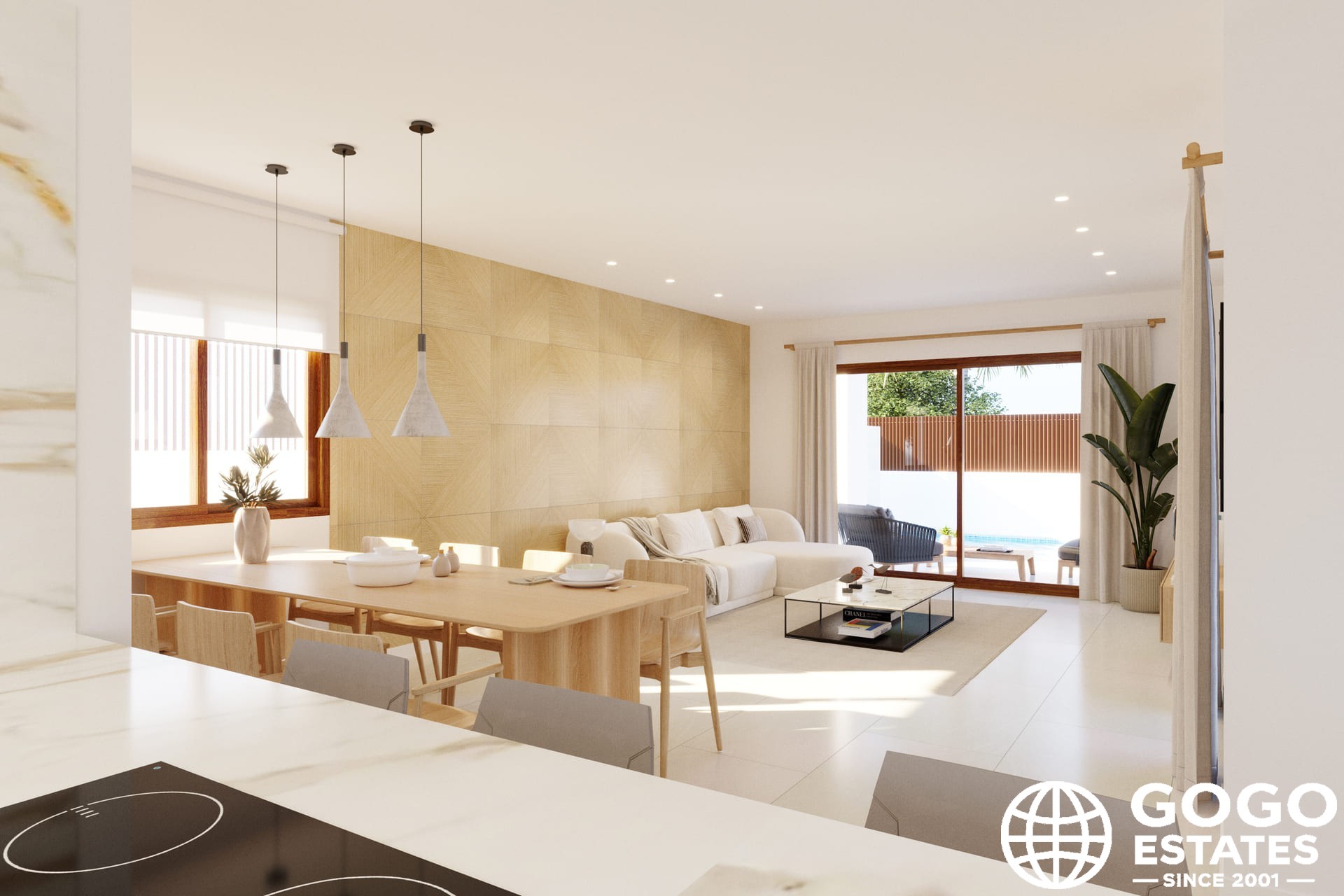 The townhouses feature terraces and private gardens, perfect for enjoying the Mediterranean climate. There is also an option to add a solarium. Inside, the homes are equipped with porcelain tile floors, electric shutters, and a video intercom, ensuring comfort and security.