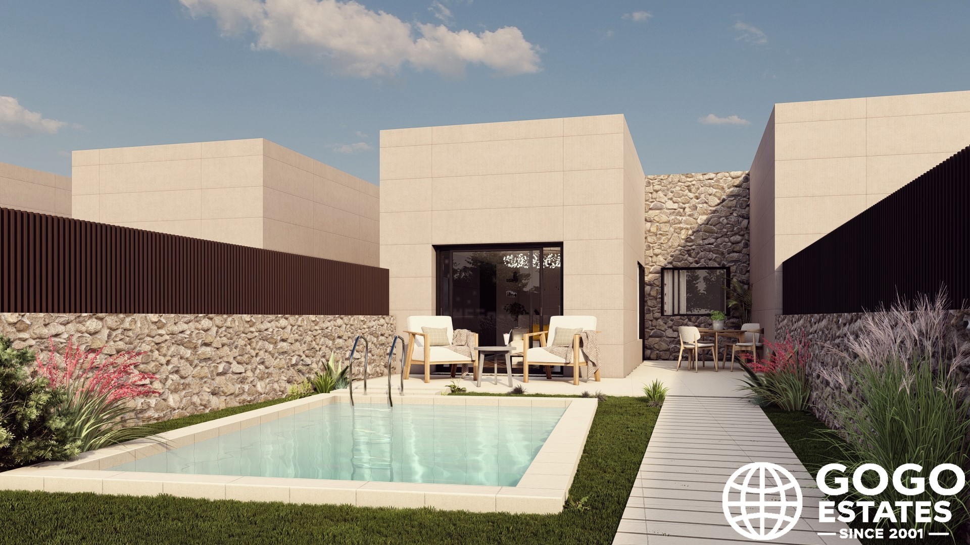 The exteriors of these townhouses are designed to fully enjoy the Mediterranean climate. Each home features a private garden, perfect for outdoor relaxation or family gatherings. Additionally, the presence of a private pool in each unit adds a touch of exclusivity and allows for refreshing swims in the privacy of your home. The terraces, spacious and well-oriented, offer additional space to enjoy the sun and surrounding views.