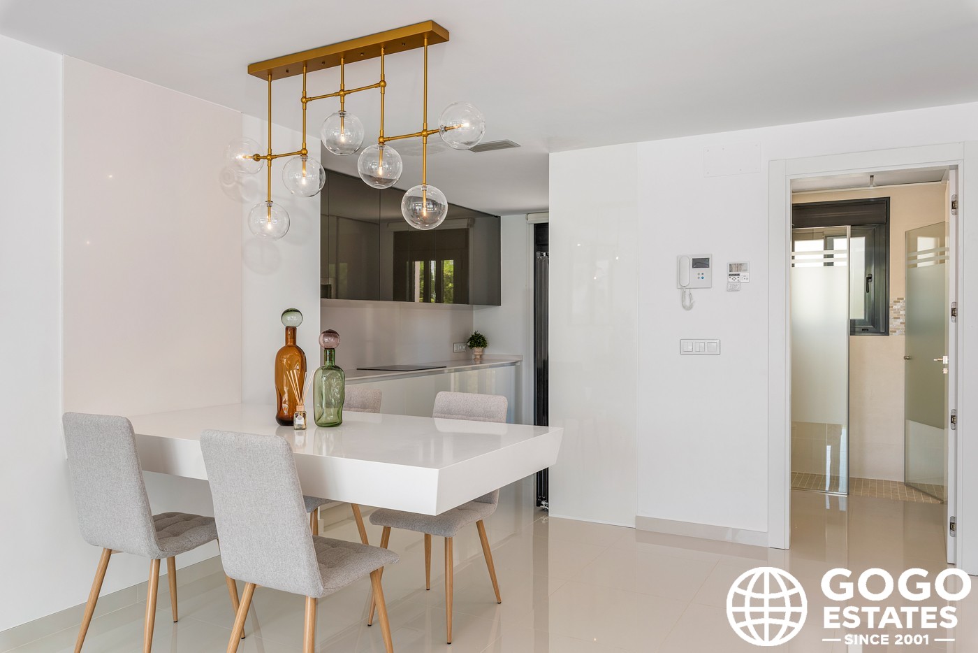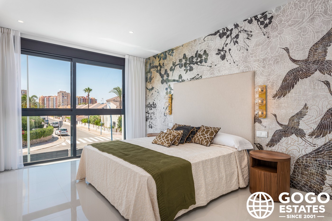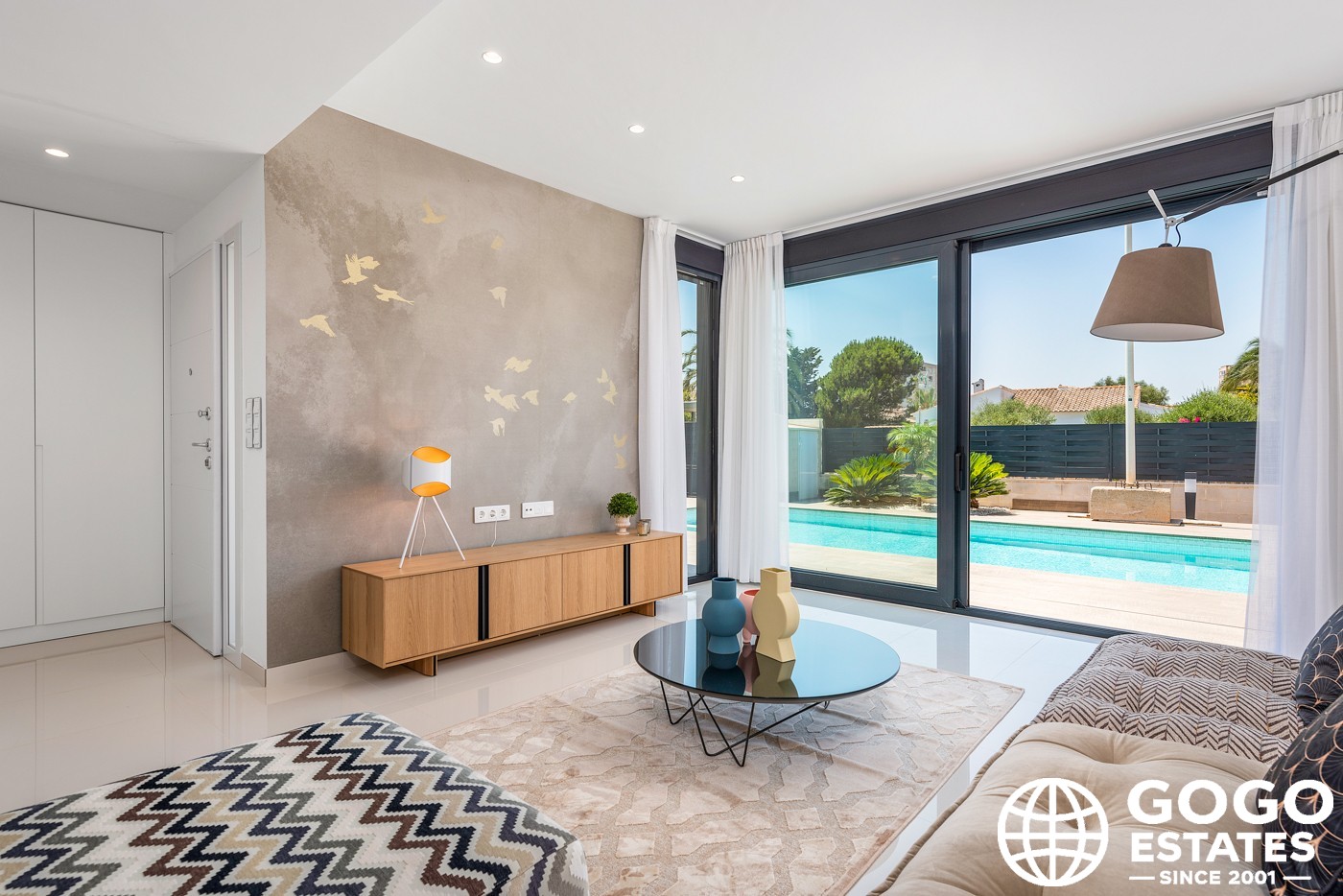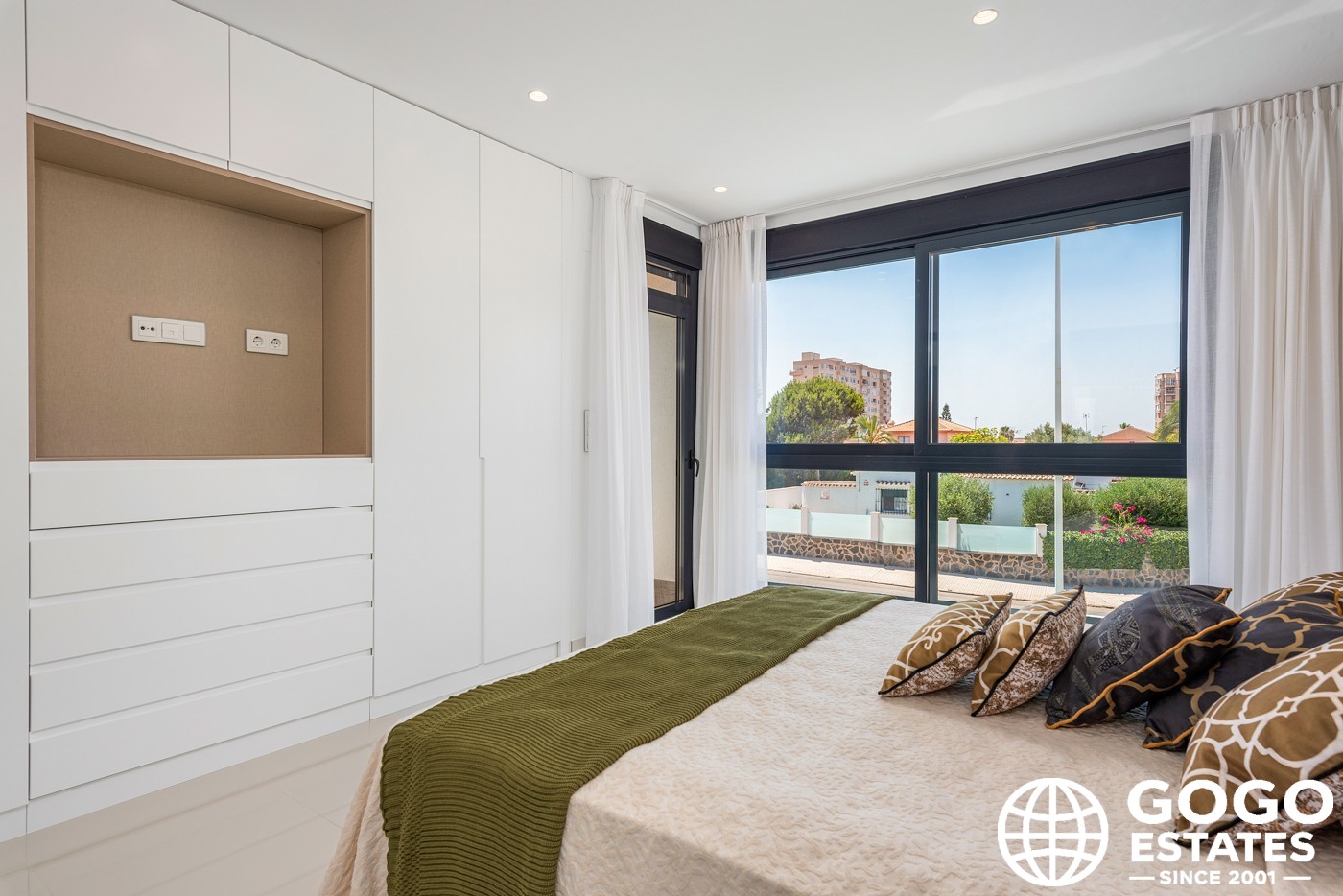 Indoors, the home is equipped with modern amenities like air conditioning, built-in wardrobes, and a fully furnished kitchen with high-quality appliances. Additional features include electric blinds, a video intercom system, and an option for electric vehicle charging.