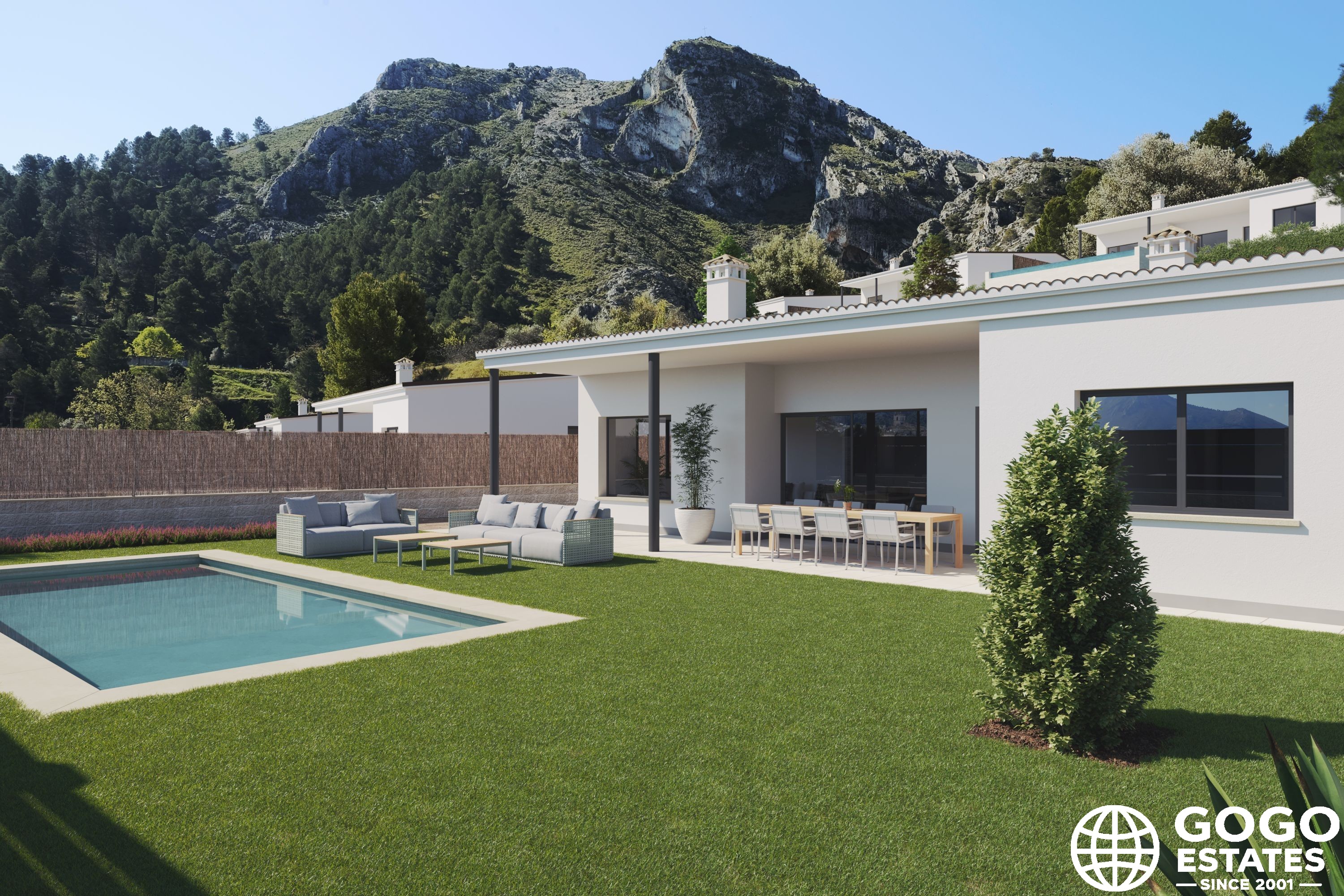The homes feature spacious terraces and private gardens, perfect for enjoying the outdoors. An optional private pool adds a touch of luxury and exclusivity. Integrated pergolas provide shaded spaces ideal for relaxation or gatherings.