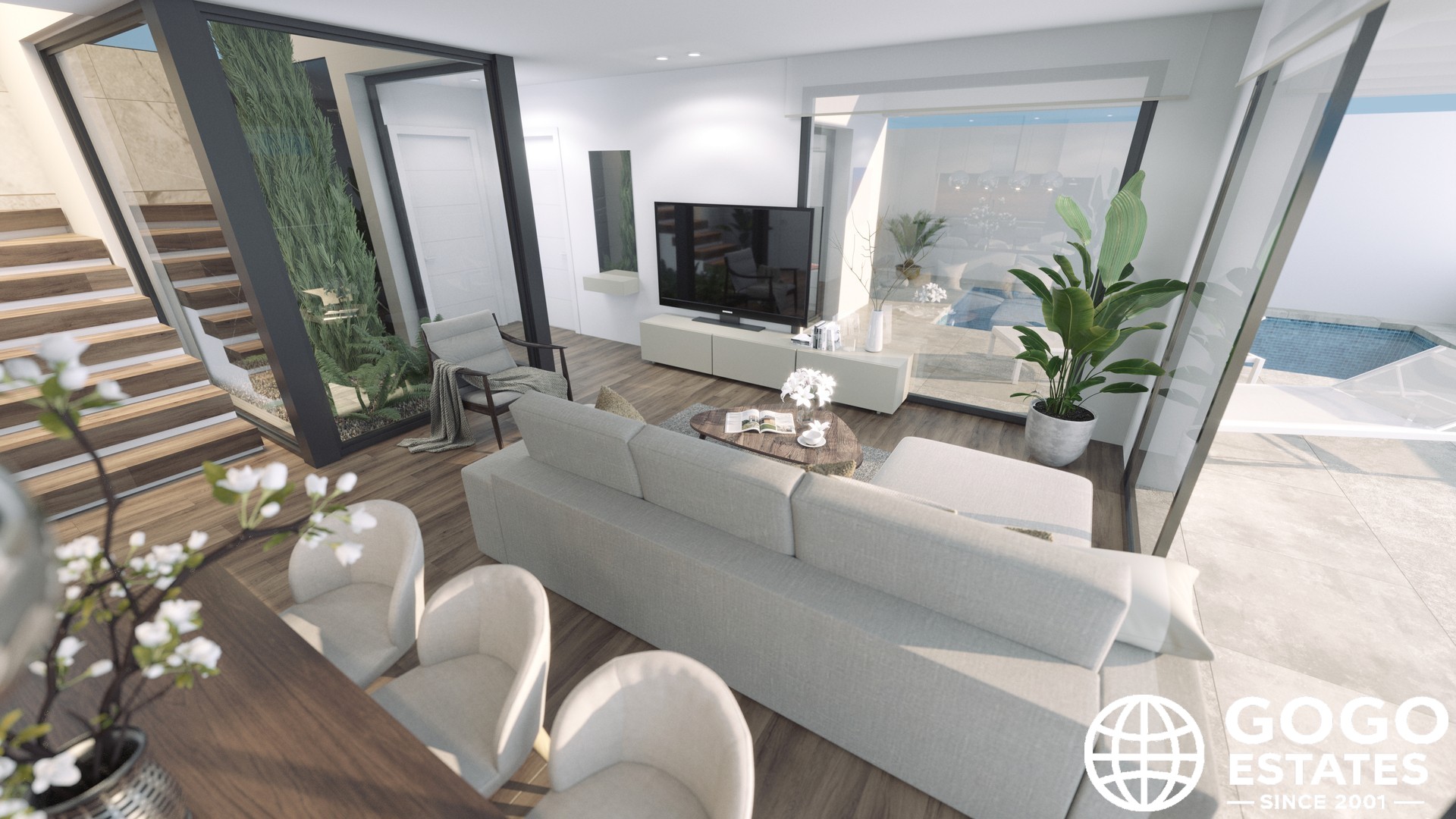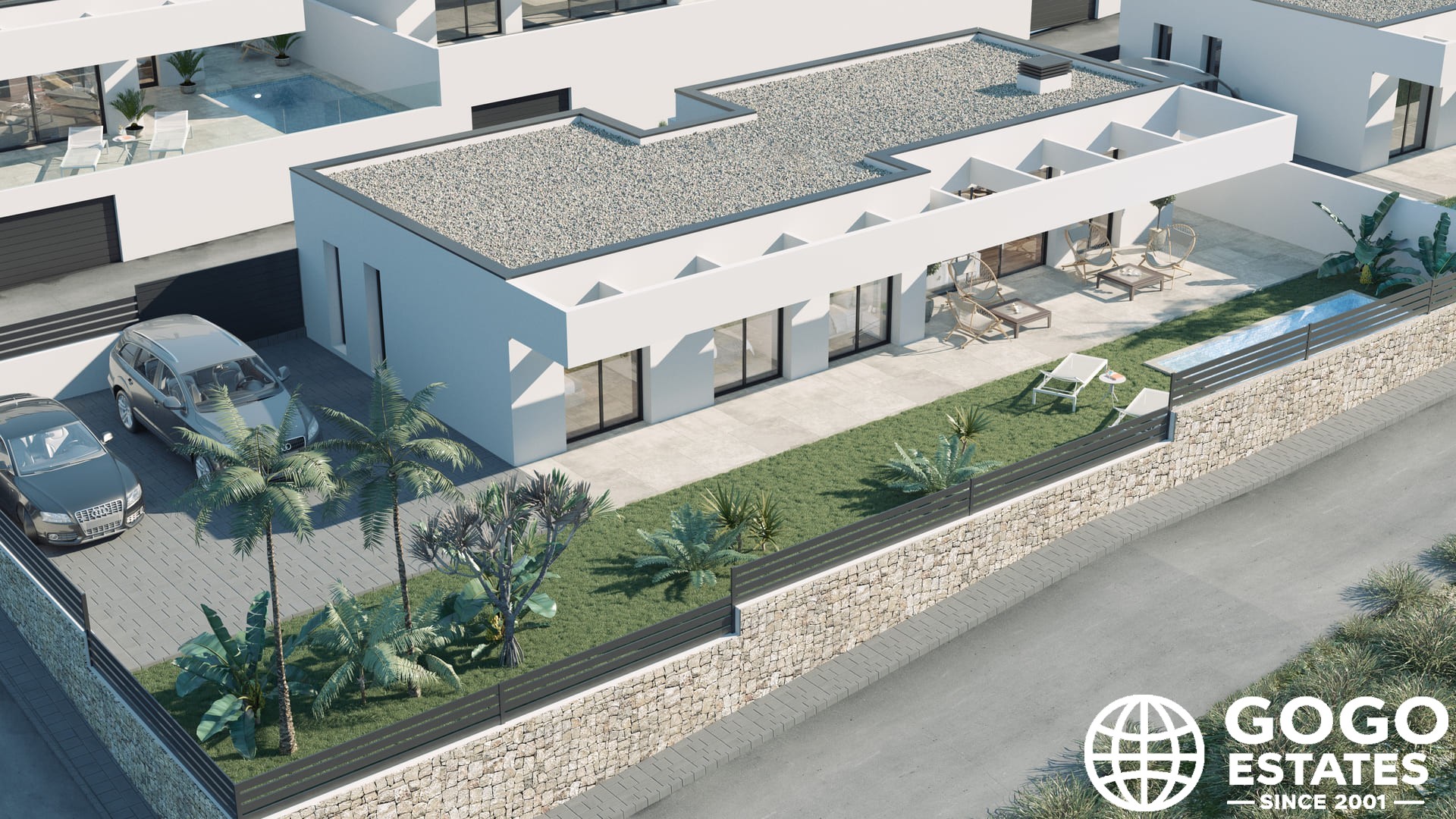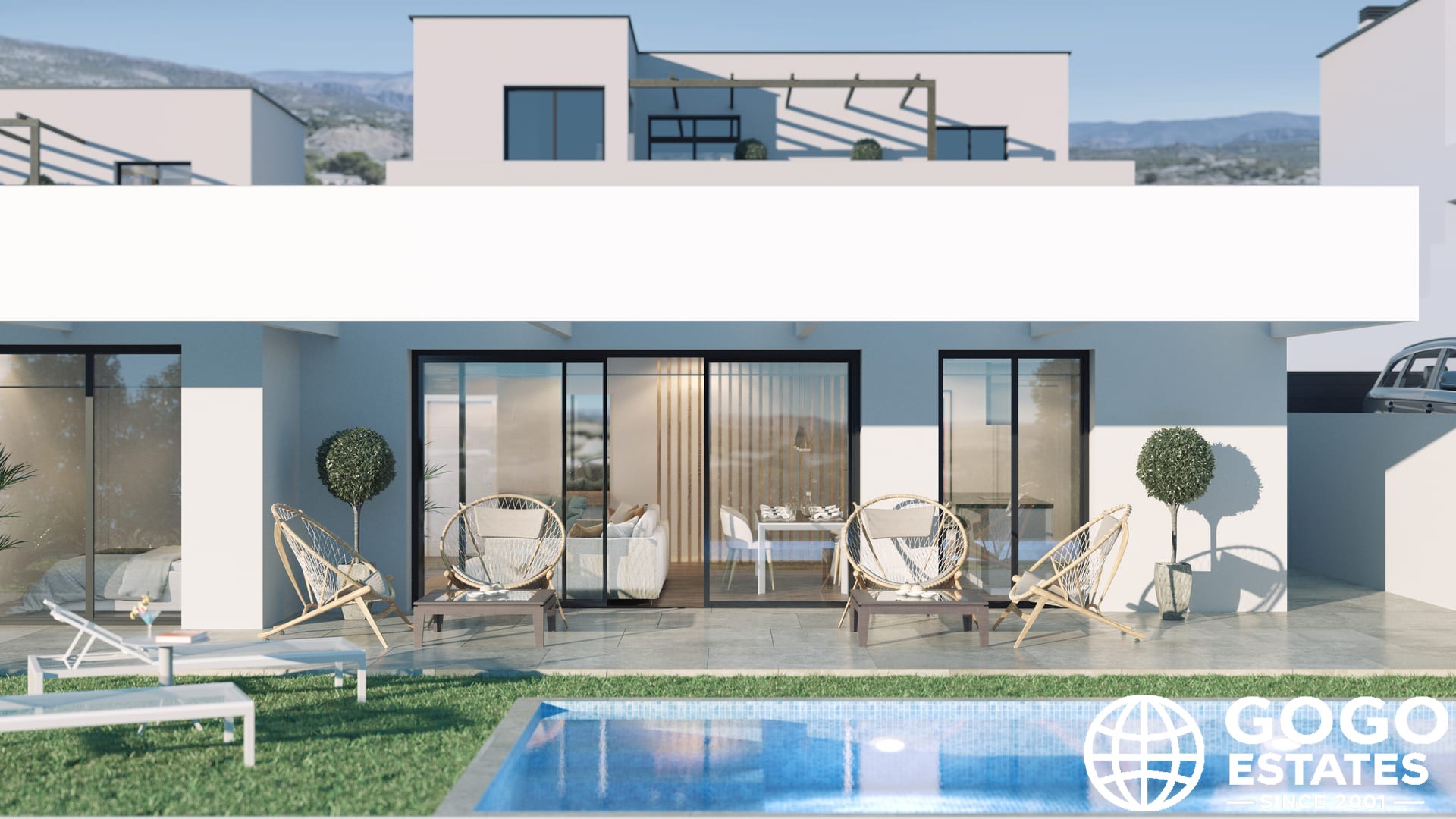 The exteriors feature private gardens and spacious terraces, ideal for relaxation and enjoying the Mediterranean climate. A private pool adds leisure and fun, while a pergola provides shade and a space for outdoor entertainment.