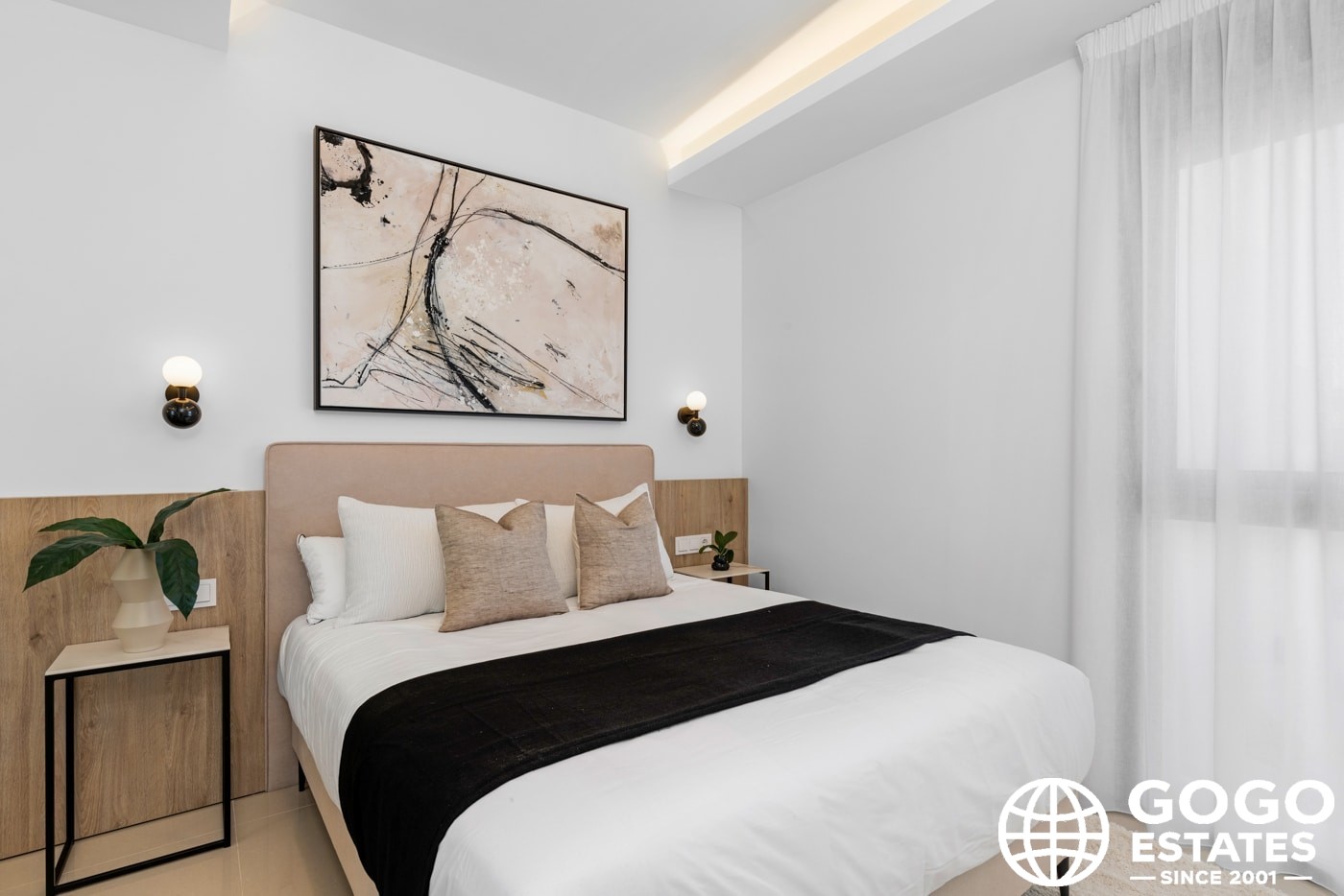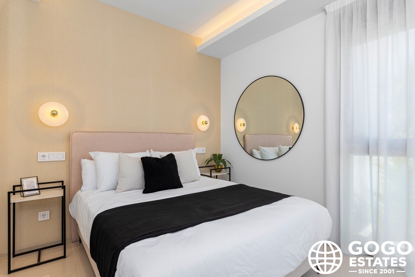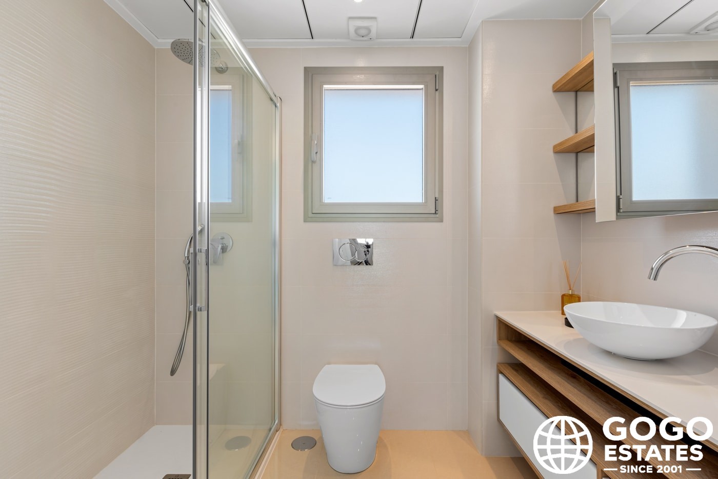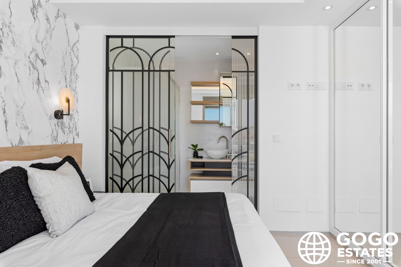 Inside, the villas provide three bedrooms and three bathrooms, with built-in wardrobes and a modern kitchen. Porcelain tile flooring and air conditioning ensure comfort and elegance.