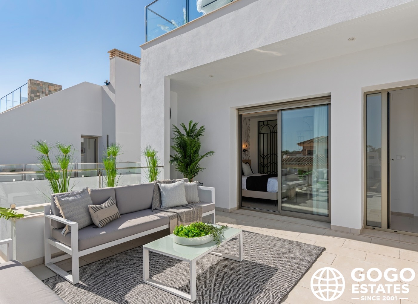 The exteriors feature private gardens, a pool, and terraces for outdoor relaxation. A solarium and outdoor jacuzzi enhance the luxury experience, perfect for enjoying the Mediterranean climate.