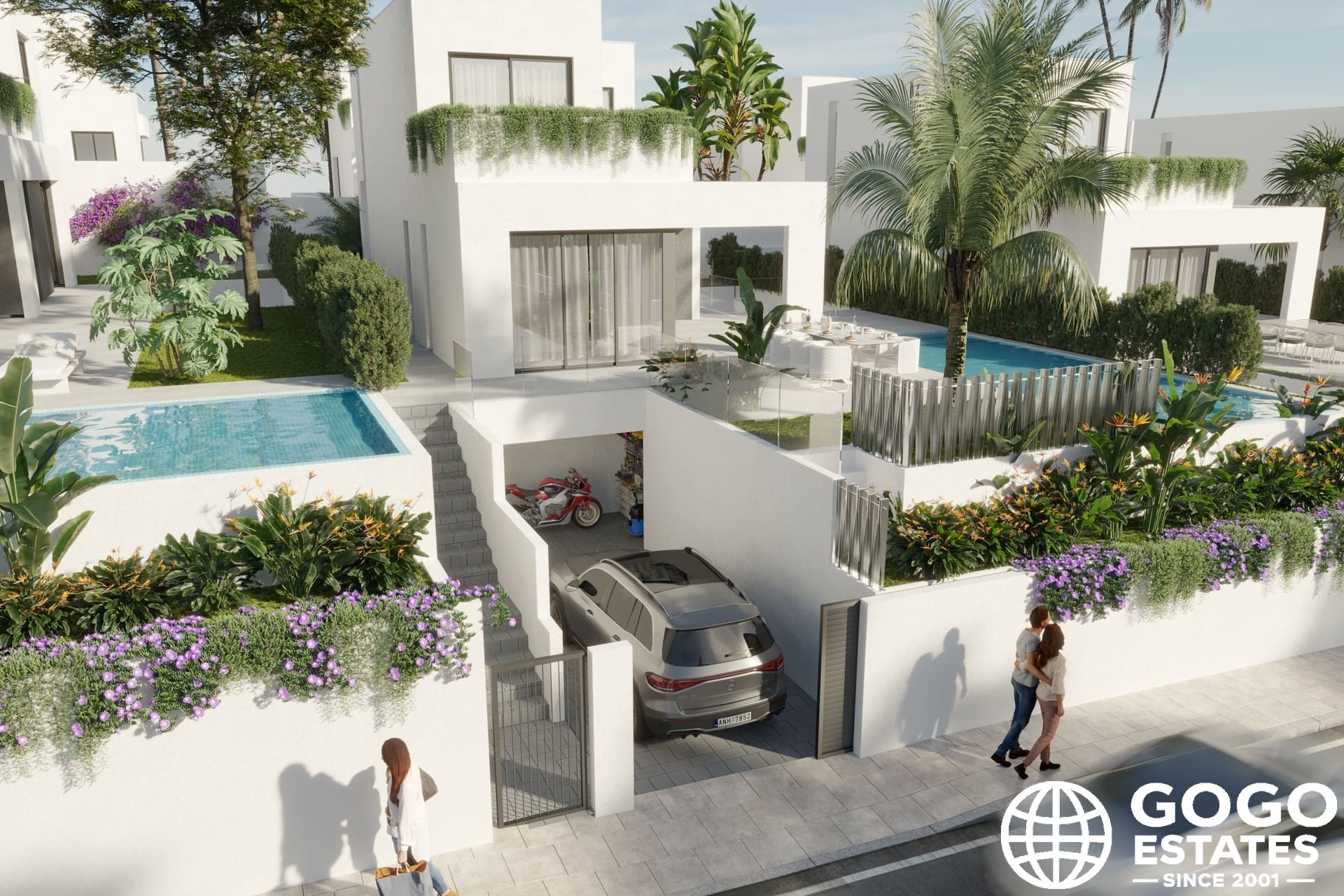 The exteriors of these homes in Finestrat are designed to maximize enjoyment of the Mediterranean climate. Each property features a private garden, ideal for relaxing moments or family enjoyment. The spacious terraces offer additional outdoor space, perfect for sunset dinners or simply enjoying the sea views. Additionally, the homes have a private pool, providing a personal oasis for cooling off during warm summer days. The presence of a pergola adds a touch of elegance and functionality, allowing enjoyment of the outdoors at any time of day.