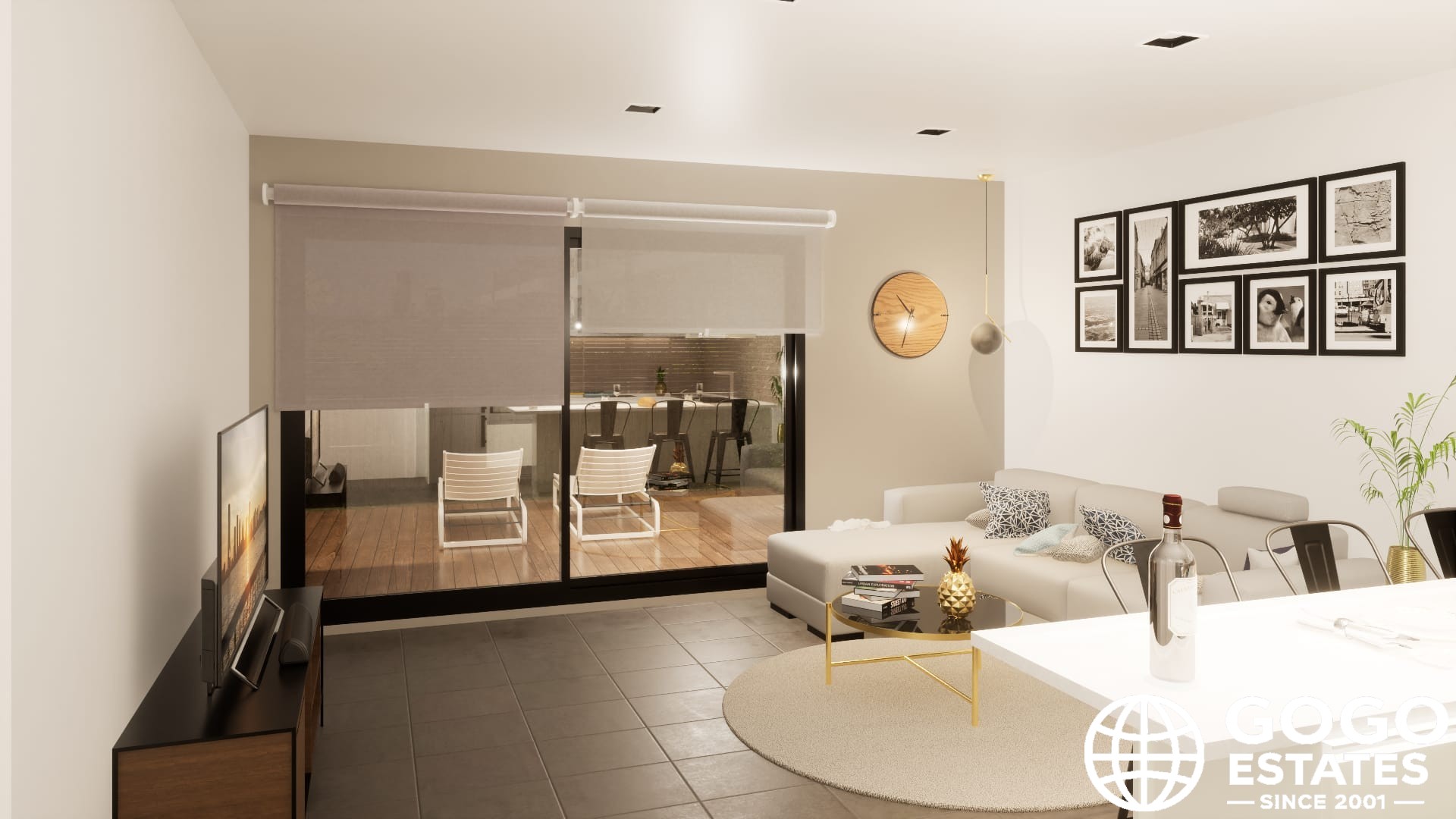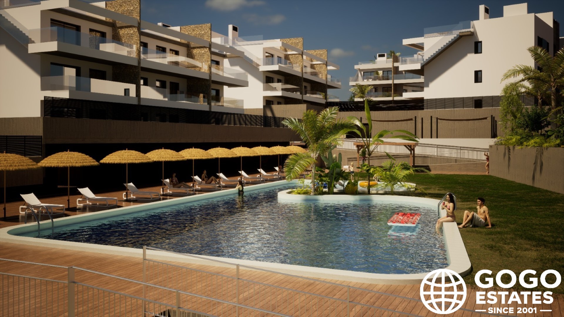 Inside, the homes are fully furnished with modern appliances and porcelain tile floors. Built-in wardrobes provide efficient storage, while air conditioning maintains a pleasant atmosphere. The complex also includes a community pool, jacuzzi, gym, and landscaped areas.