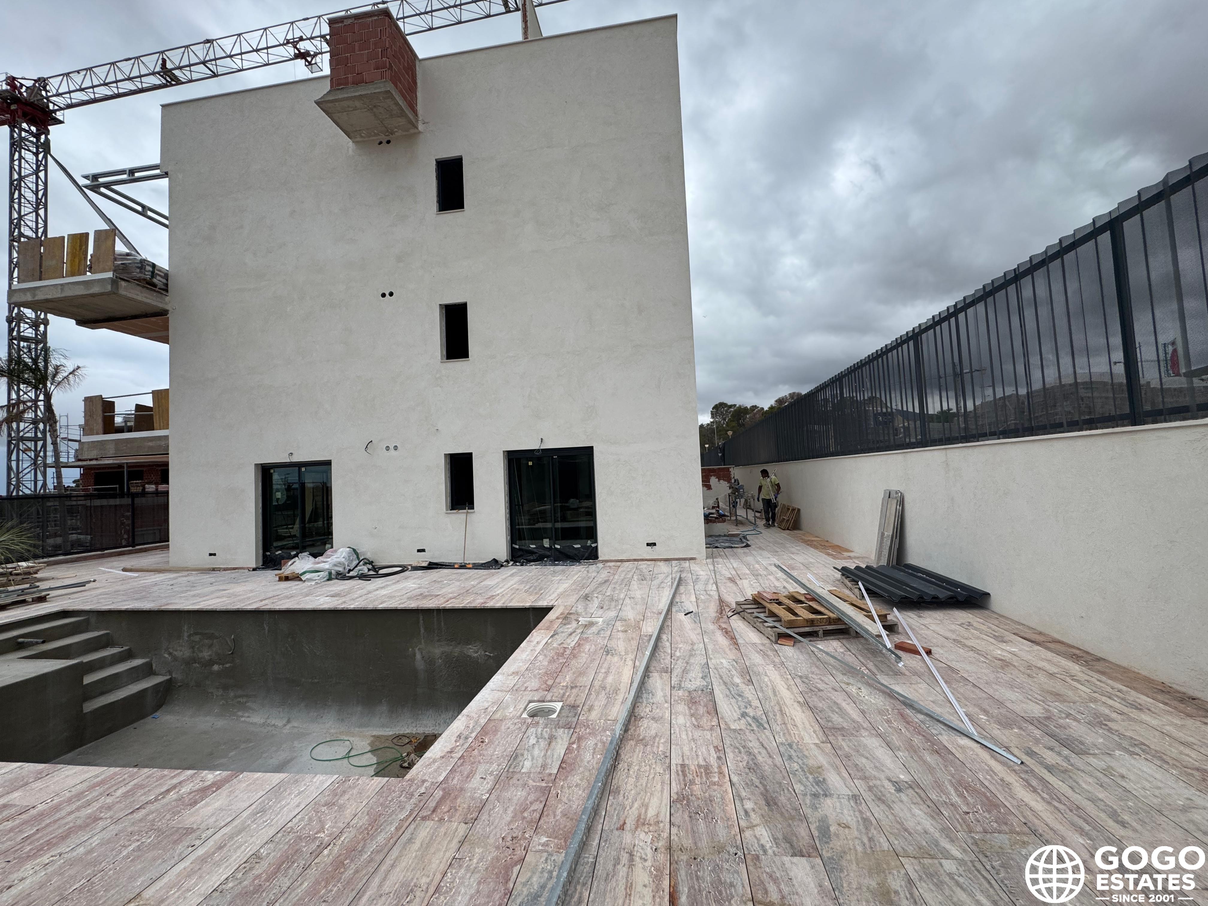 Outdoor areas include terraces and solariums, perfect for enjoying the Mediterranean climate. Some homes offer private pools and gardens, enhancing the serene environment. Electric shutters and air conditioning ensure year-round comfort.