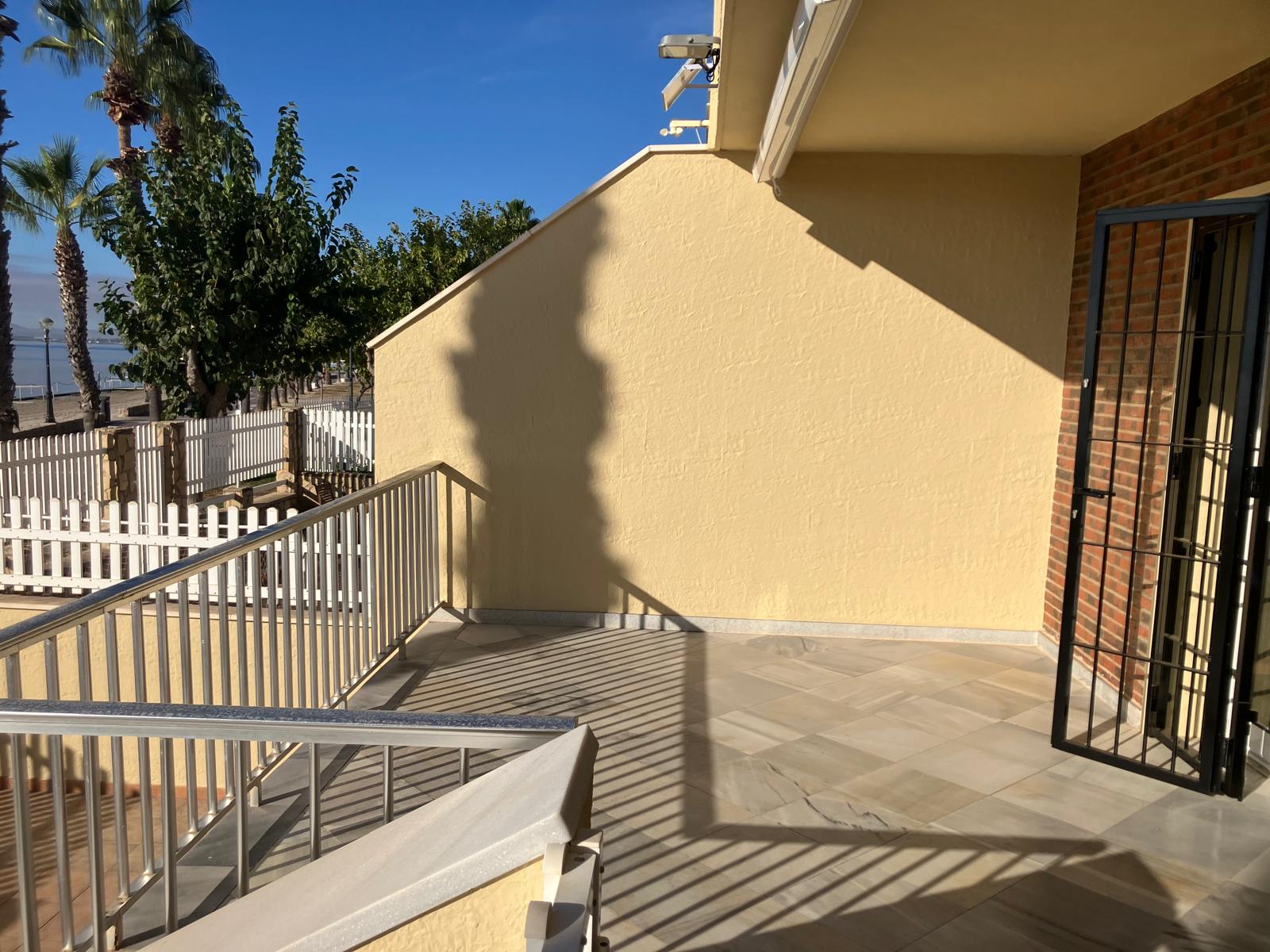Discover this exquisite frontline mansion at Mar Menor, featuring 5 bedrooms and 2 bathrooms, fully furnished for your convenience. This property presents an extraordinary opportunity to elevate your lifestyle. Experience breathtaking views of the Mar Menor from this stunning semi-detached chalet, with direct access to the promenade and beach, allowing you to enjoy the refreshing sea breeze and create unforgettable moments by the water. The home is meticulously maintained and spans two floors plus a basement, making it ready to become your ideal residence. On the ground floor, you’ll find a spacious terrace of nearly 40 square meters, perfect for relaxation and soaking up the sun. The bright and inviting living-dining area complements the independent kitchen, which includes a gallery for added functionality and comfort. Additionally, this level features a bedroom and a bathroom, ideal for guests or as a main bedroom. The first floor hosts four bedrooms, two of which boast private terraces with direct sea views, perfect for enjoying spectacular sunrises. A full bathroom serves this level as well. The basement adds significant value, offering ample space for multiple cars along with storage and utility areas. With 126 m² of built space on a 245 m² plot, this property is a unique opportunity for those seeking a high quality of life by the sea. Don’t miss the chance to live in this privileged setting. Come visit and fall in love with your new home! Basic Features: - Semi-detached chalet - 1 floor - 126 m² built - 5 bedrooms - 2 bathrooms - 245 m² plot - Terrace and balcony - Garage space included in the price - Second-hand/good condition - Built-in wardrobes - Storage room - Constructed in 1978