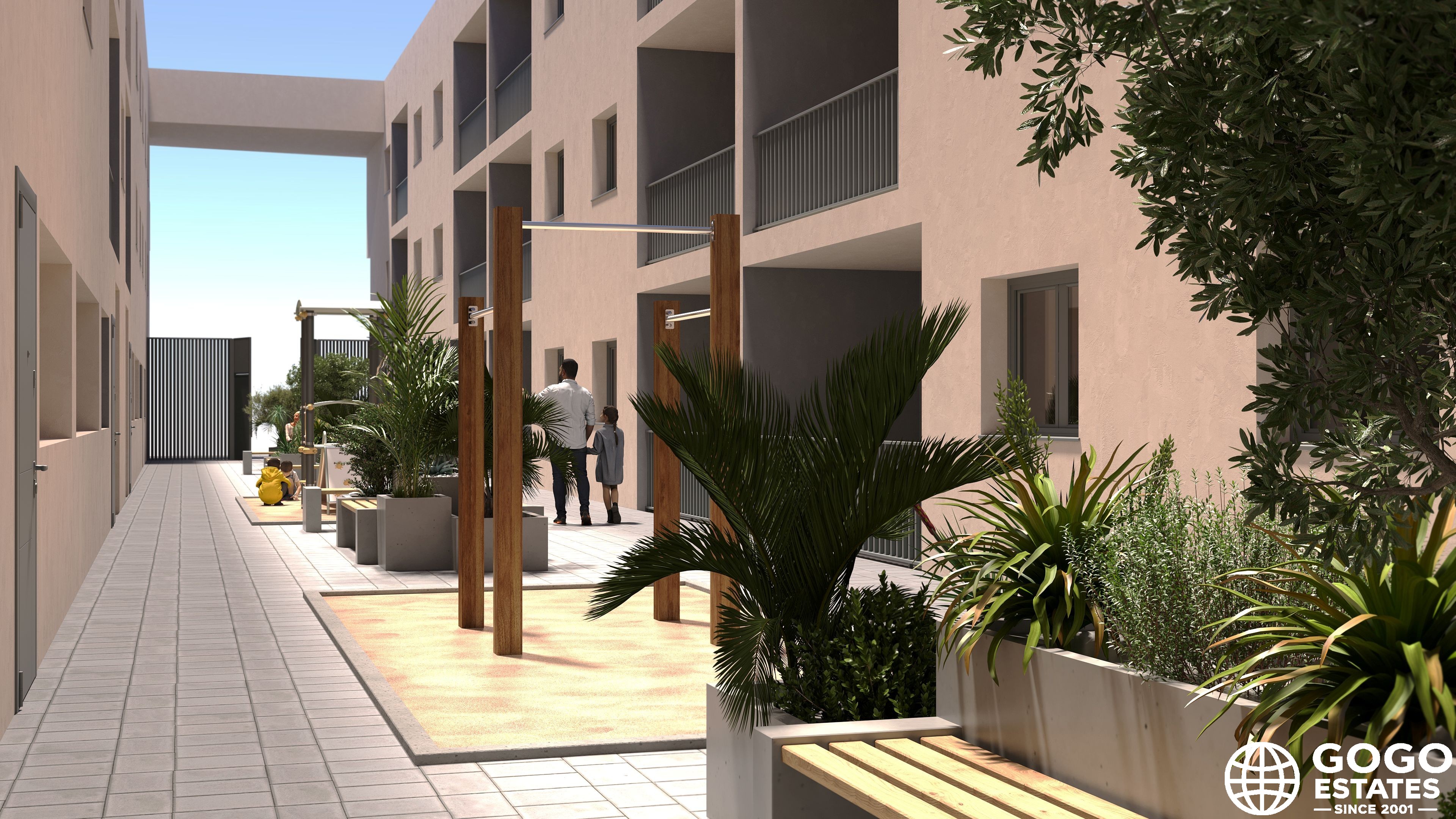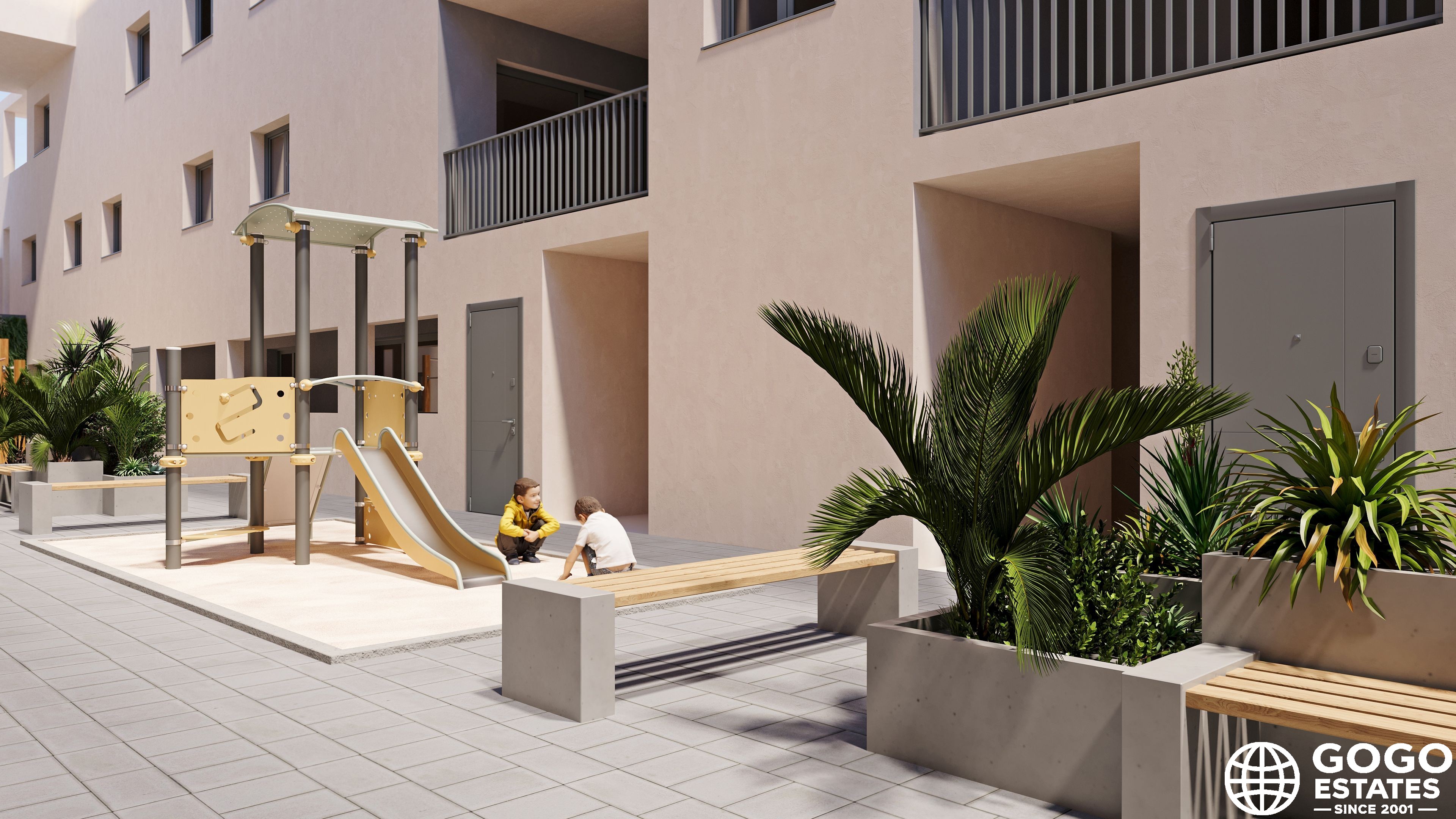 The apartment features modern amenities such as built-in wardrobes, video intercom, and pre-installation for air conditioning. The 3m² terrace provides a perfect outdoor area to enjoy the Mediterranean climate.