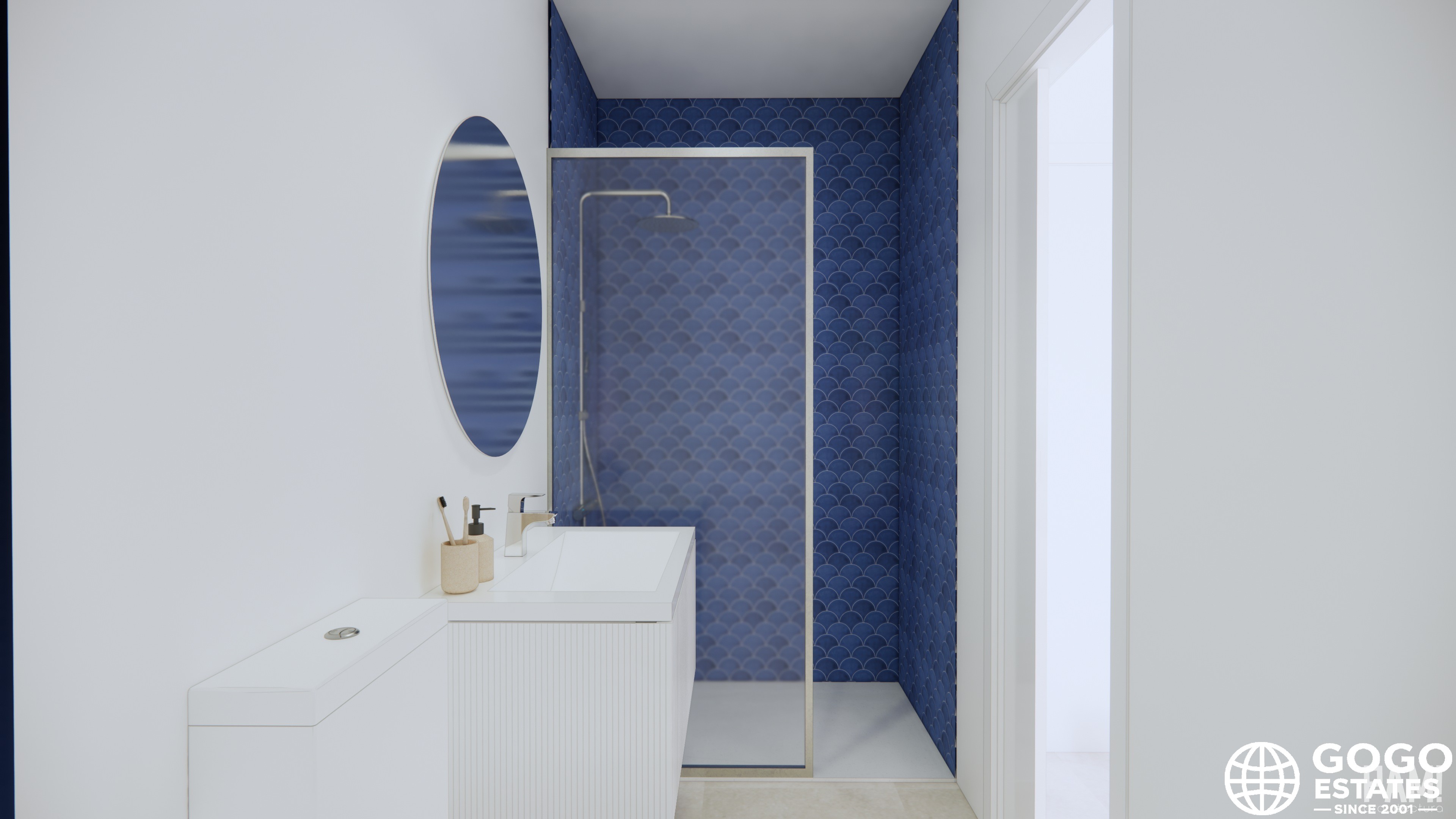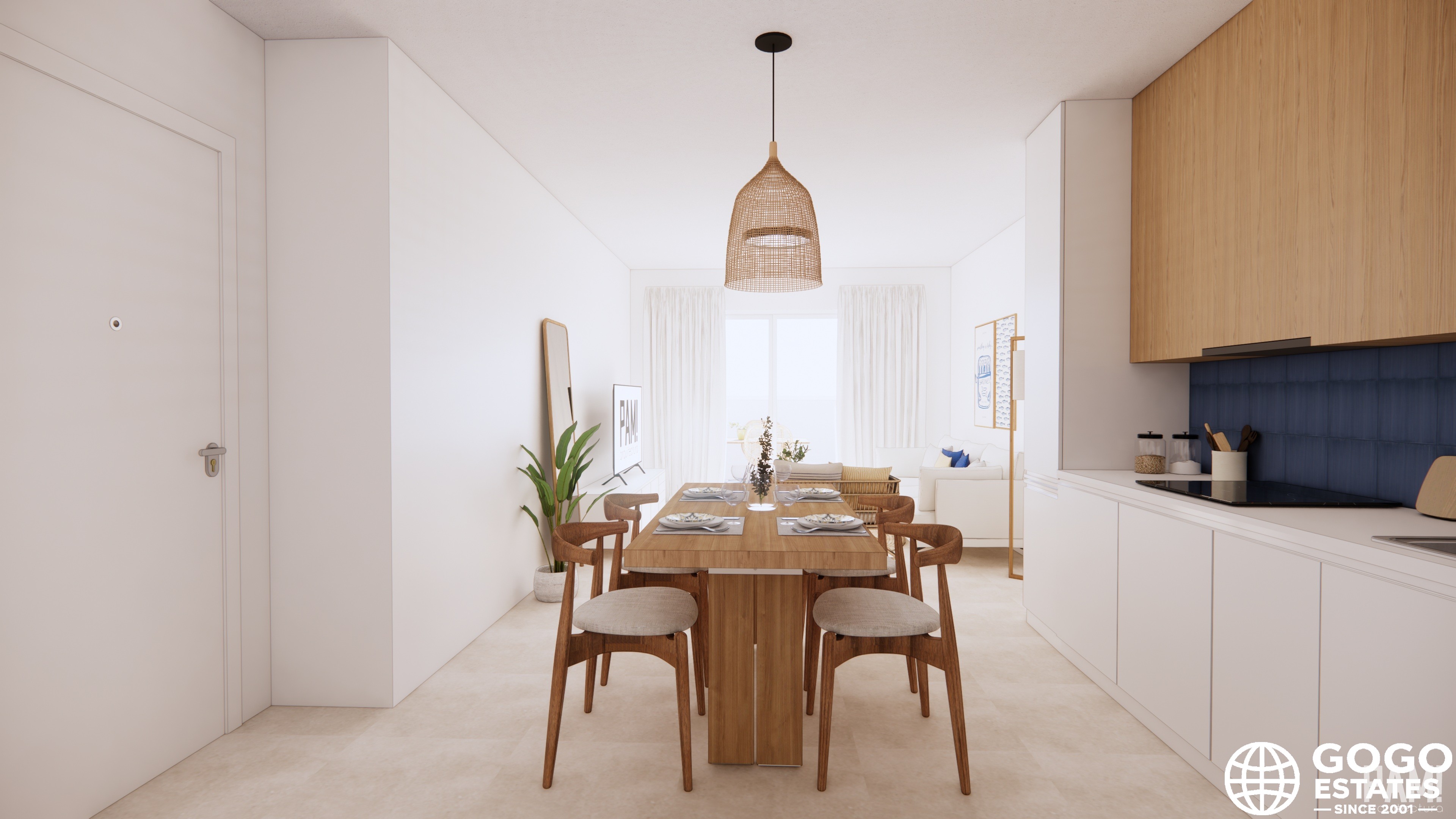 The apartment features a terrace, perfect for outdoor relaxation and enjoying the natural surroundings. Interiors are equipped with modern features such as tiled floors, built-in wardrobes, and pre-installed air conditioning. Appliances are included, ensuring convenience from day one.