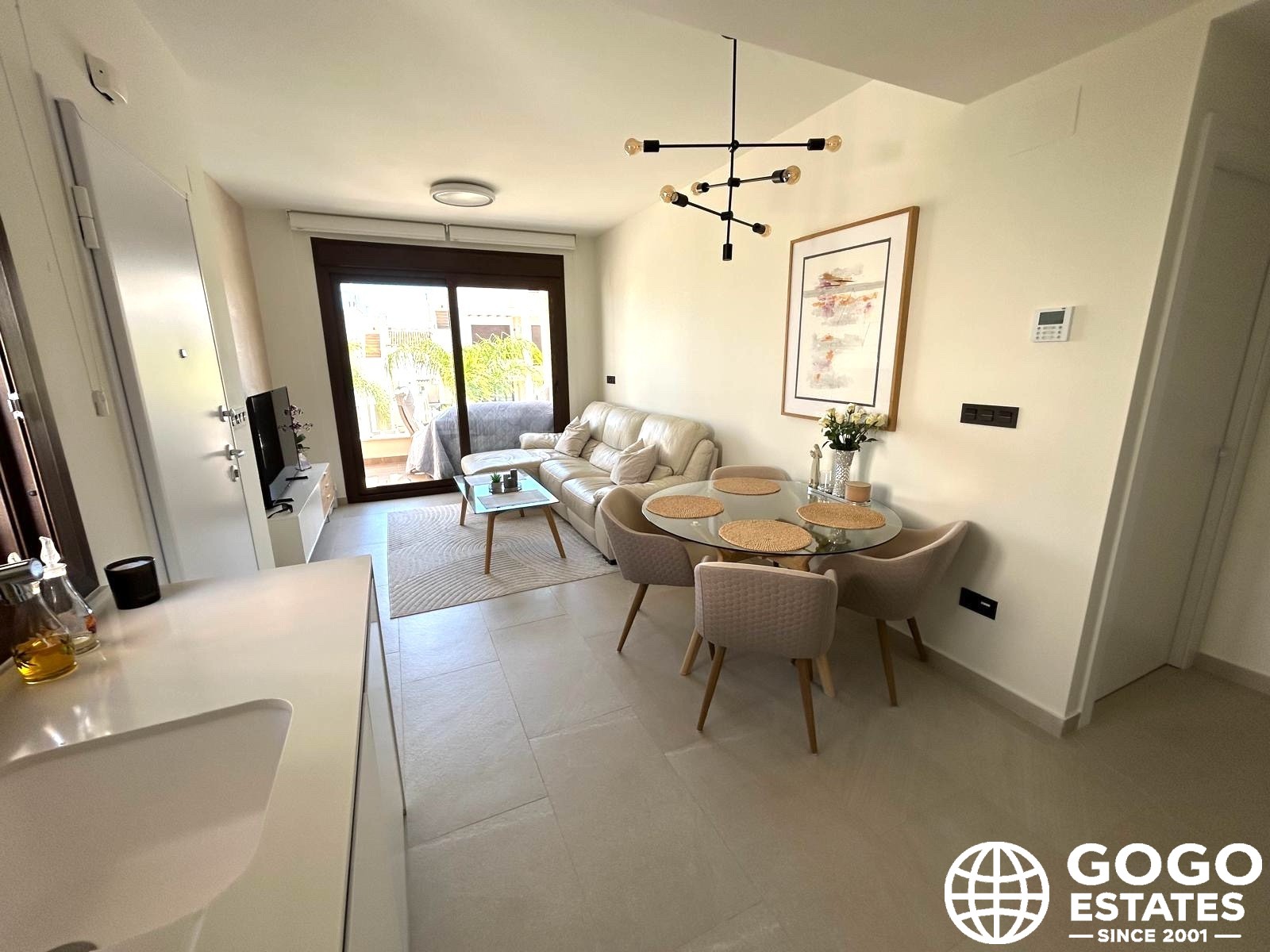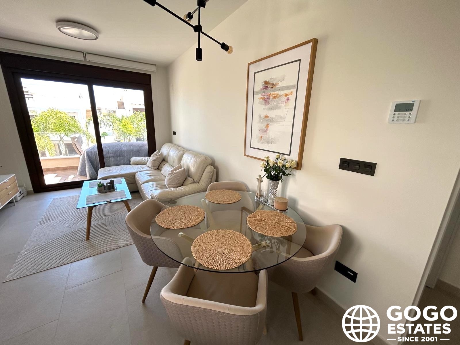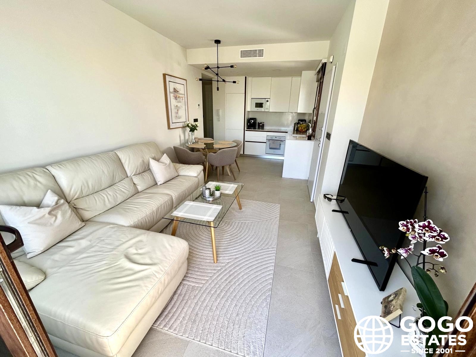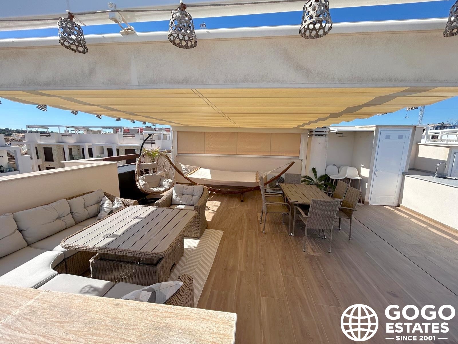 The private terrace, measuring 37 m², is ideal for outdoor relaxation and enjoying the Mediterranean views. High-quality finishes, including ceramic flooring and built-in wardrobes, enhance the elegance and functionality of the interior.