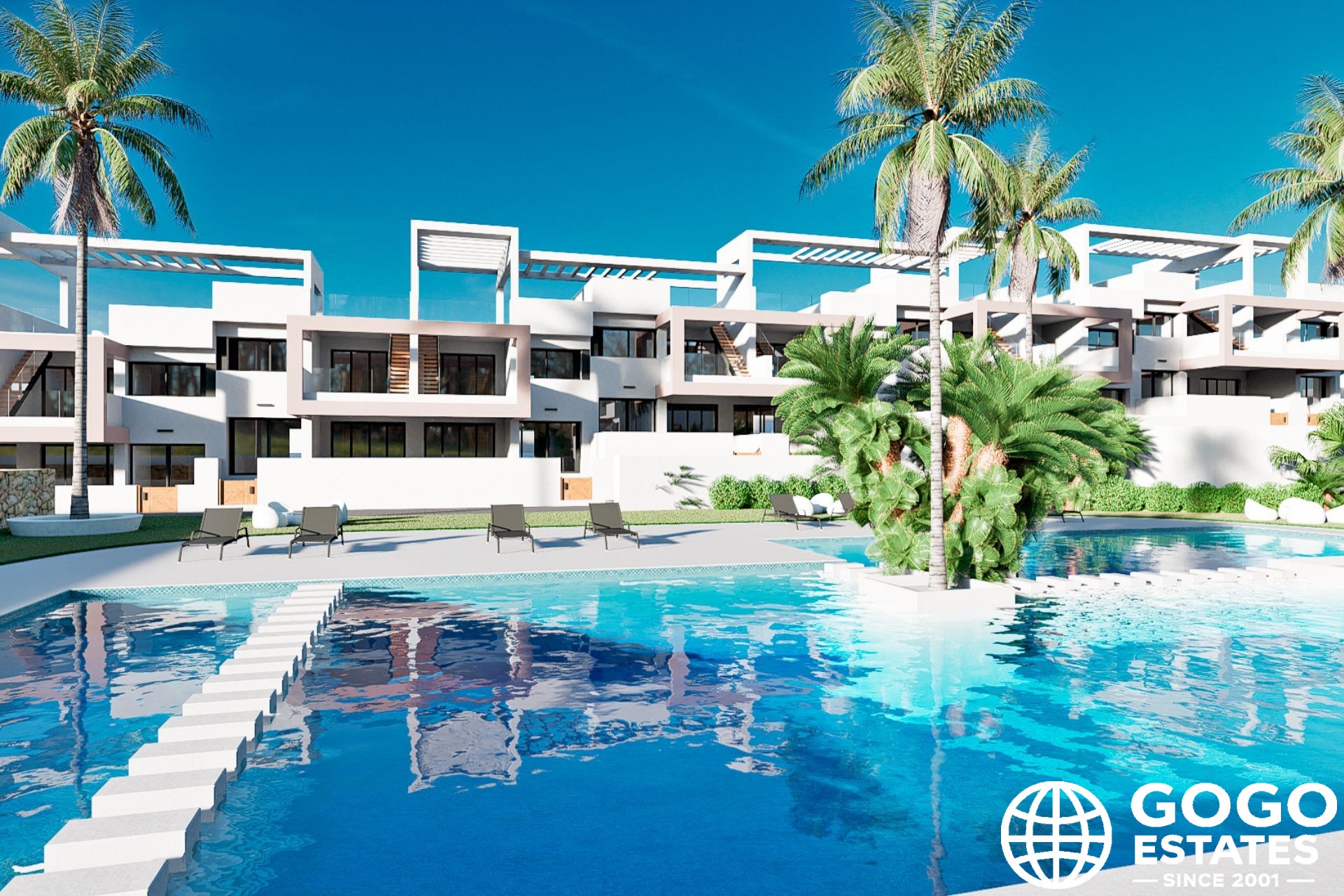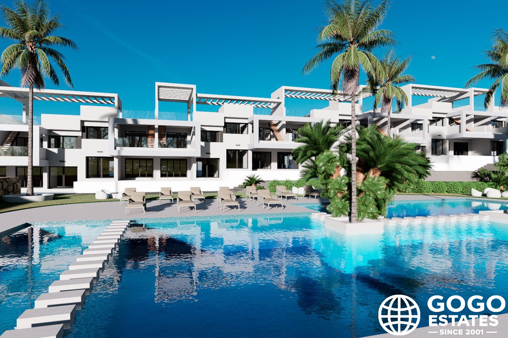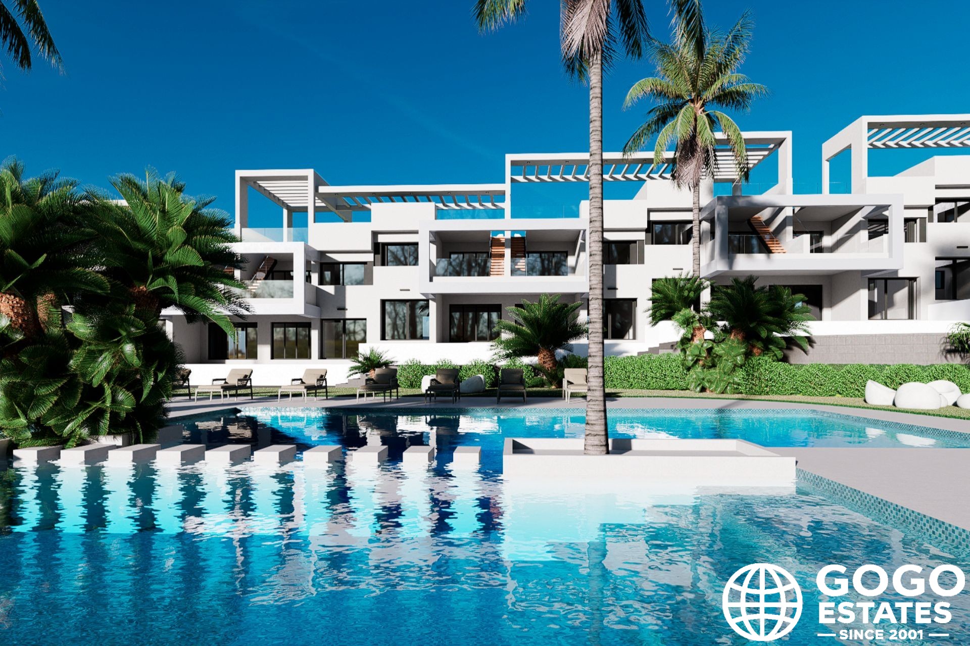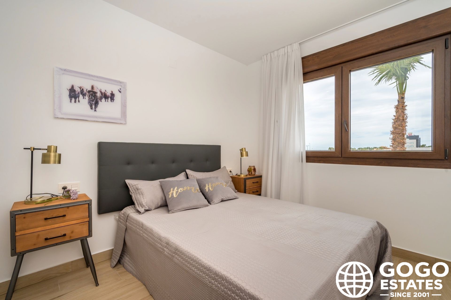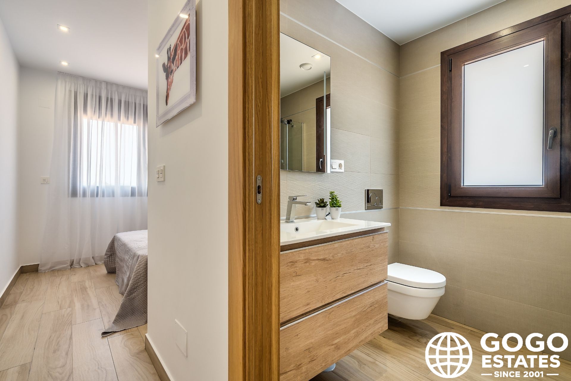 Outdoor spaces include a private terrace and access to landscaped areas, perfect for enjoying the Mediterranean climate. The community also offers a communal pool and solarium.