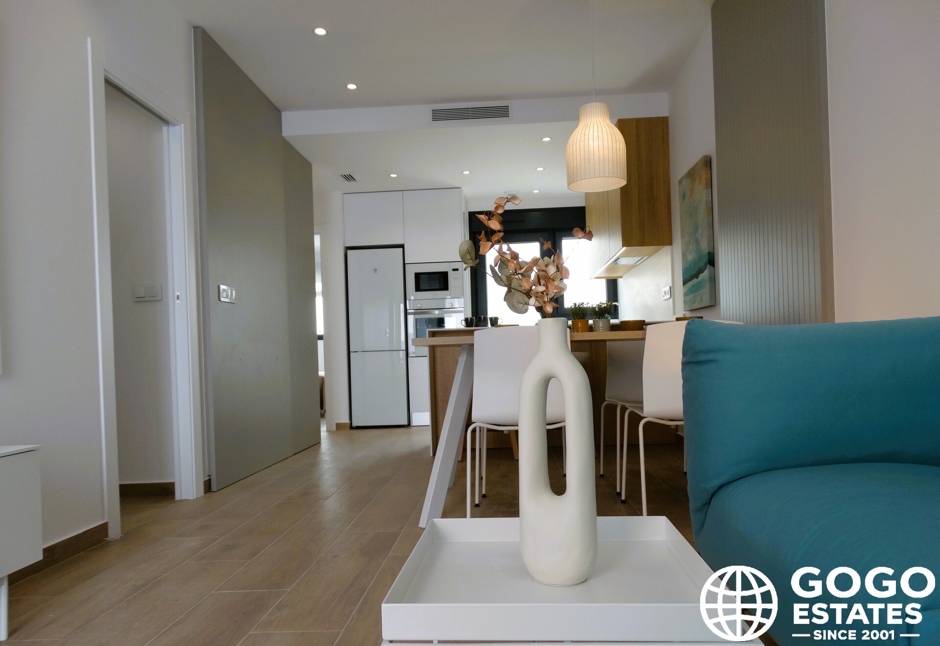 Enjoy the tranquility of the Mediterranean coast, just 4 km from the sea. The property includes pre-installation of air conditioning and built-in wardrobes for efficient storage.