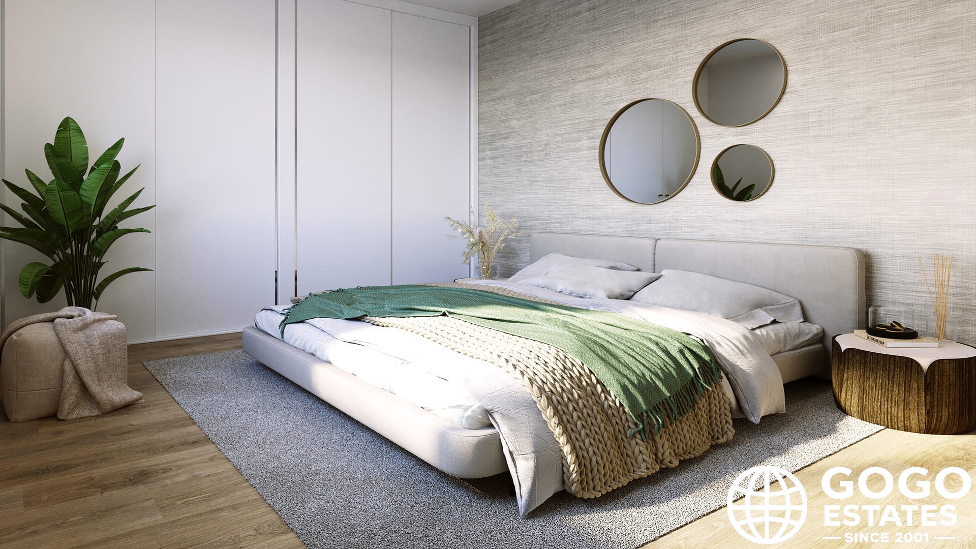 Indoors, modern amenities like floating floors and built-in wardrobes enhance functionality. A private garage adds convenience, ensuring vehicle safety and accessibility.