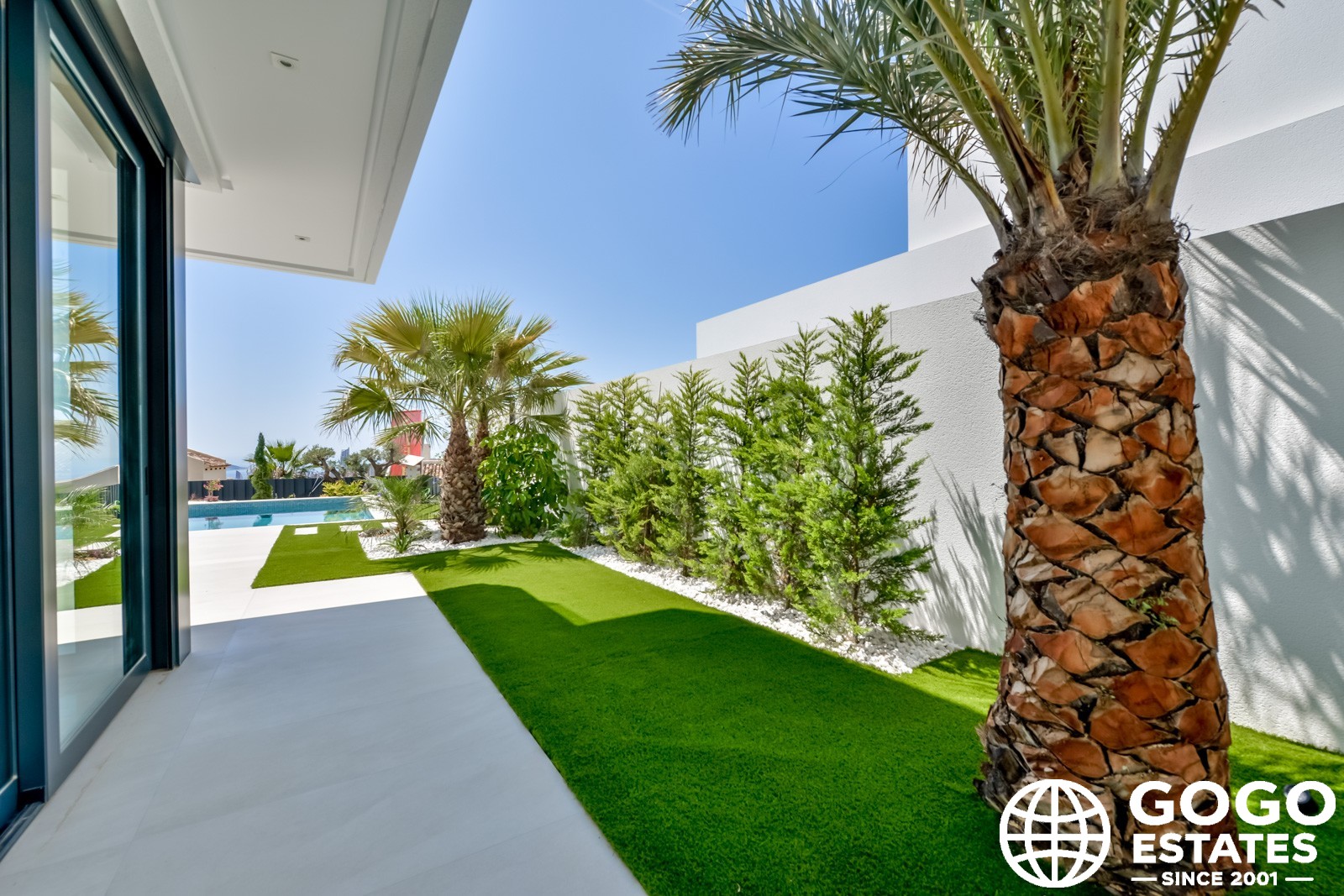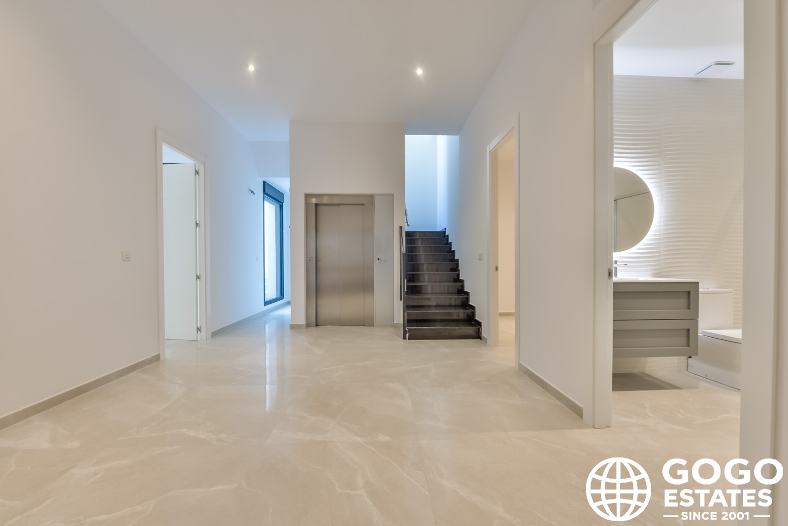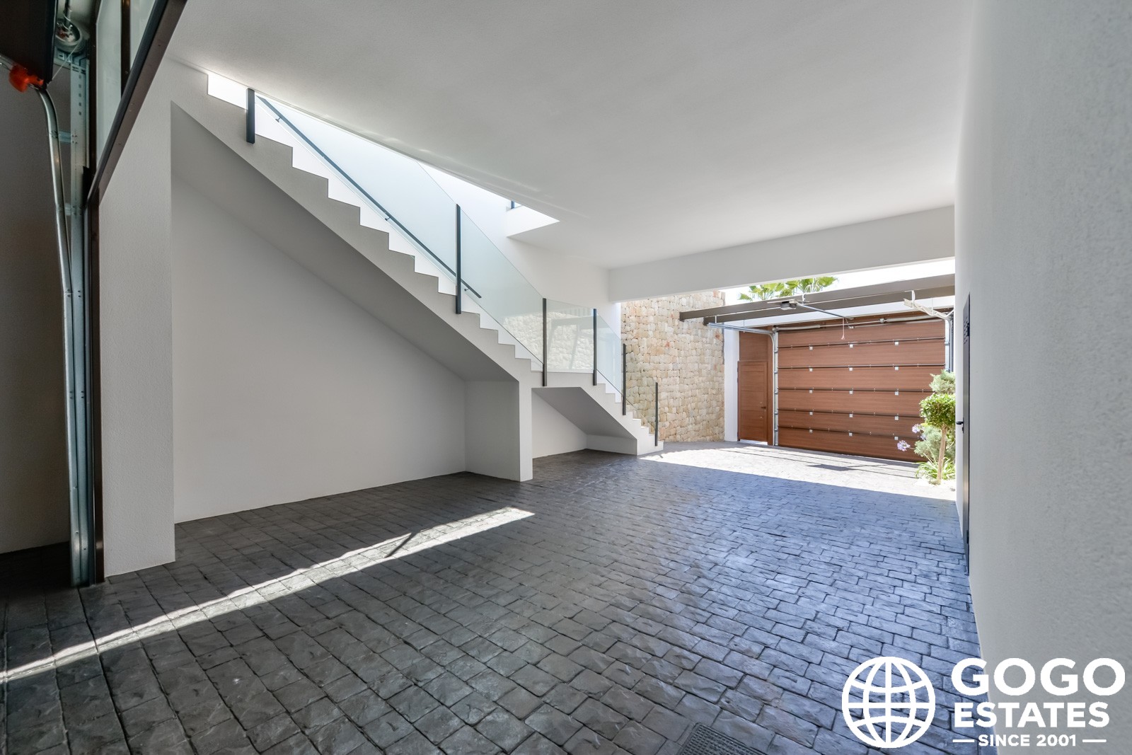 Inside, the villa boasts ceramic floors and high-quality appliances. Integrated home automation enhances daily comfort, while electric blinds and built-in wardrobes provide practicality and style.