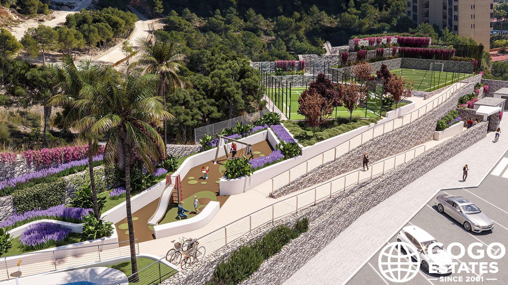 The penthouse includes three bedrooms and two bathrooms, providing ample space for families or individuals seeking a spacious living environment. The private terrace, measuring 61 m², is perfect for enjoying the Mediterranean climate and sea views. Additional outdoor features include a solarium and pergolas, with some units offering a private jacuzzi.