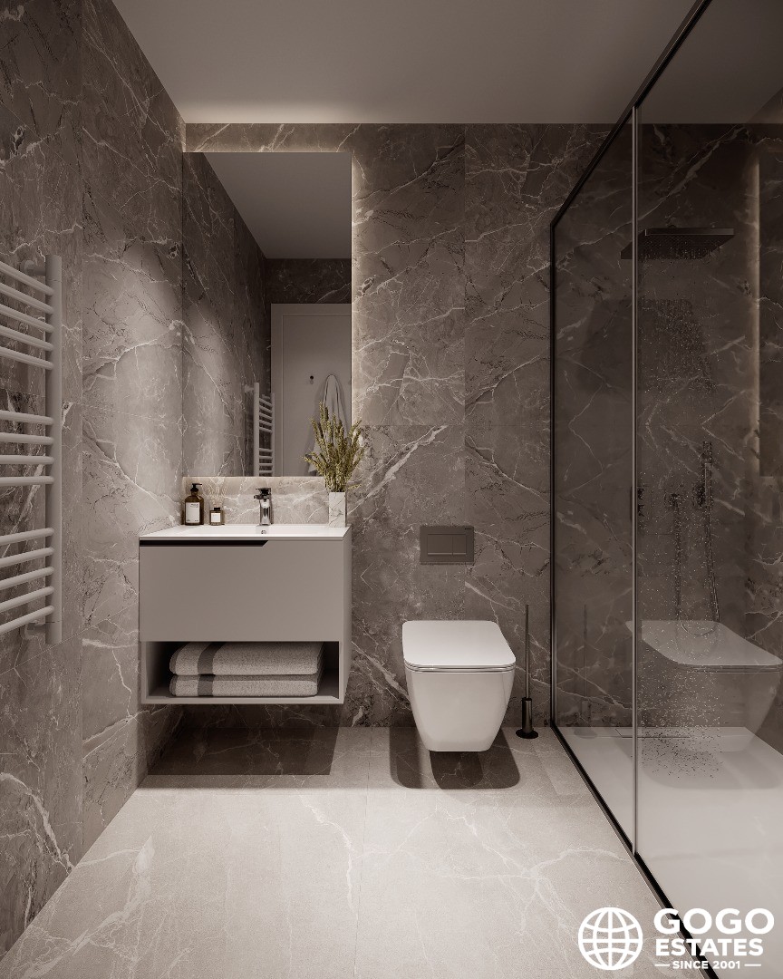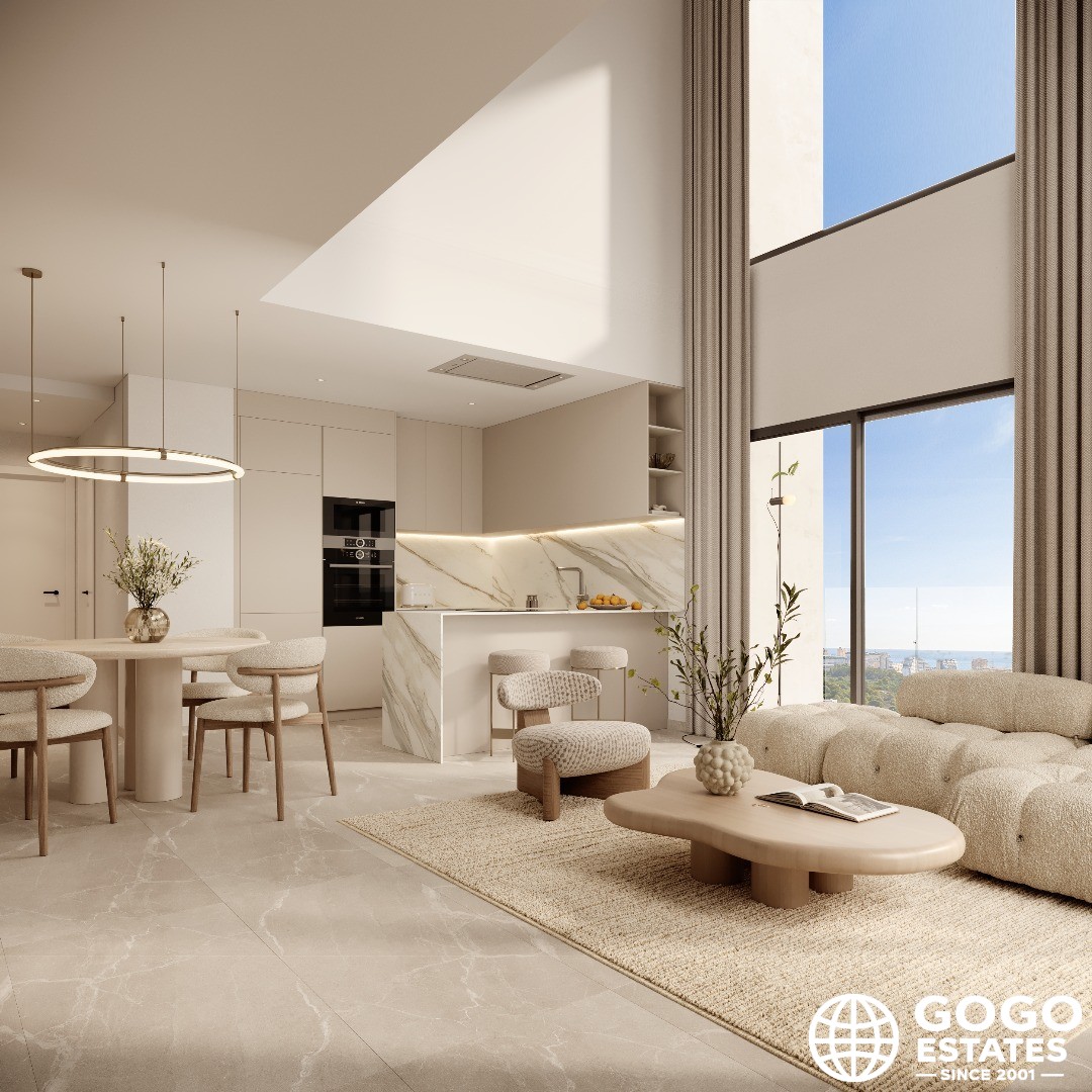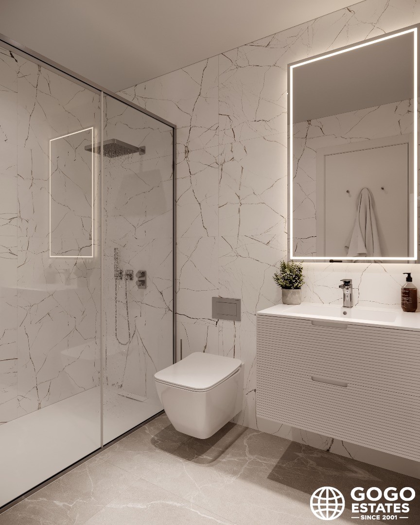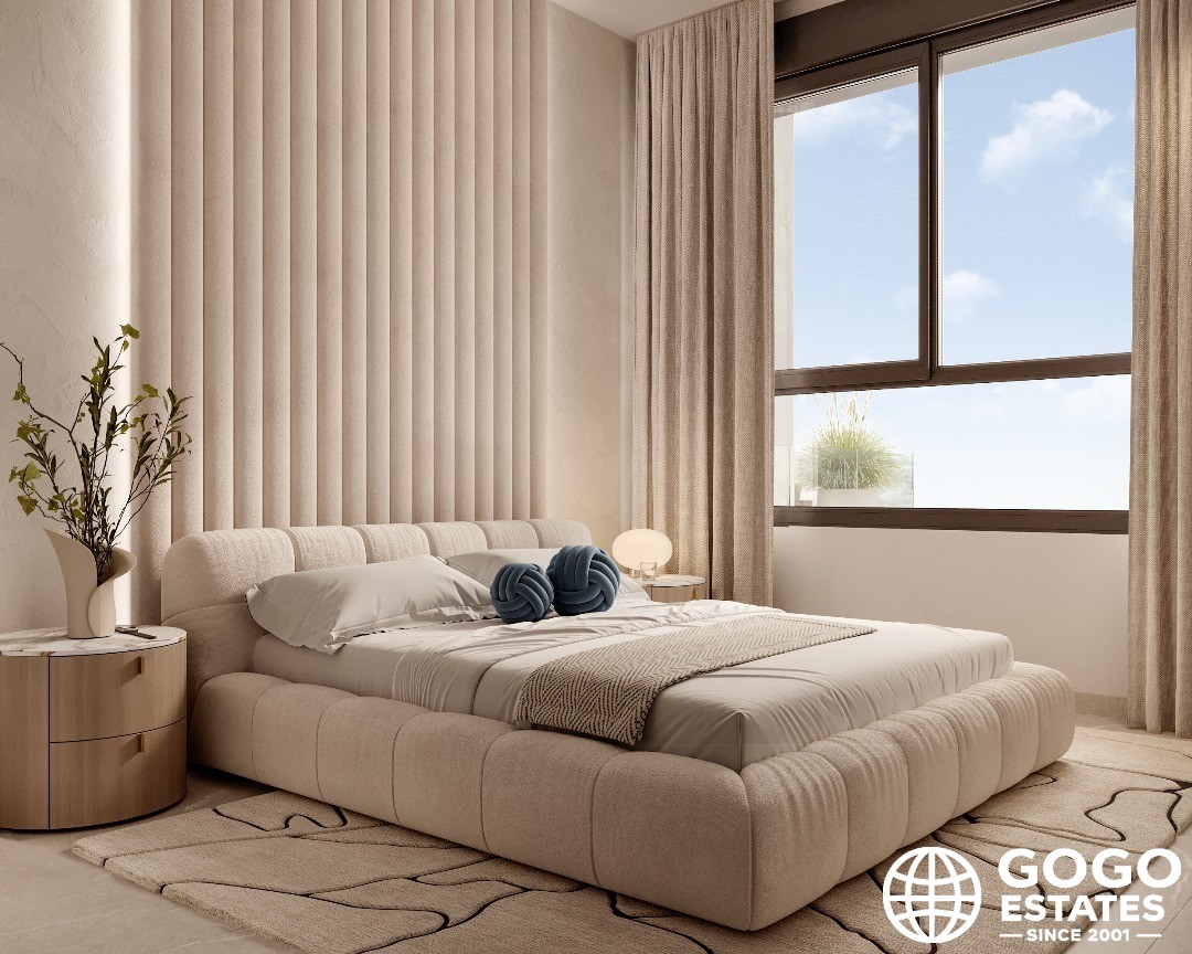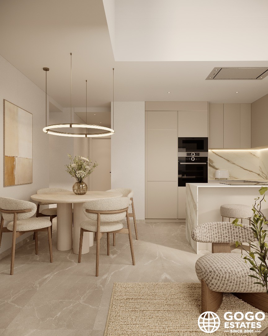 This 107m² apartment features 2 bedrooms and 2 bathrooms, complemented by a 31m² terrace ideal for enjoying the Mediterranean climate. The home is equipped with modern appliances, home automation technology, and built-in wardrobes for optimal functionality.