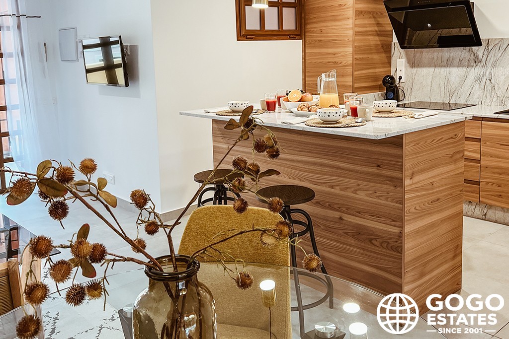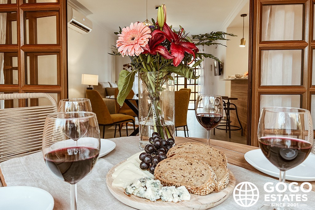 Each apartment comes with a private terrace, ideal for enjoying the Mediterranean climate. Some units also feature a solarium for extra leisure space. The interiors boast porcelain tile floors, air conditioning, and modern appliances, ensuring a comfortable living environment.