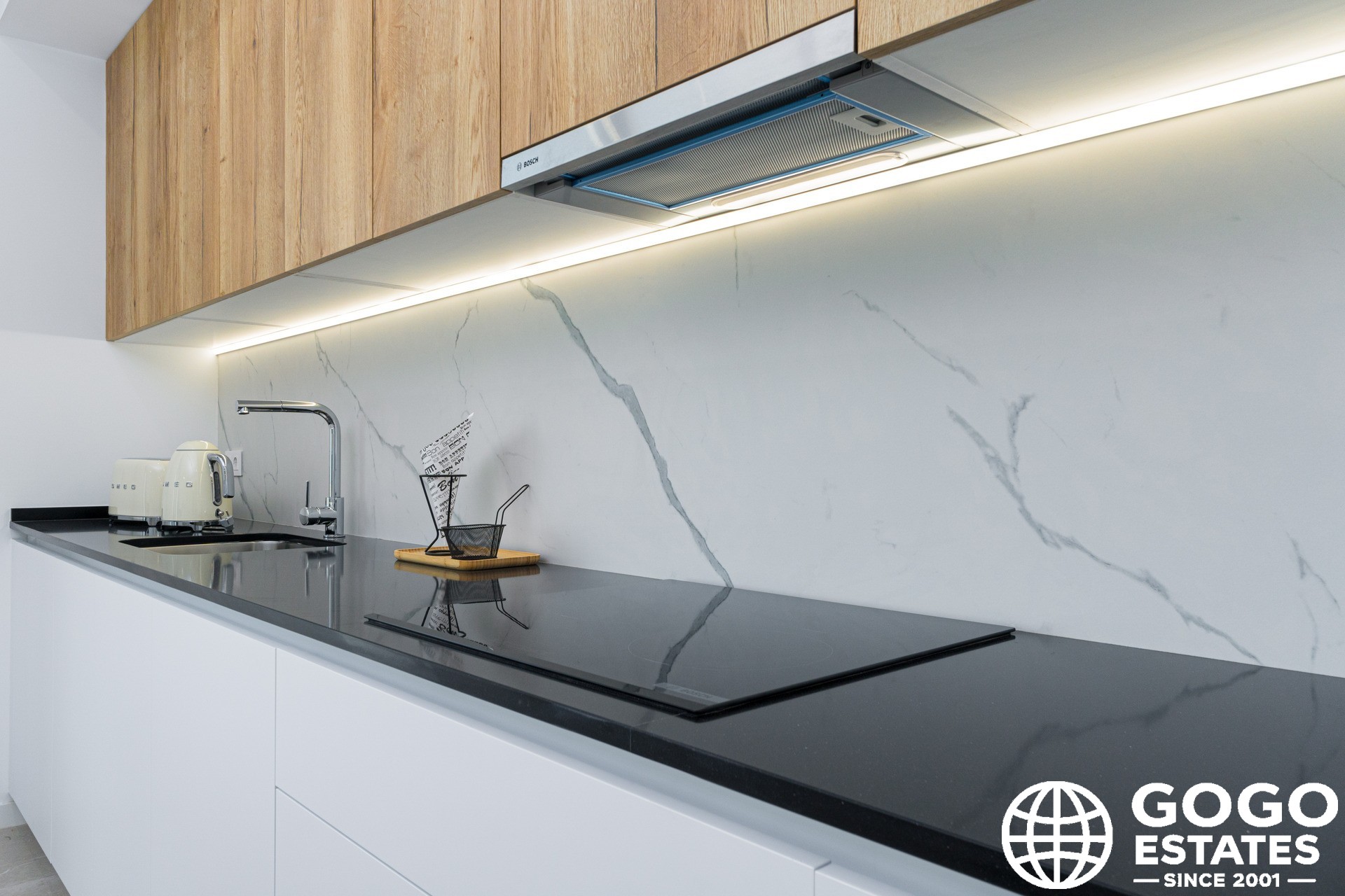 Each home includes a terrace, ideal for enjoying the Mediterranean climate. Ground-floor units offer private gardens, while some properties have a private solarium and pool.