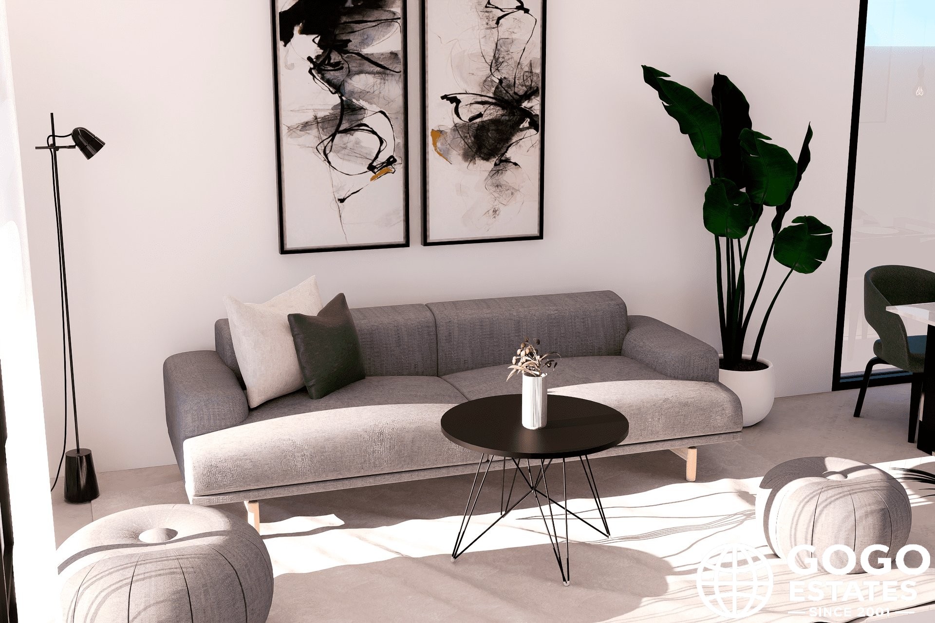 The interior of the homes is carefully designed to offer comfort and modernity. The apartments, ground-floor units, and penthouses feature porcelain stoneware floors, adding an elegant touch and easy maintenance. All properties are equipped with air conditioning, ensuring a pleasant environment year-round. Built-in wardrobes provide ample storage space, while the video intercom adds an extra level of security and convenience.