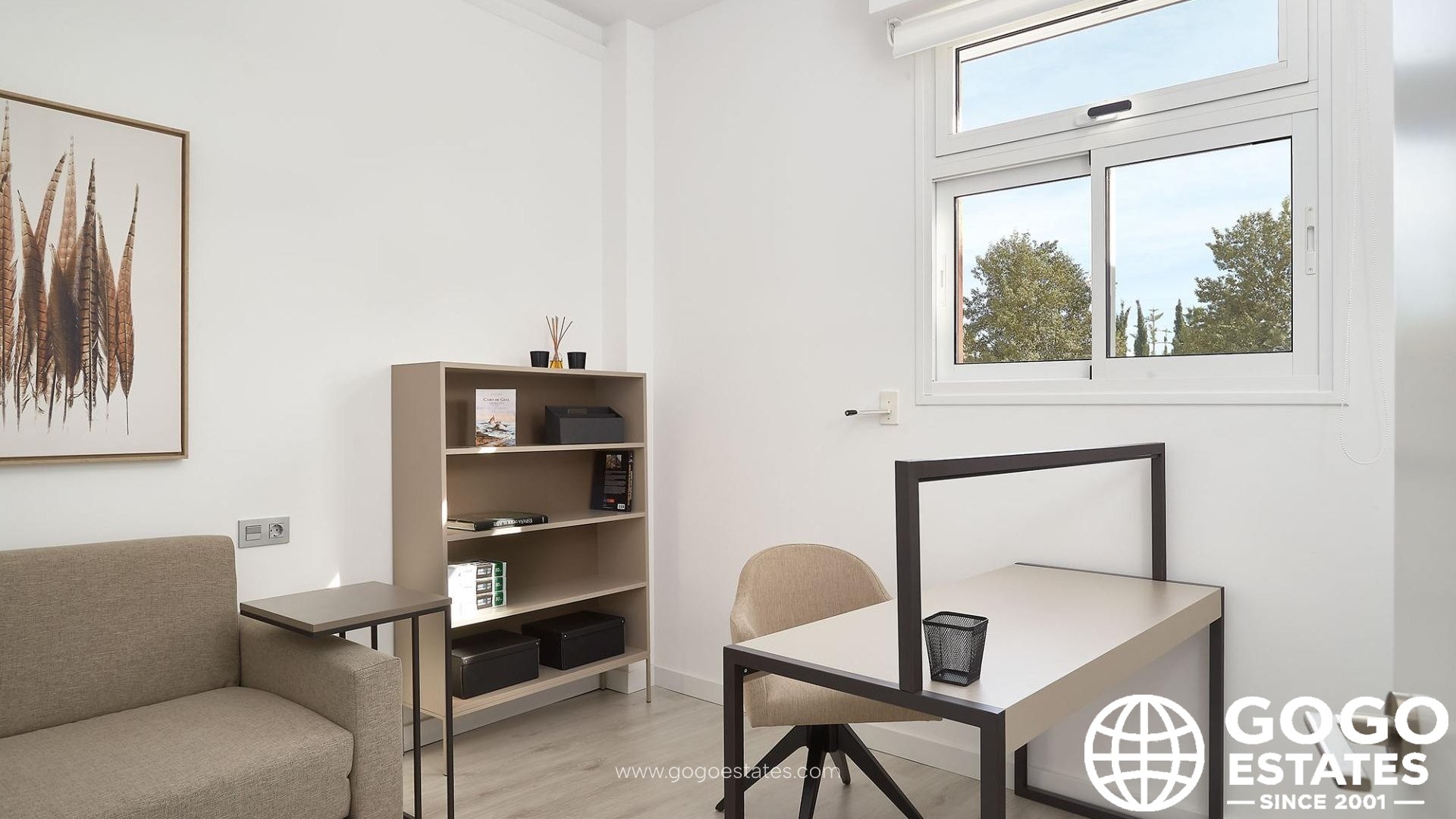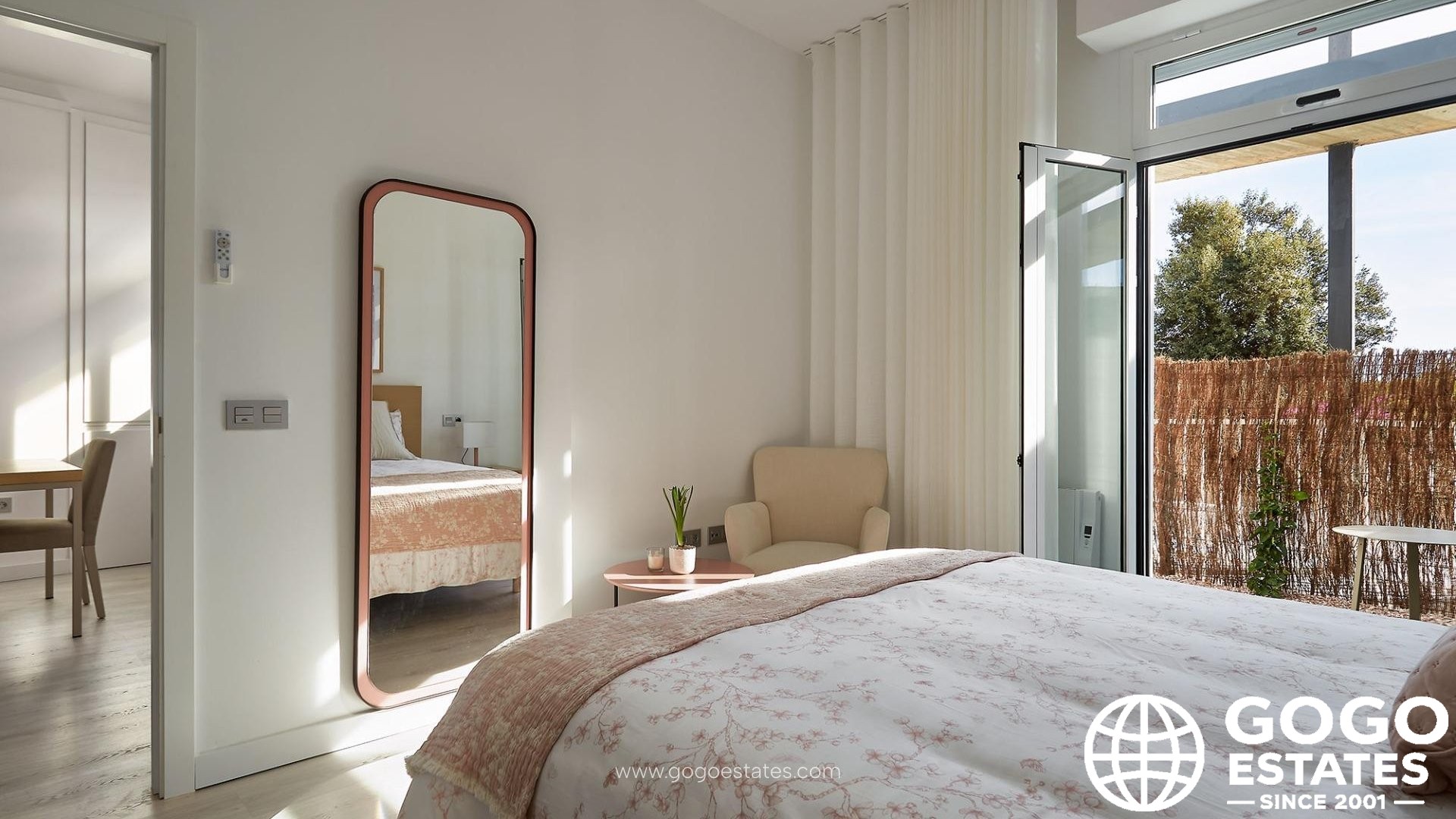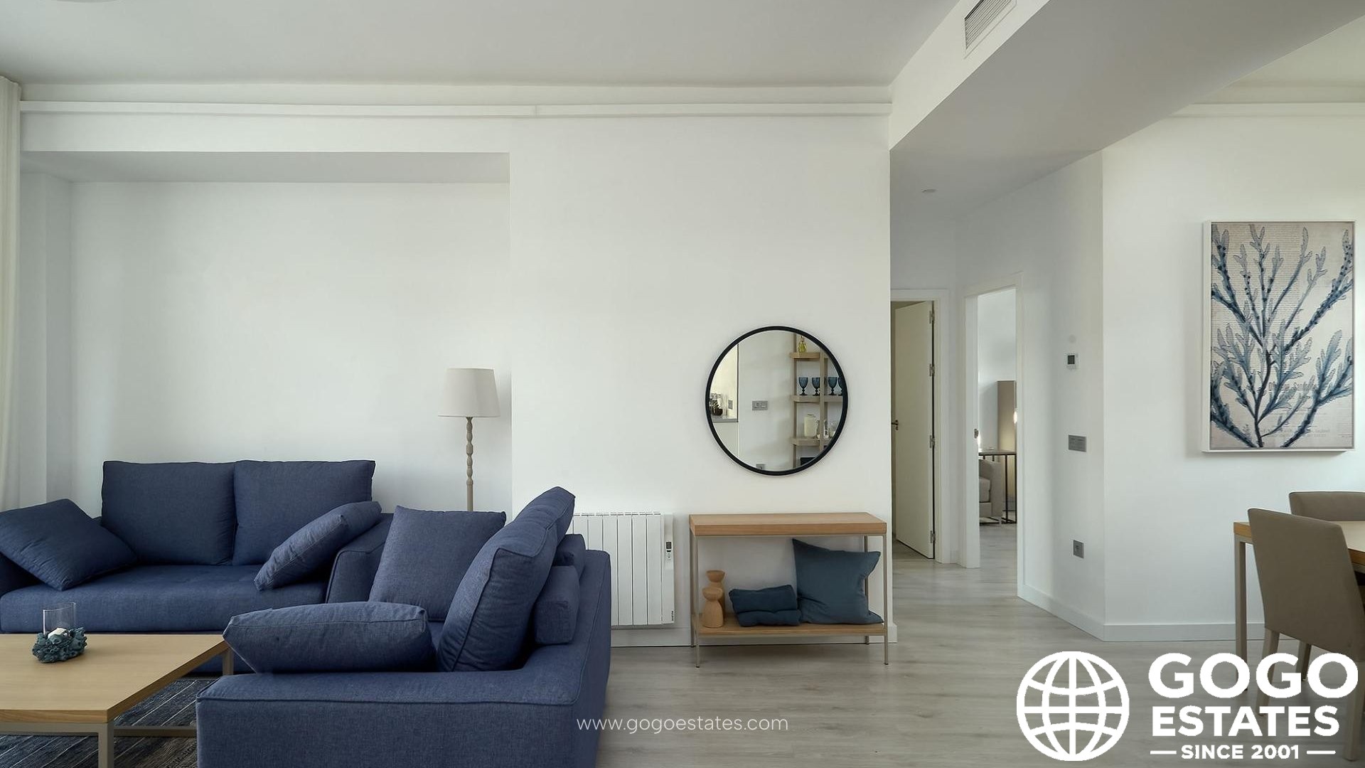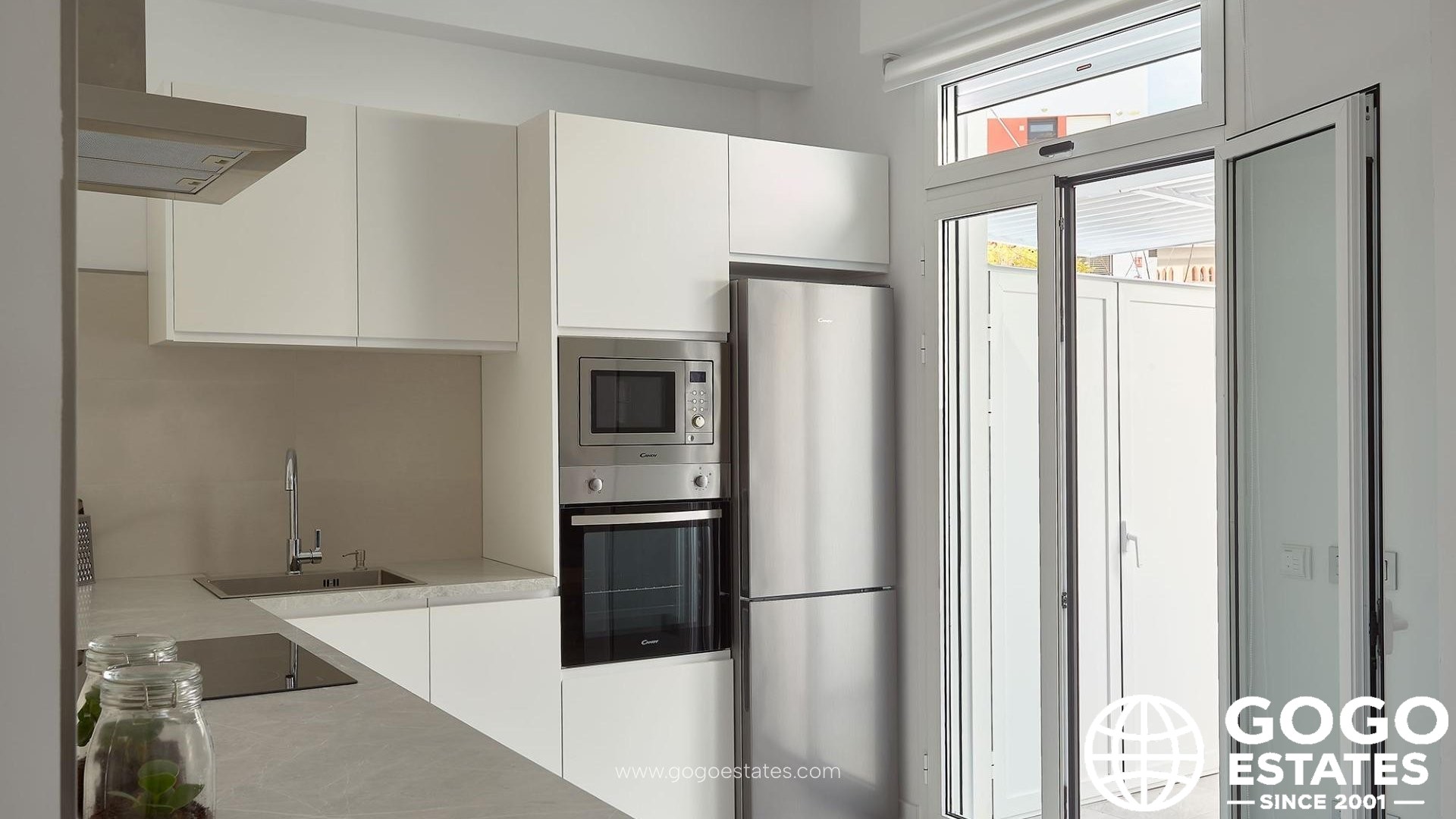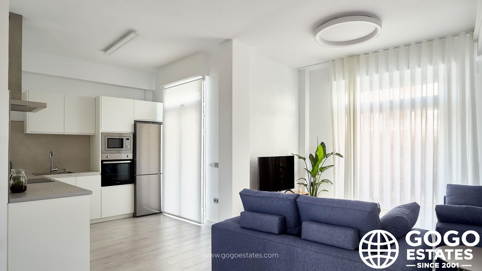 The kitchen is fully furnished and integrated with the living-dining area, featuring a bar. Enjoy modern comforts with a DAIKIN Aerothermal system for efficient heating and cooling.