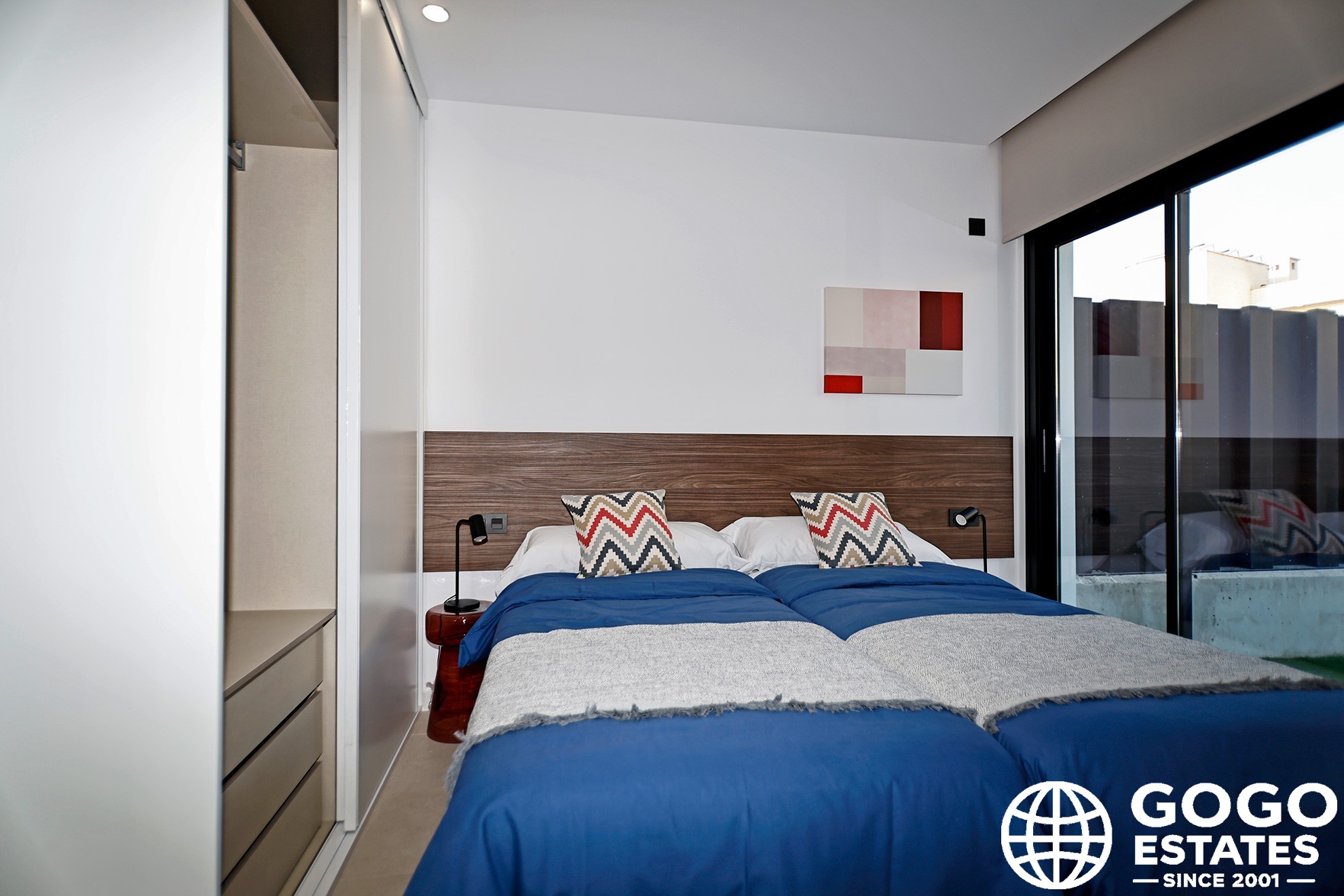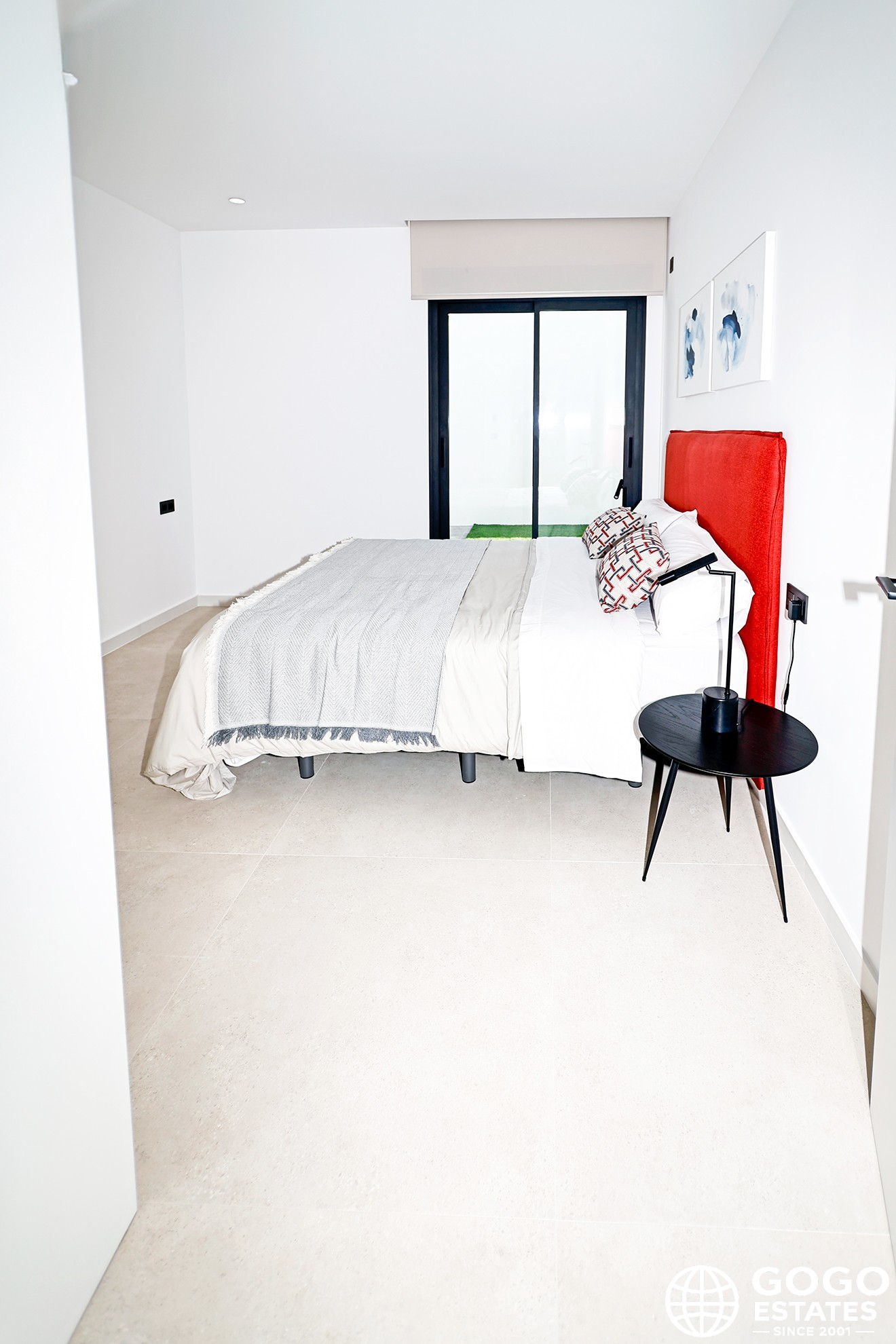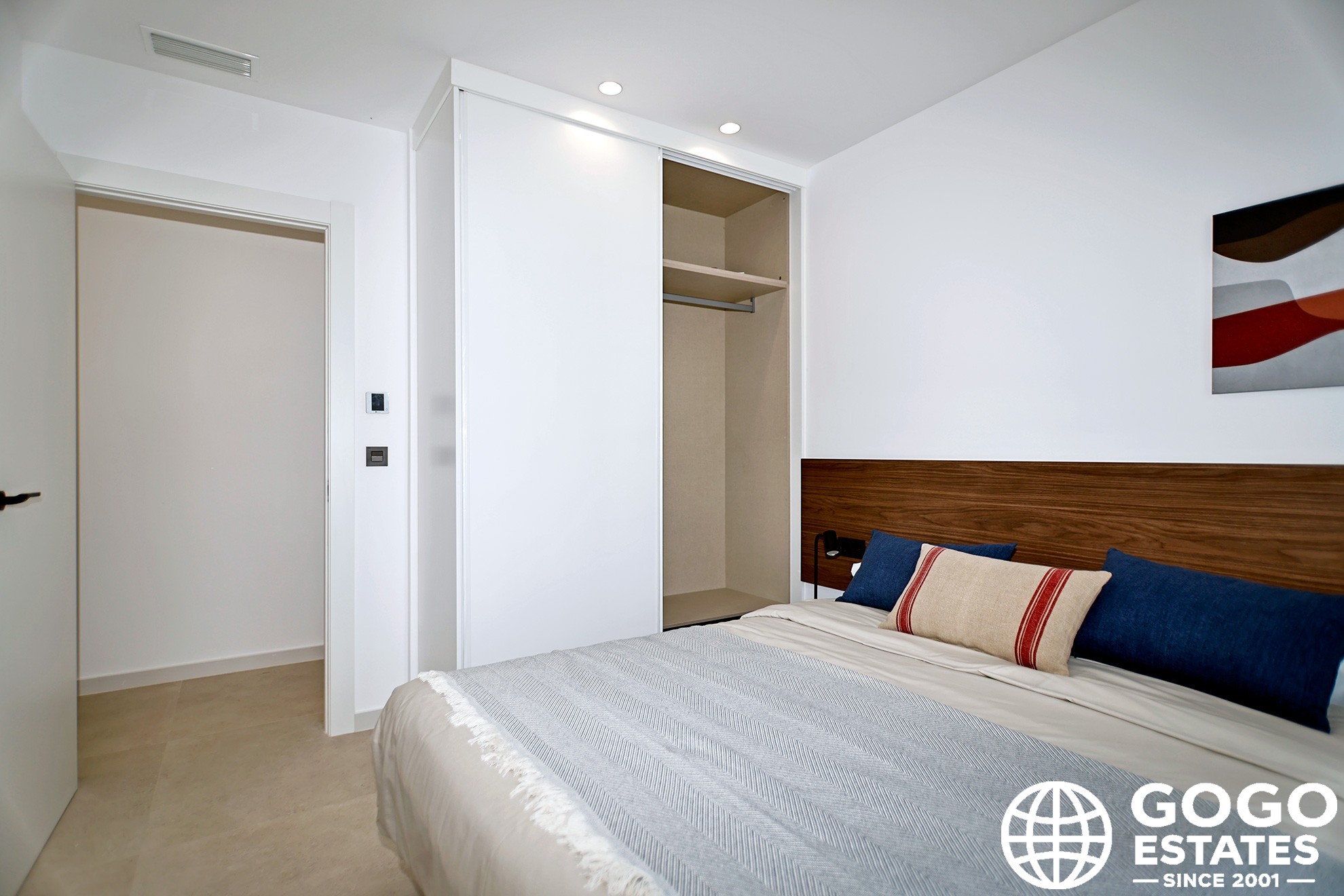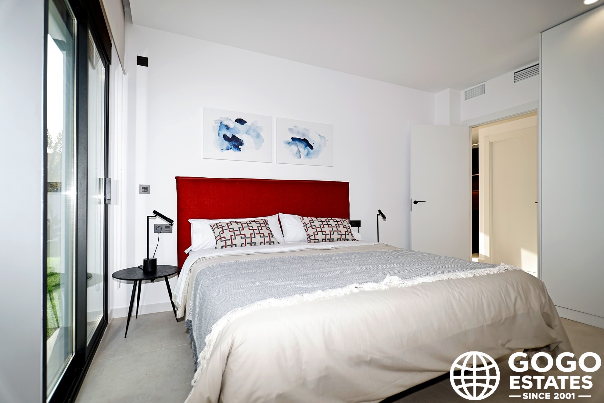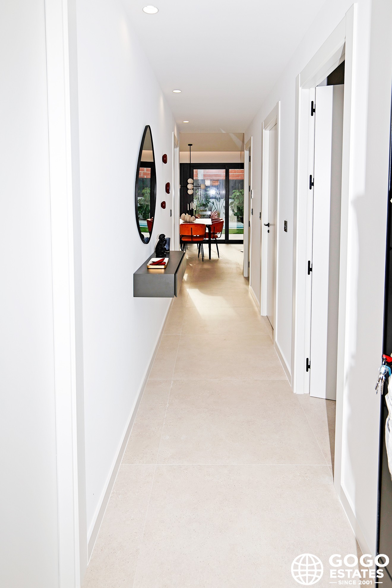 The interiors are focused on quality and functionality, with ceramic and porcelain tile floors adding elegance and durability. The homes are equipped with air conditioning and electric shutters. The kitchen includes appliances, and built-in wardrobes offer efficient storage solutions.