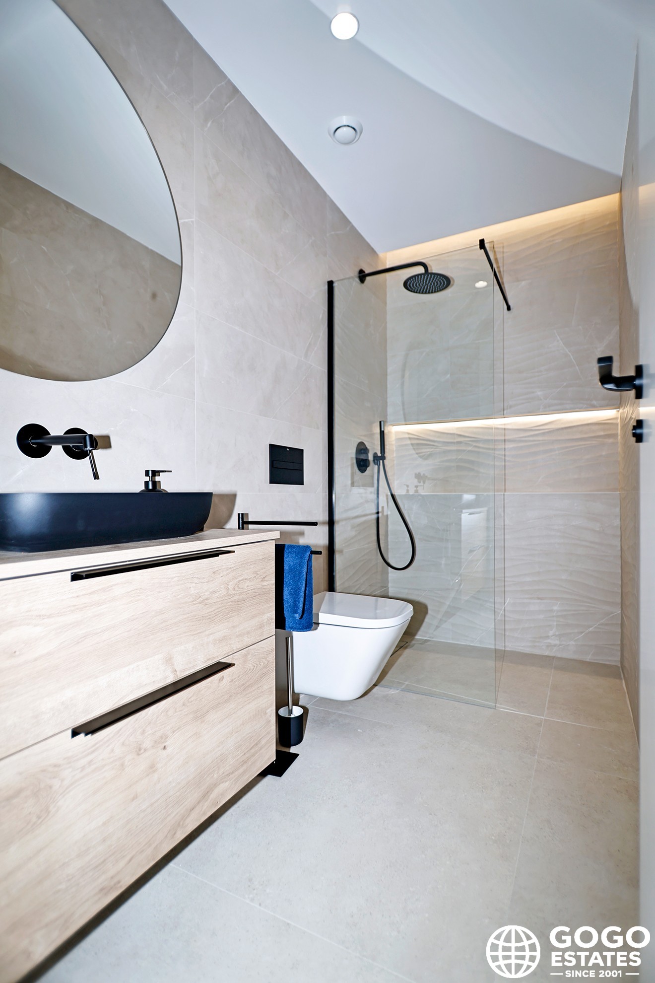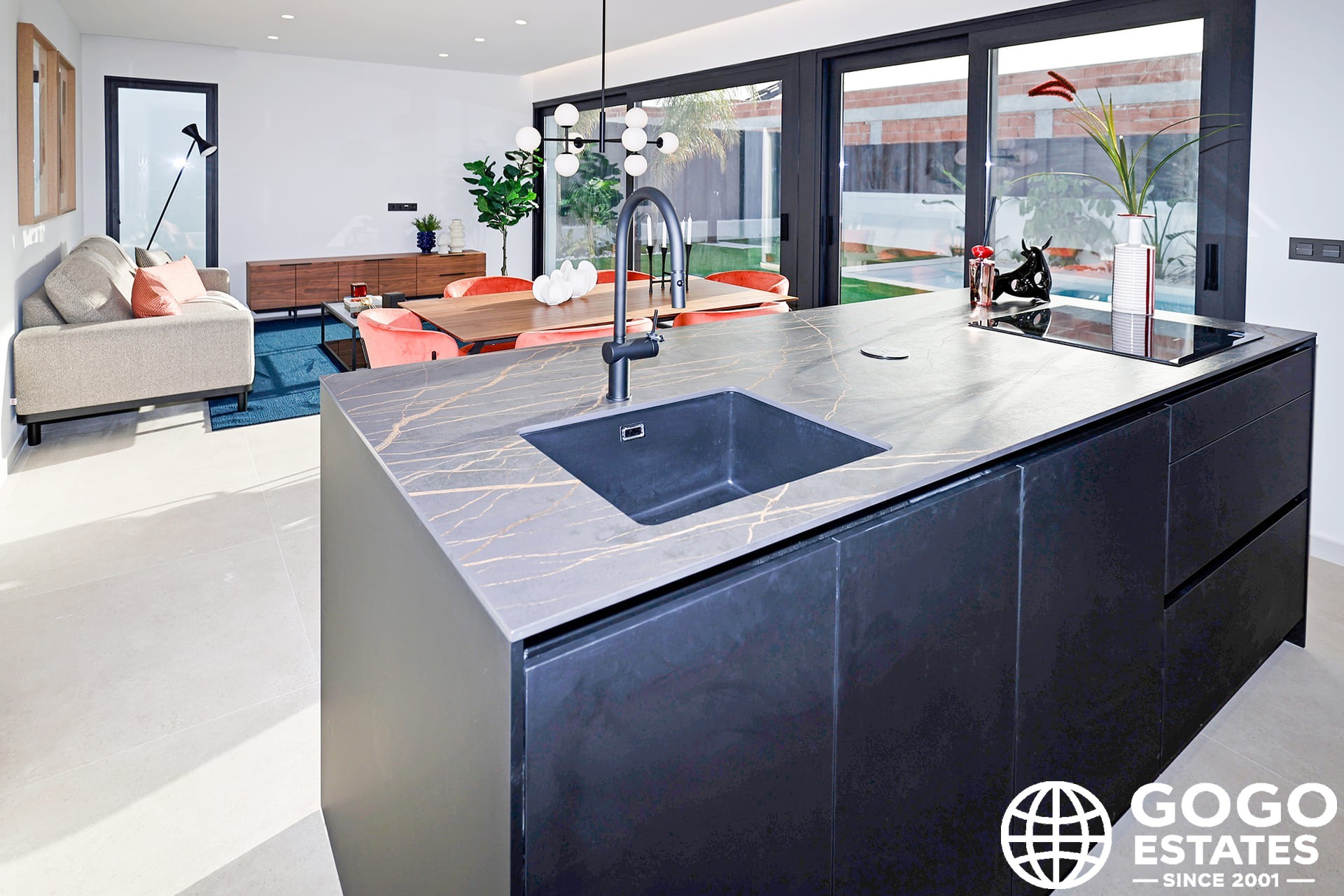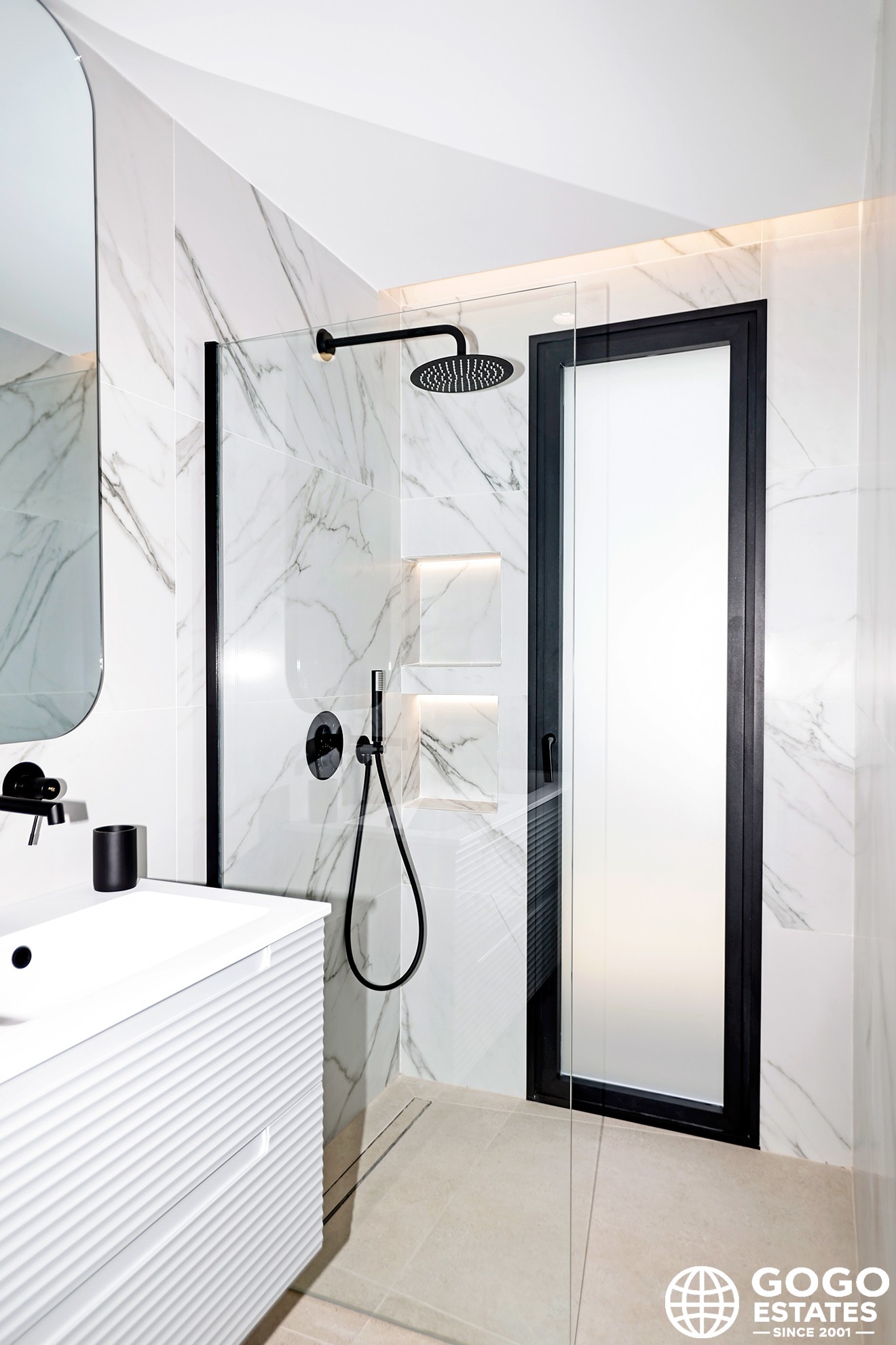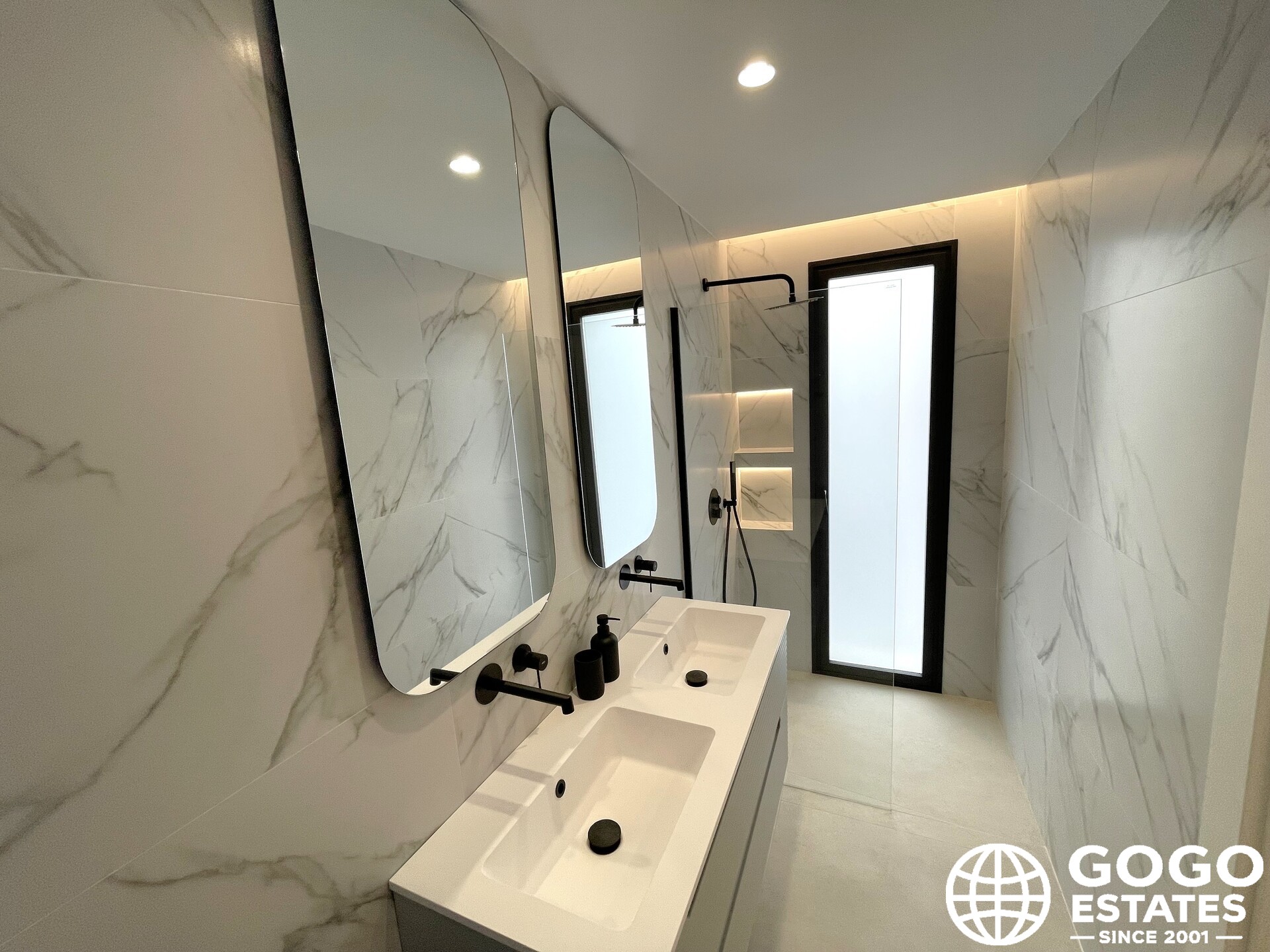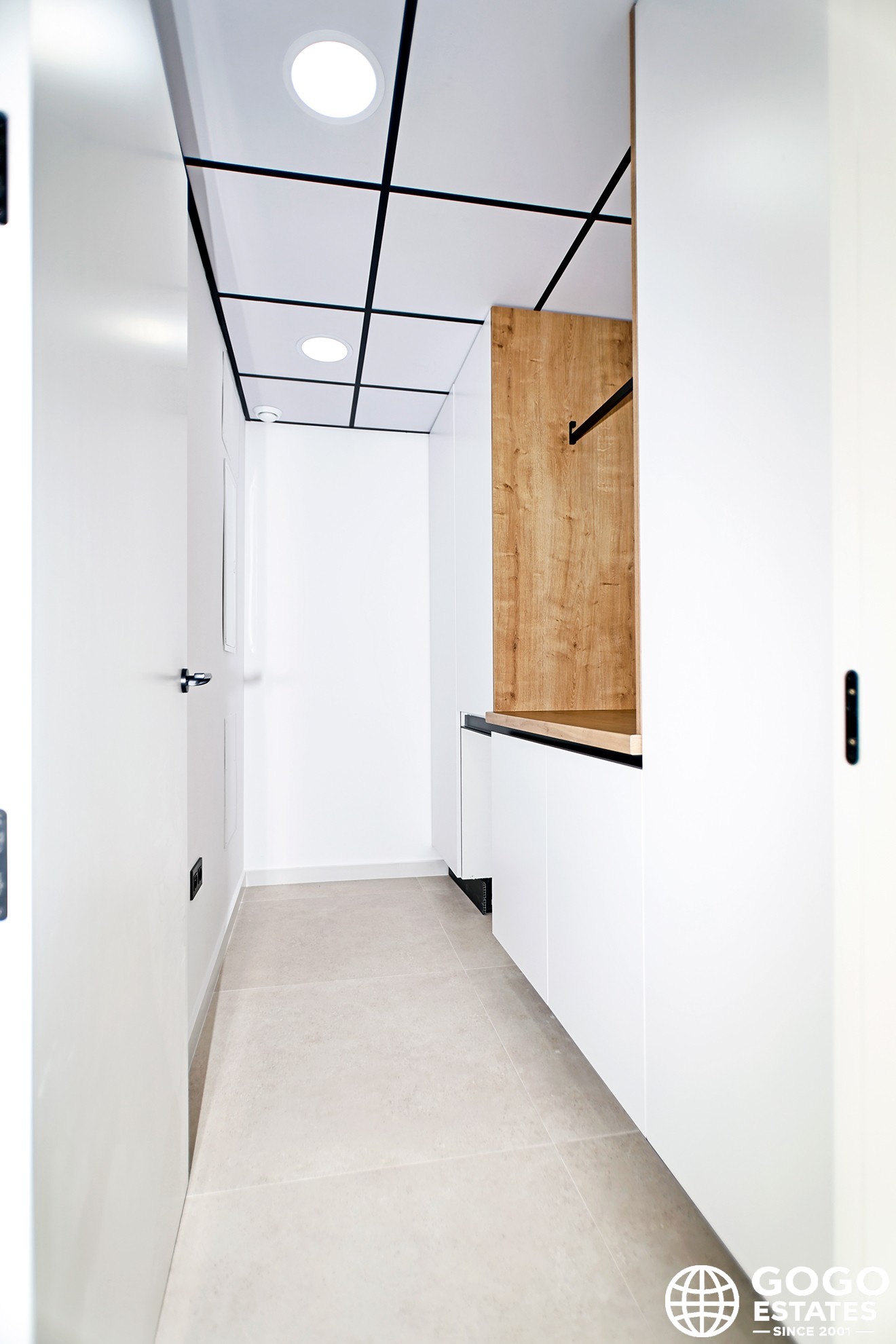 The interiors are focused on quality and functionality, with ceramic and porcelain tile floors adding elegance and durability. The homes are equipped with air conditioning and electric shutters. The kitchen includes appliances, and built-in wardrobes offer efficient storage solutions.