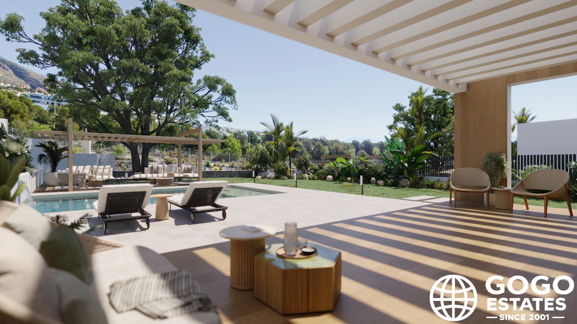 Each home features a private garden and a spacious terrace, perfect for relaxation or entertaining. The private pool adds a touch of luxury, while the pergola offers a cozy spot for outdoor dining.