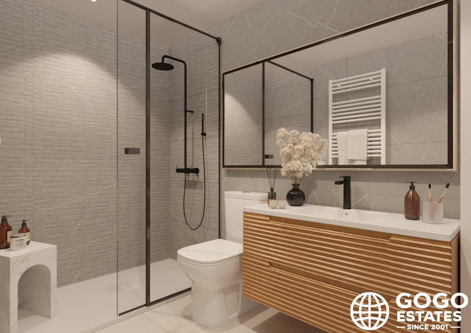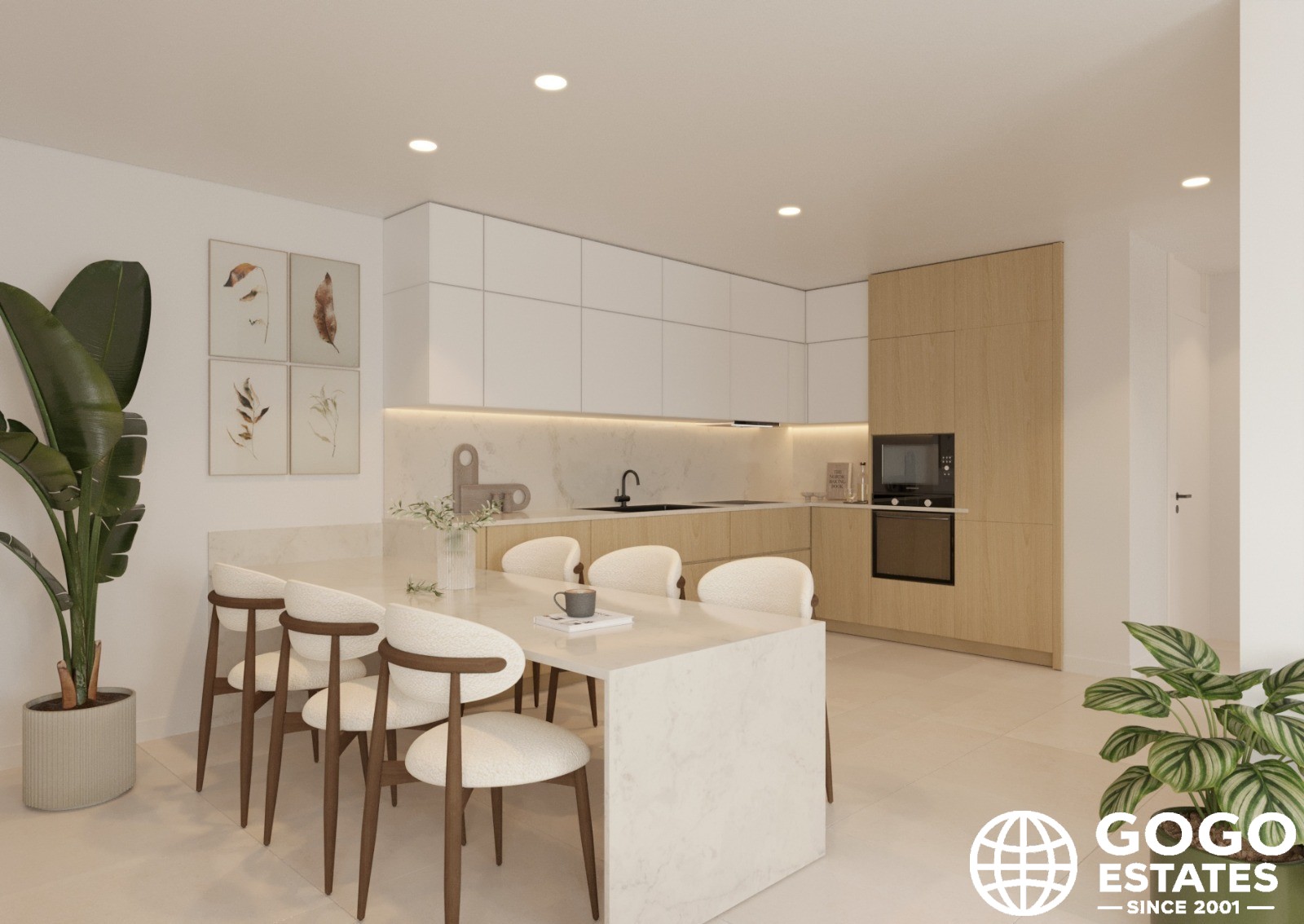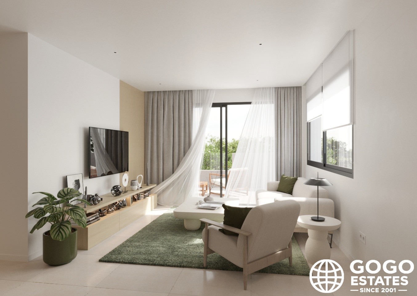 The exteriors are designed to maximize enjoyment of the Mediterranean climate. A private garden and terrace provide ideal spaces for outdoor relaxation, while the solarium offers a perfect spot for sunbathing.