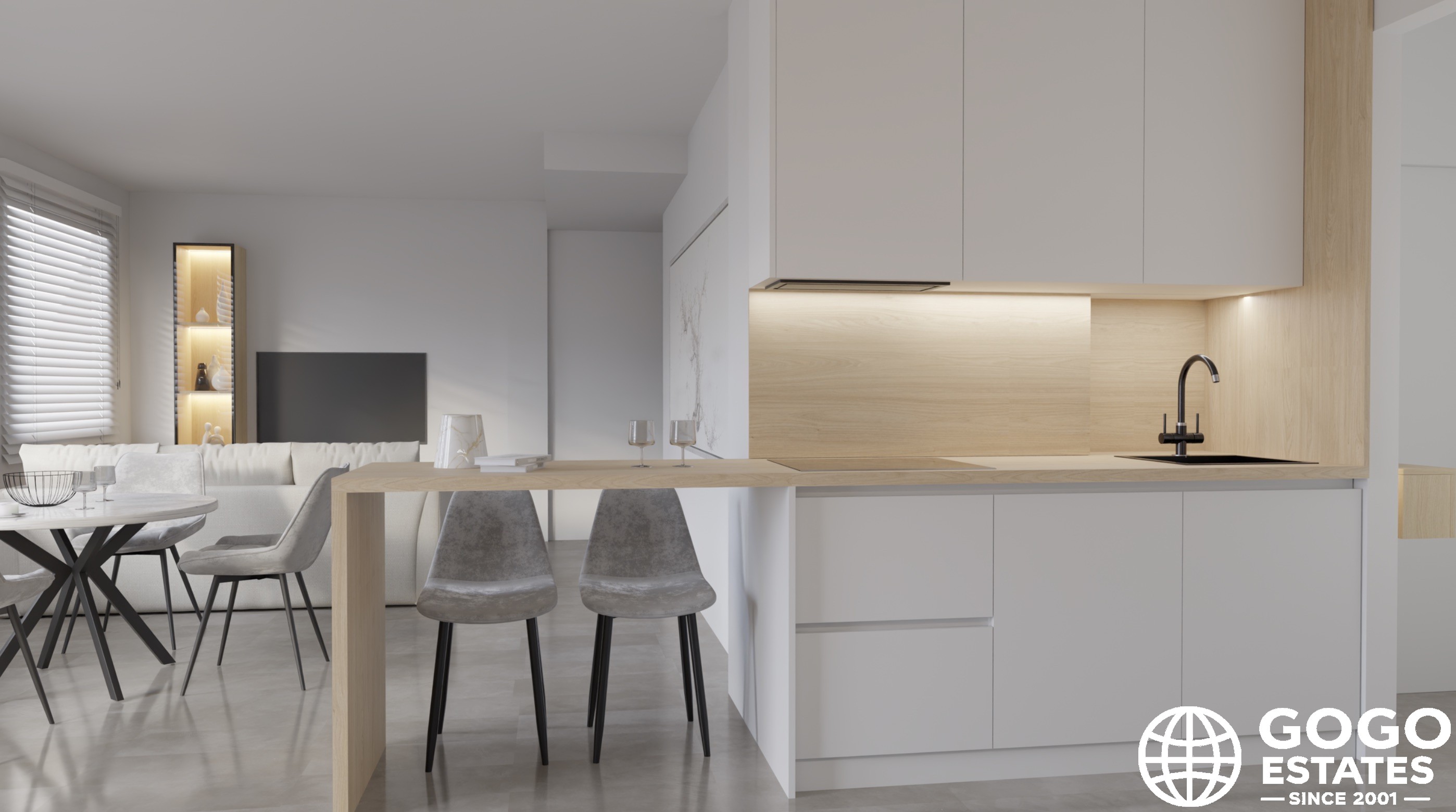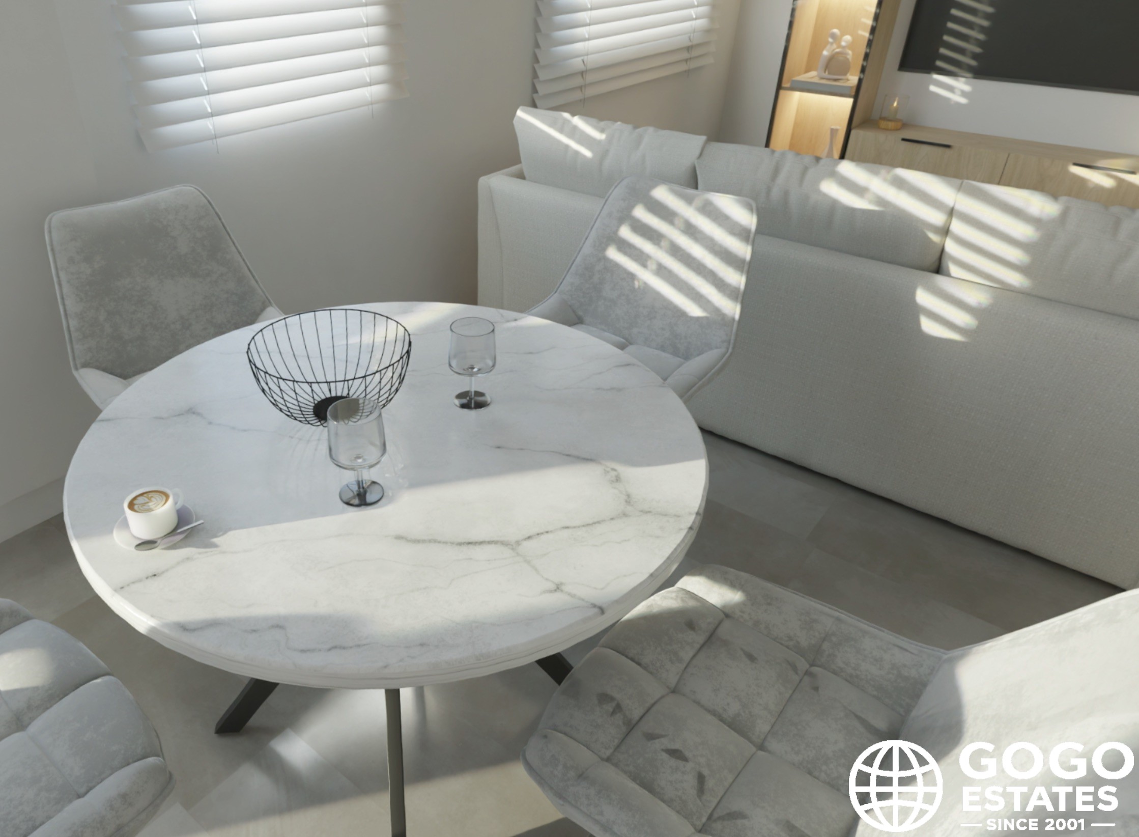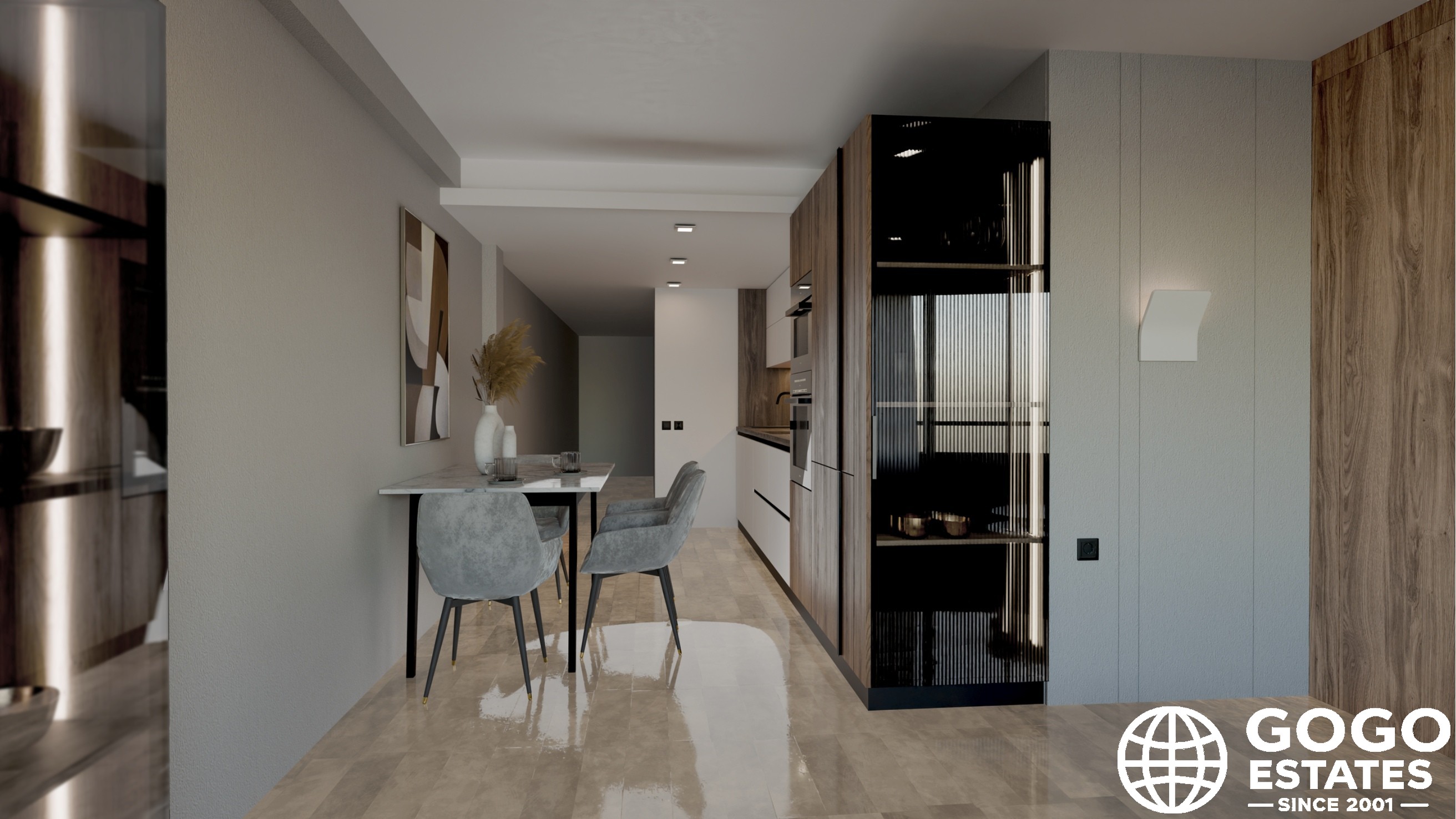 The terrace provides an ideal space to enjoy the Mediterranean climate, while the interior features ceramic floors, modern appliances, and built-in wardrobes for optimal storage. A video intercom system adds an extra layer of security.