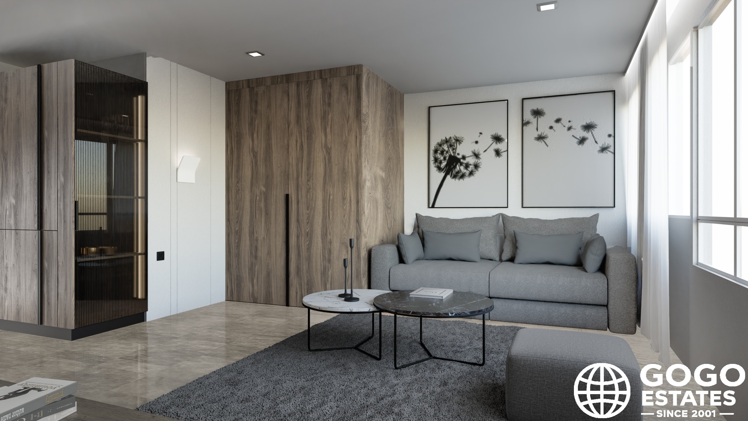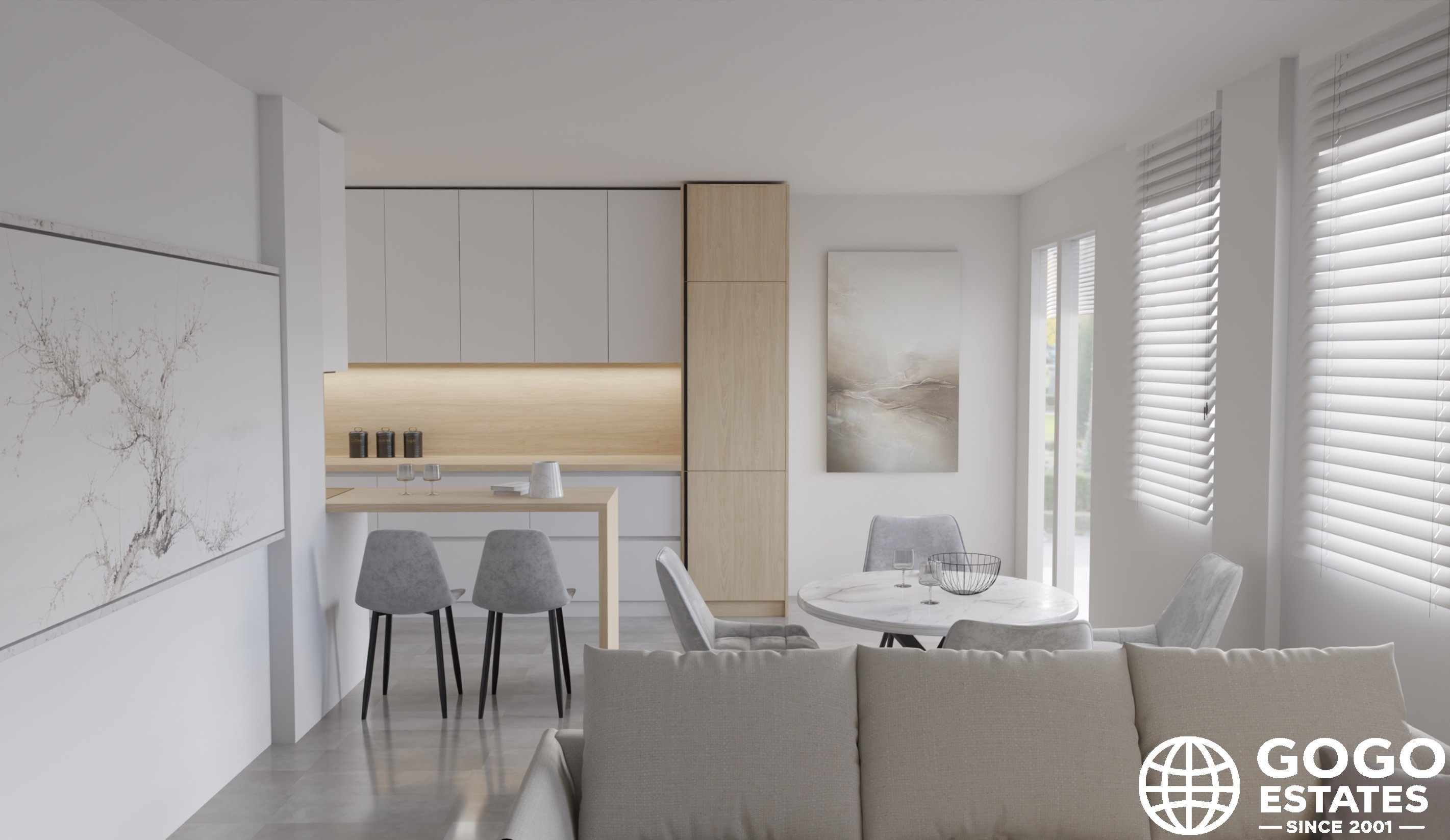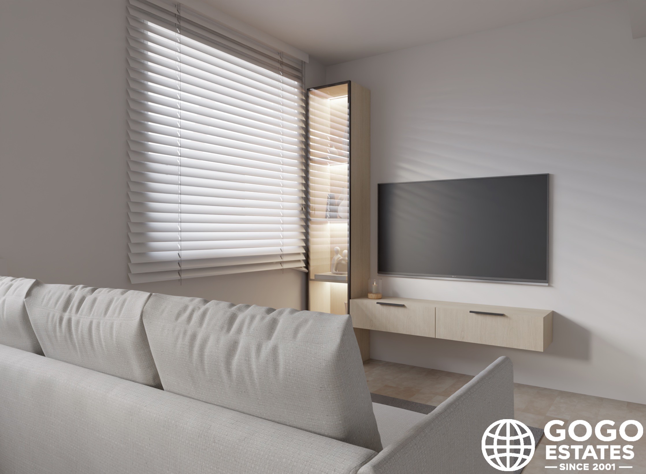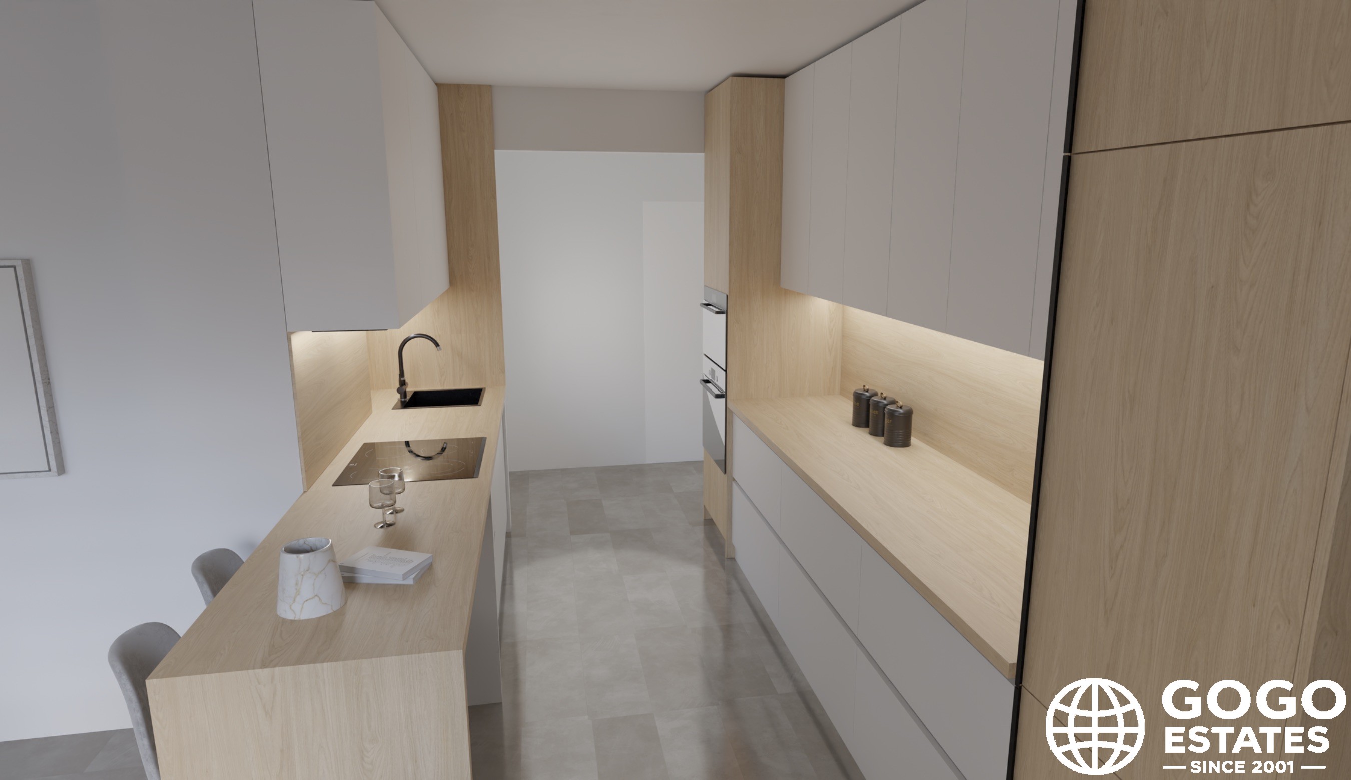 The terrace provides an ideal space to enjoy the Mediterranean climate, while the interior features ceramic floors, modern appliances, and built-in wardrobes for optimal storage. A video intercom system adds an extra layer of security.