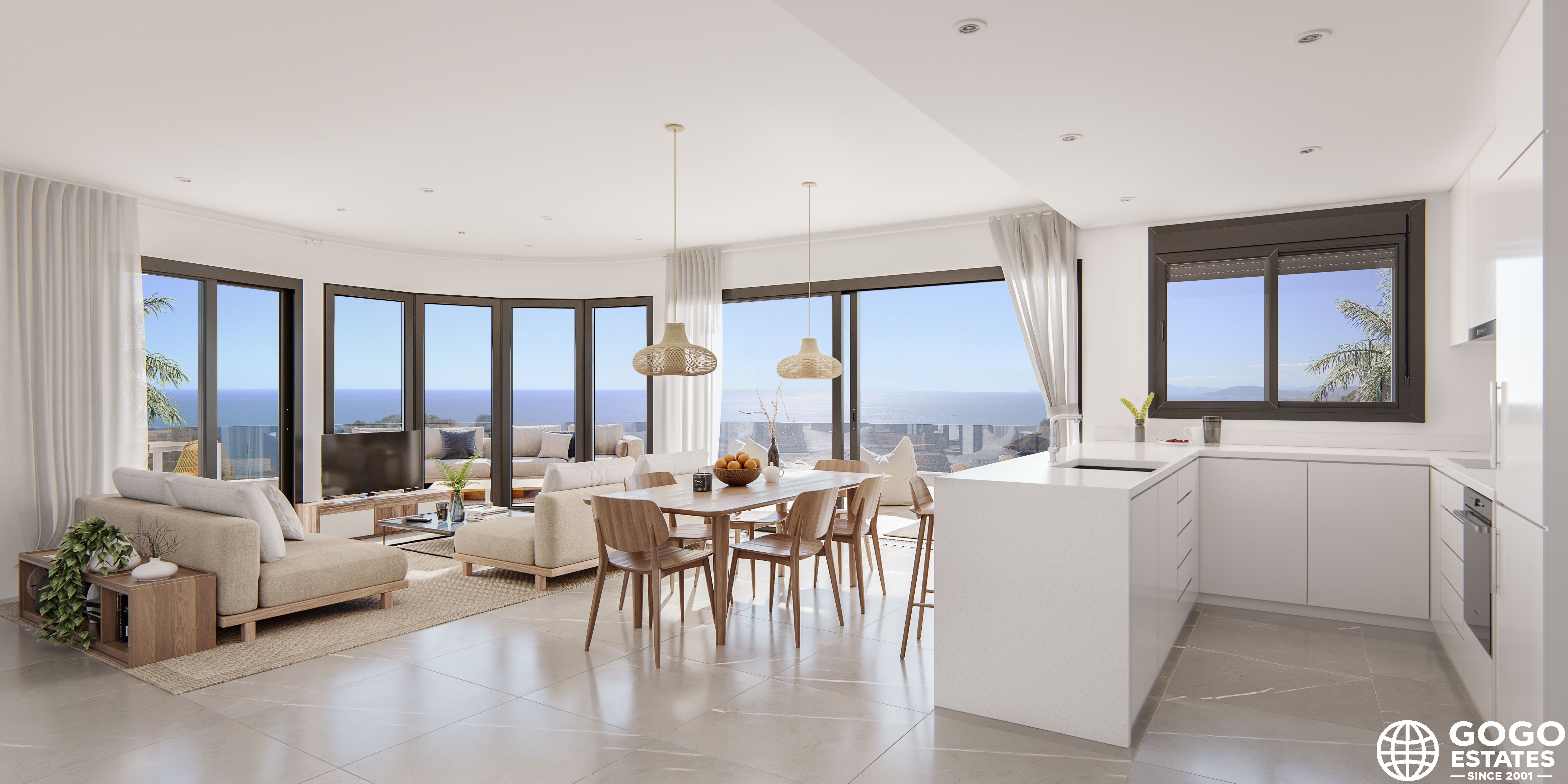 The outdoor spaces are designed to complement the natural surroundings, offering private terraces that are perfect for enjoying the Mediterranean climate. Access to a communal garage with electric car charging stations adds convenience and sustainability.