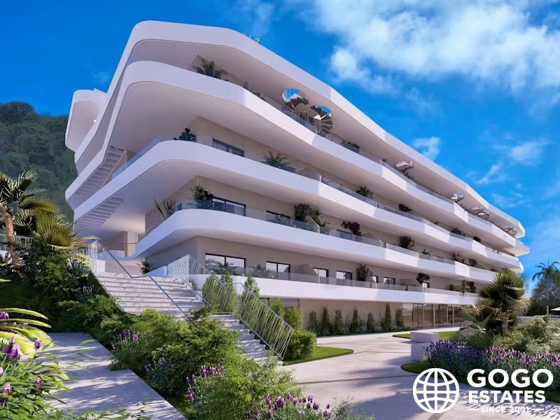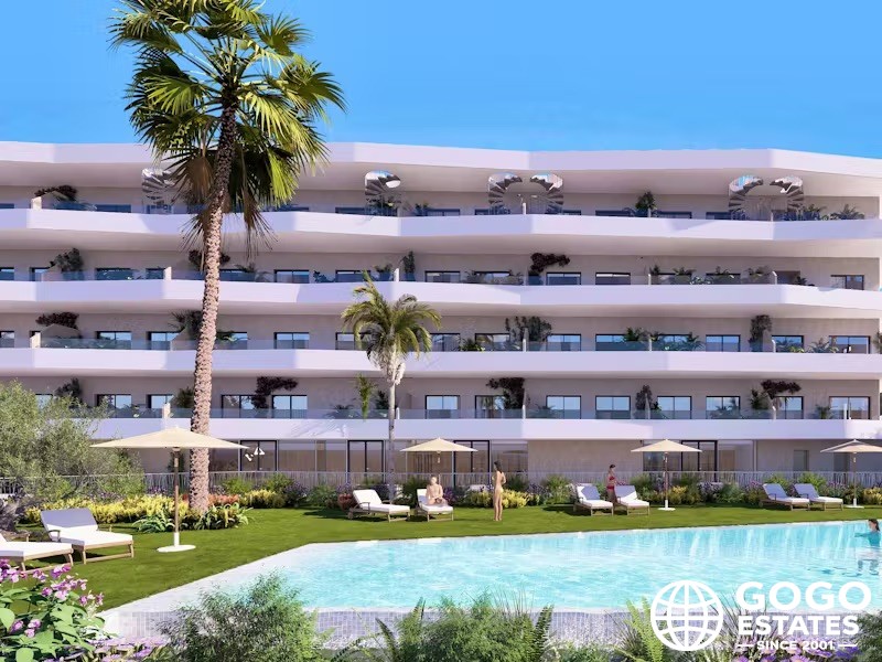 The exterior design maximizes enjoyment of the Mediterranean climate, with a terrace perfect for relaxing outdoors. The penthouse also includes a solarium, offering additional leisure space. Communal garden areas add a touch of greenery, creating a harmonious environment.