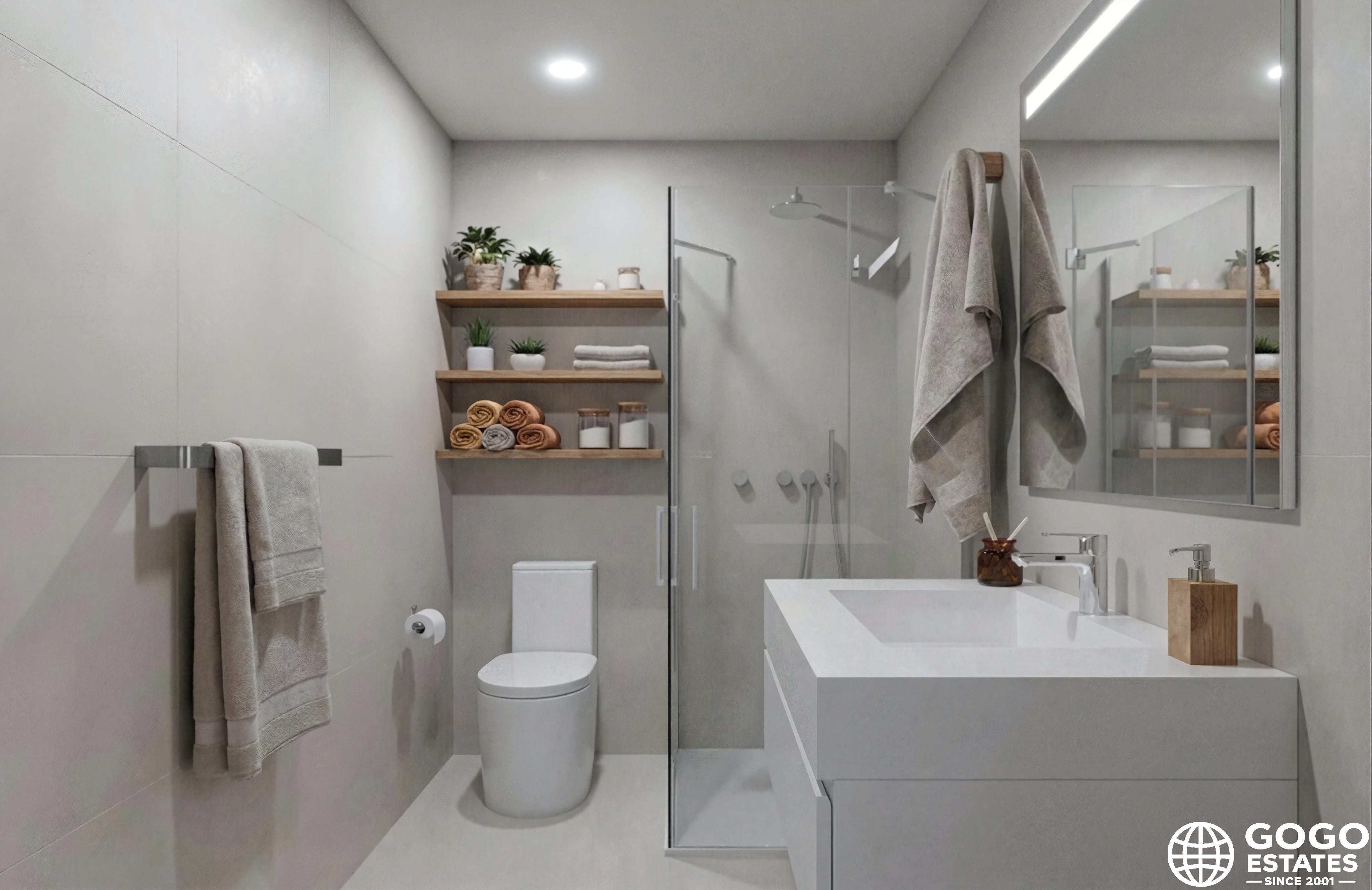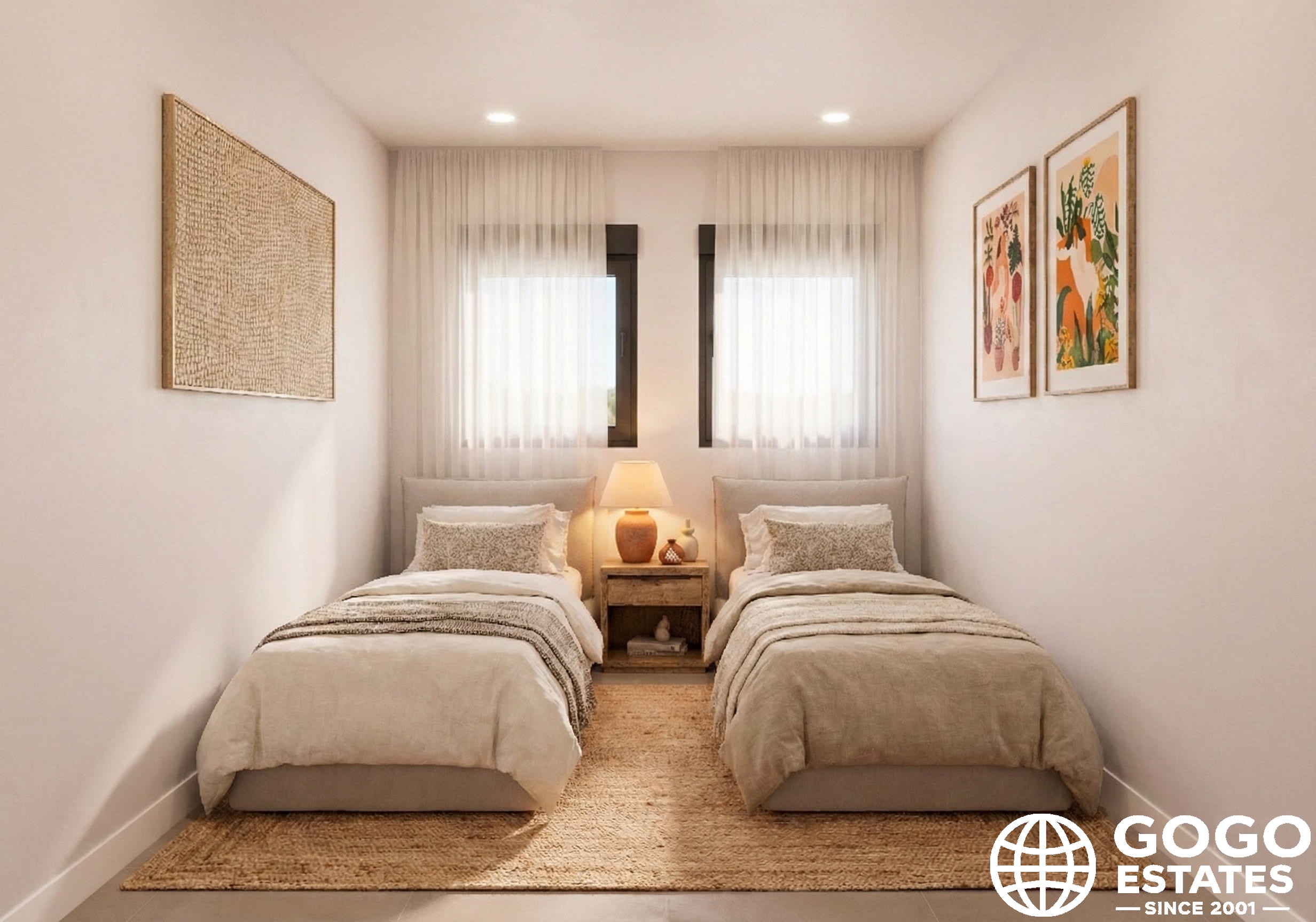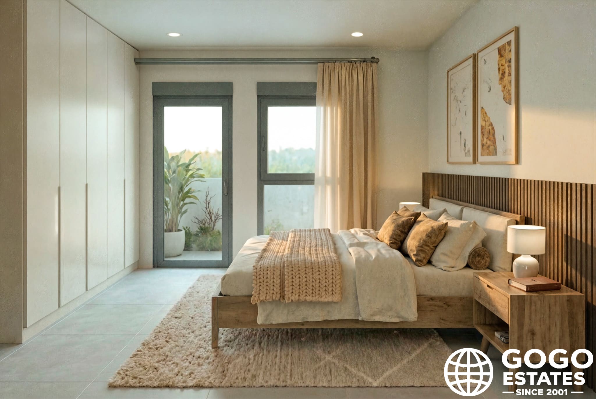 The interior of these homes is designed with attention to detail, offering a cozy and modern environment. The porcelain tile floors add a touch of elegance and are easy to maintain. Built-in wardrobes in the bedrooms optimize storage space, ensuring a tidy and functional environment.