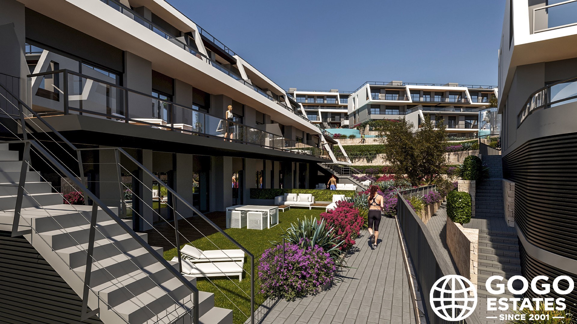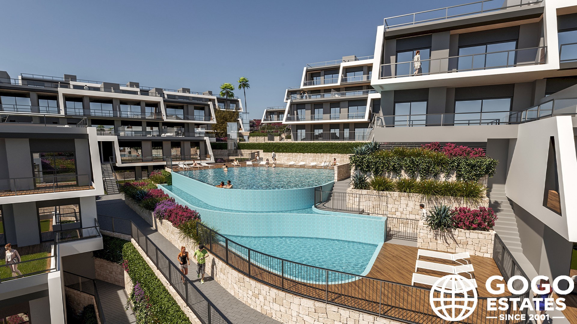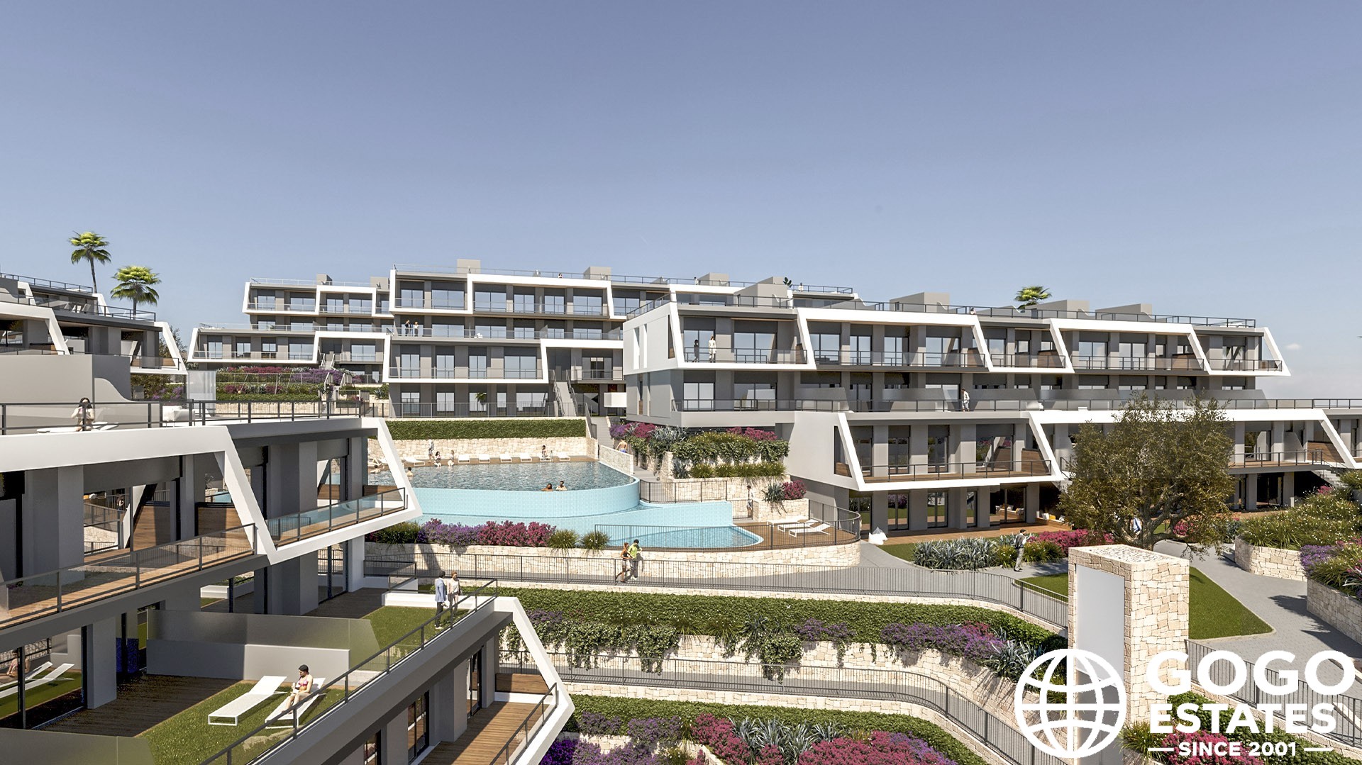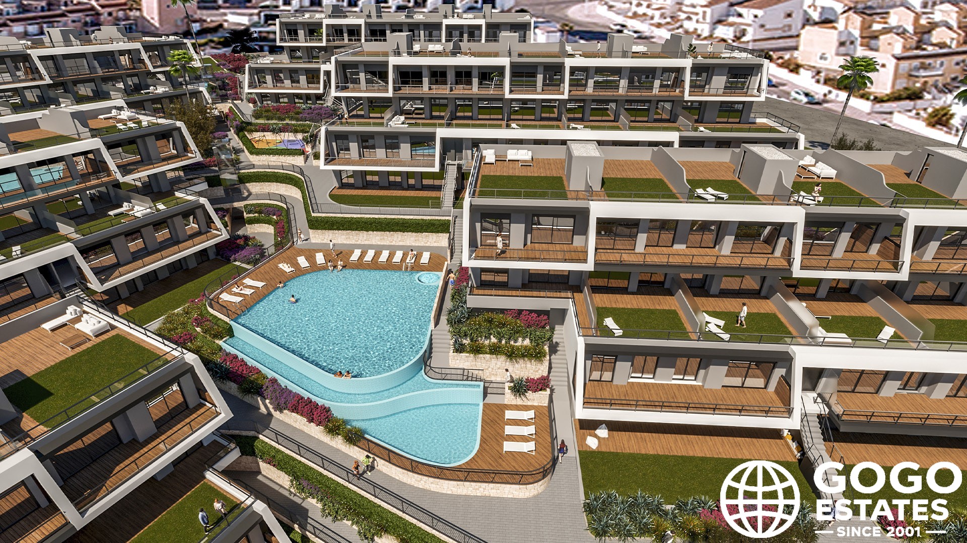 - Communal pool and gardens