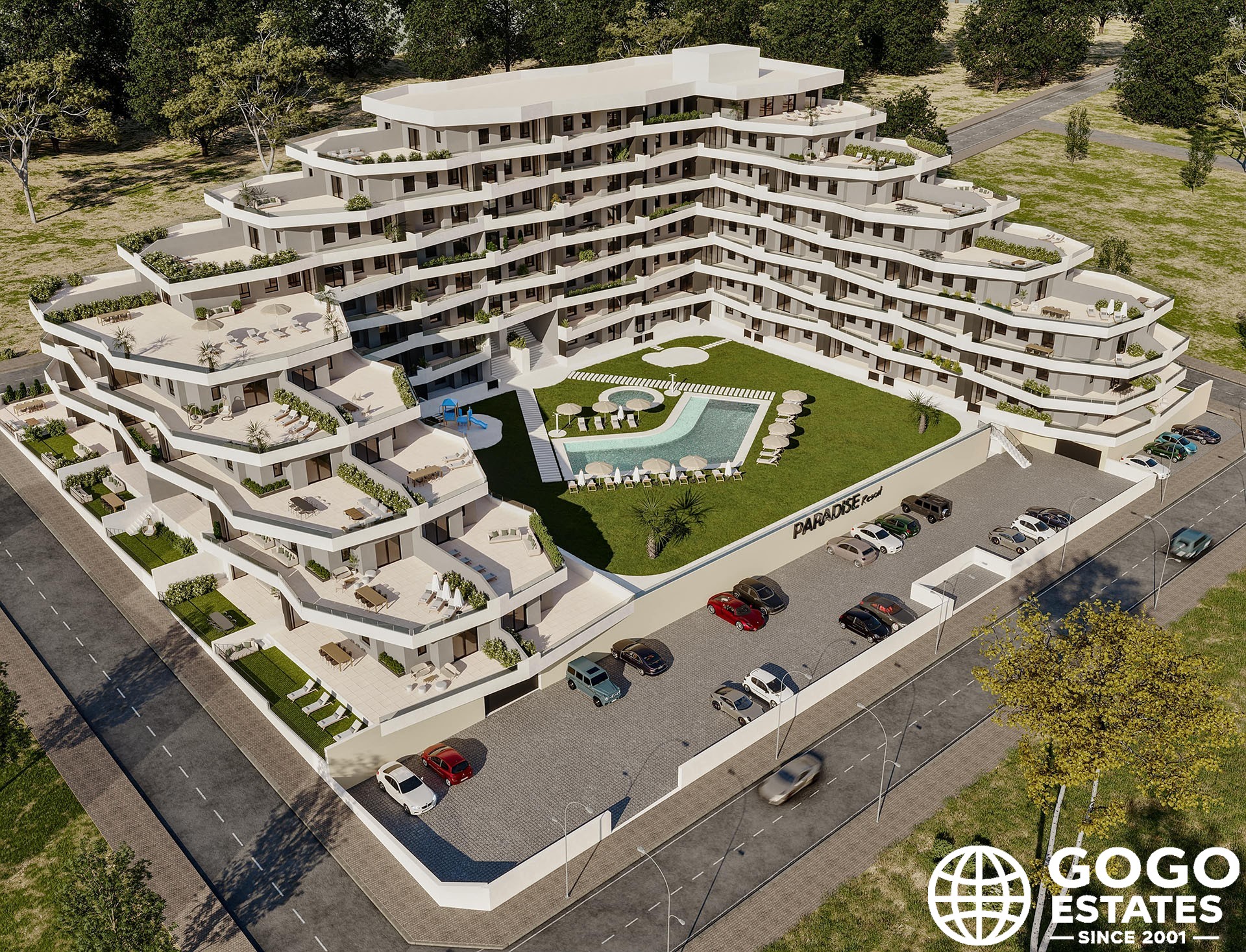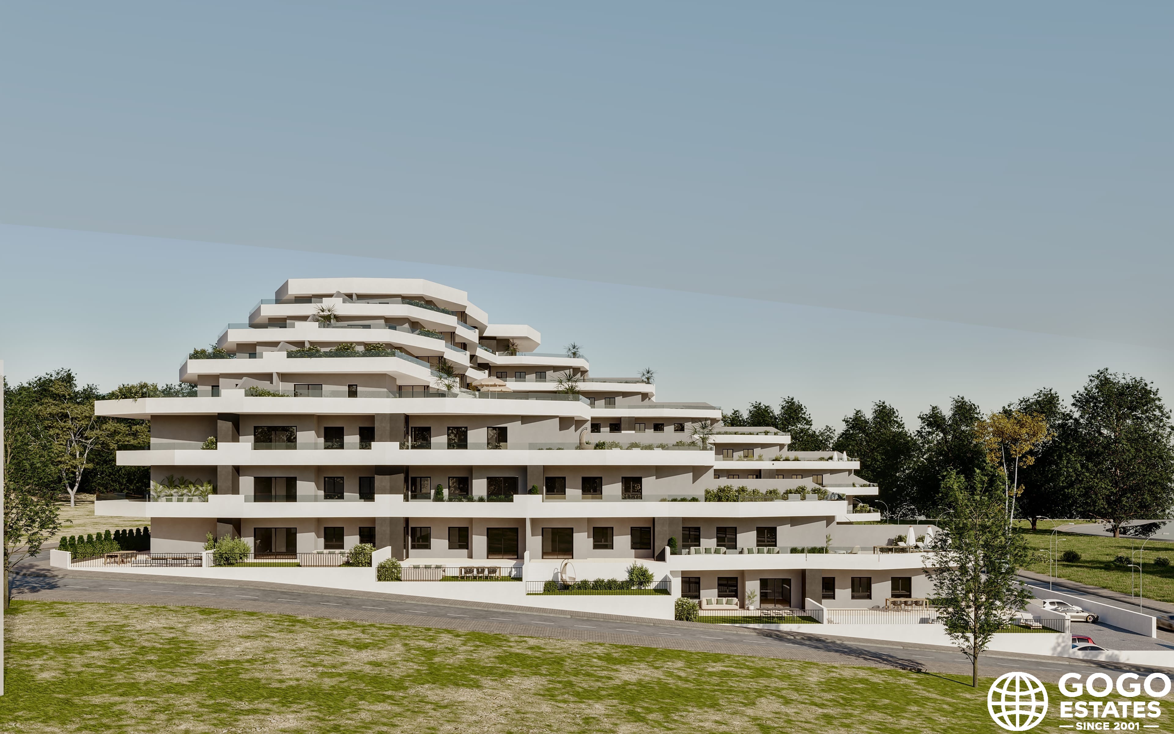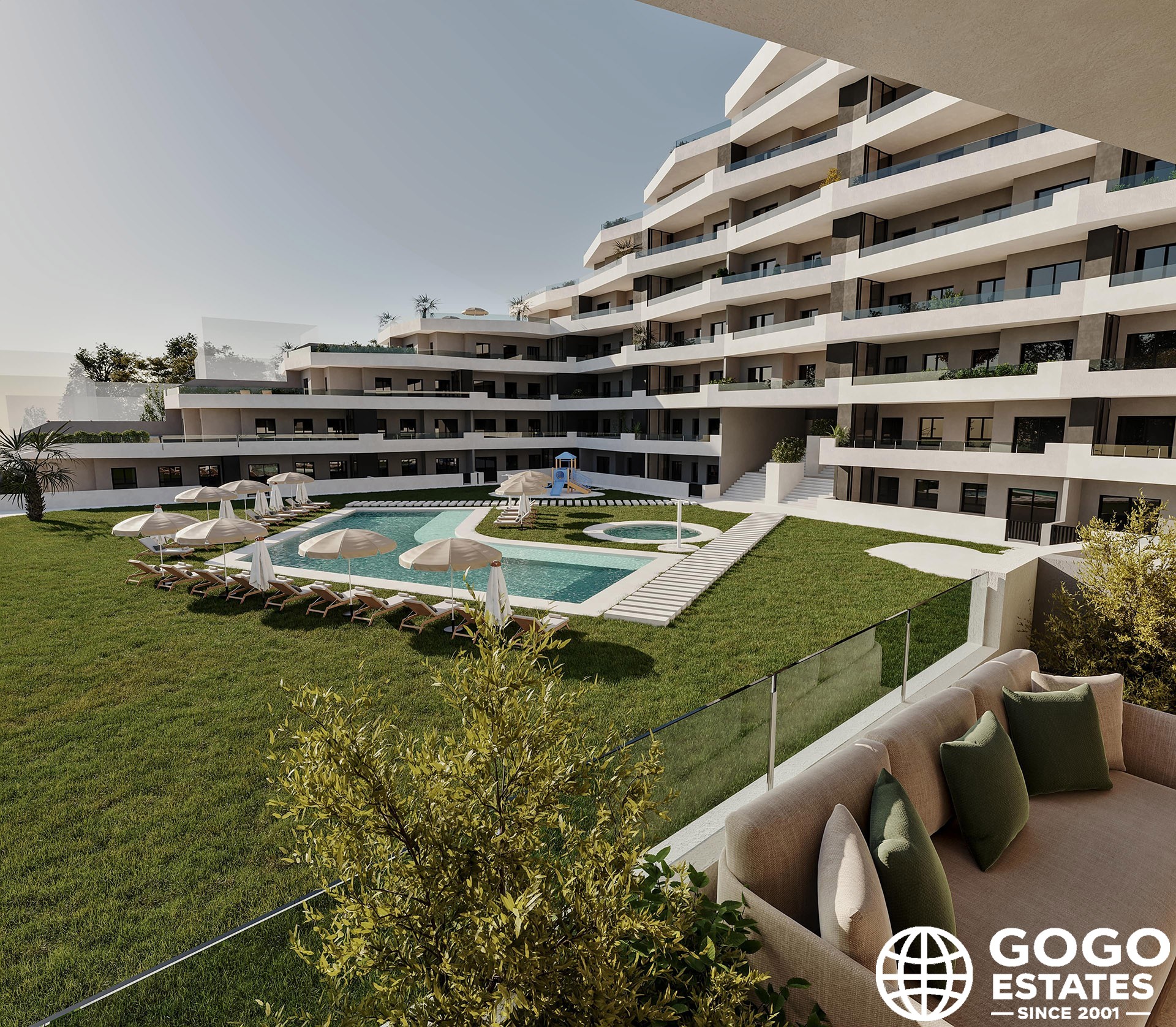 The properties are designed to maximize enjoyment of the Mediterranean climate, featuring private gardens and terraces. Some homes even include a solarium for year-round sun exposure. Community landscaped areas offer a shared space for relaxation.