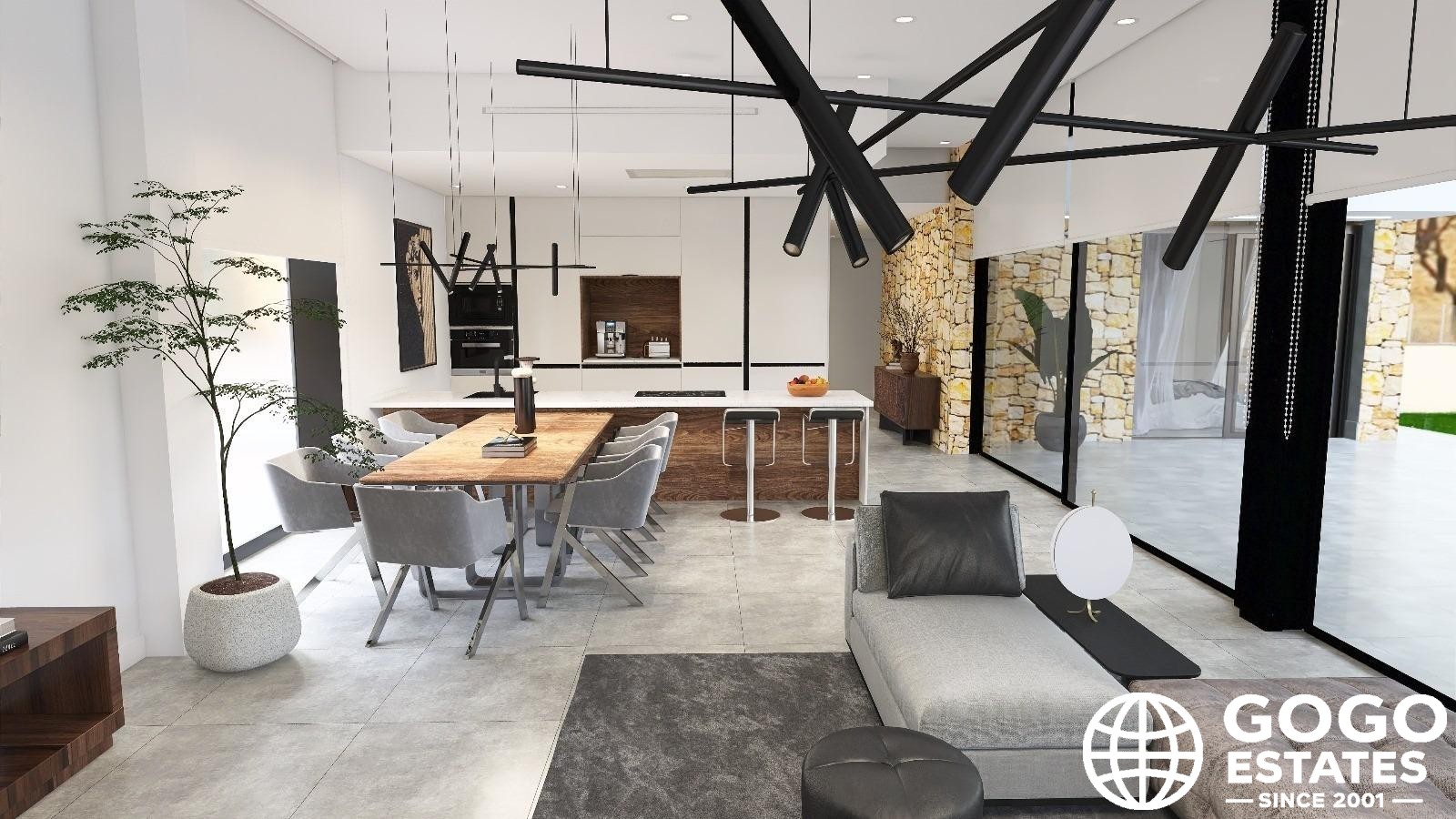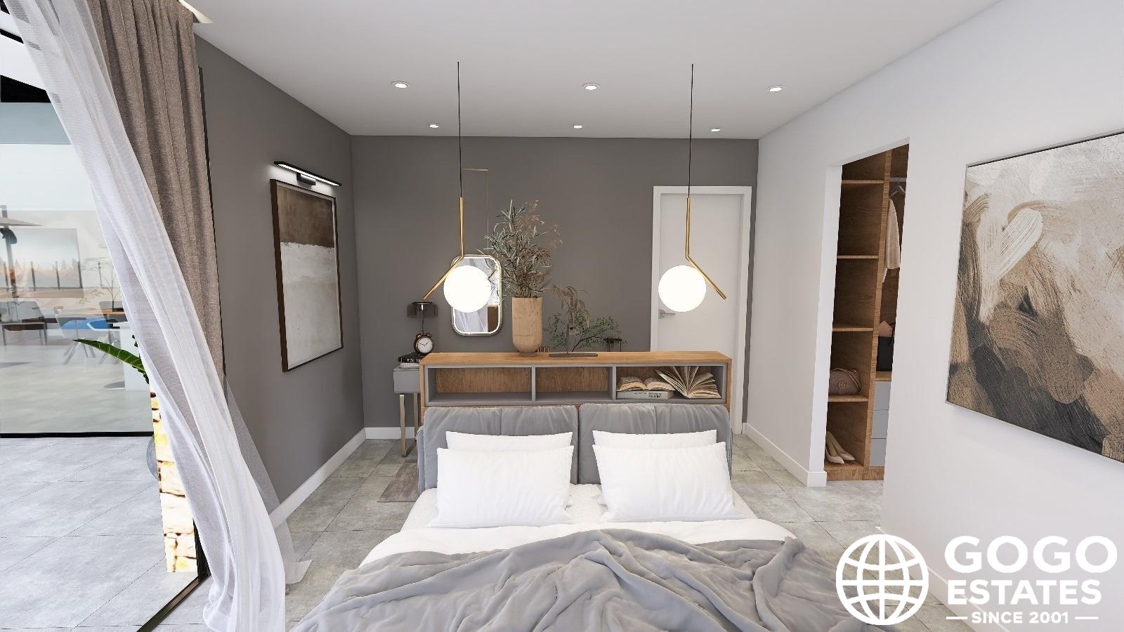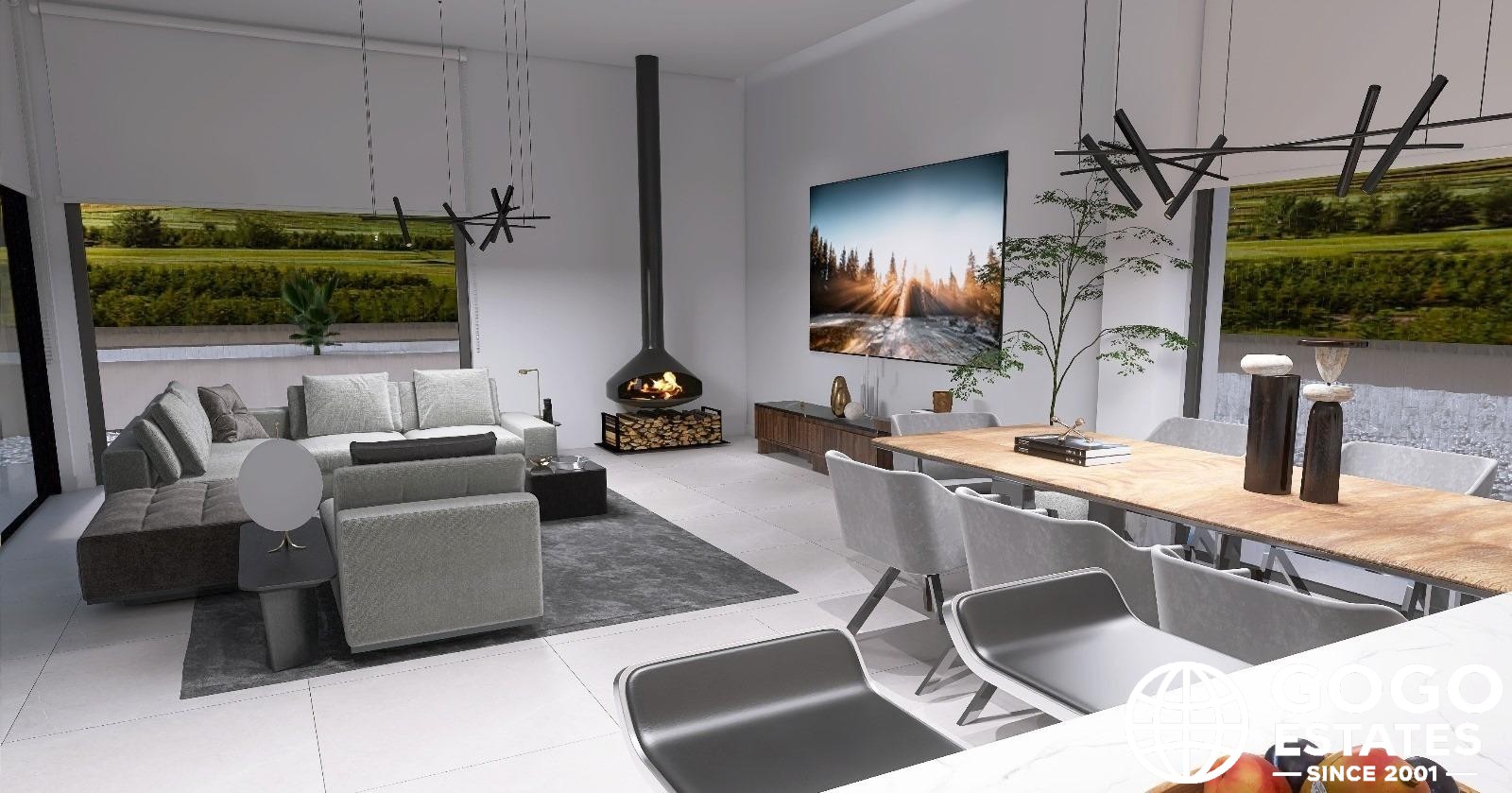 The exterior design integrates with the natural surroundings. Each property features a private garden and spacious terraces, ideal for leisure and relaxation. A private pool and a pergola provide elegance and functionality.