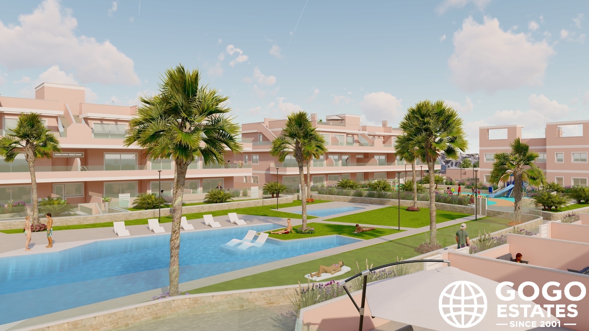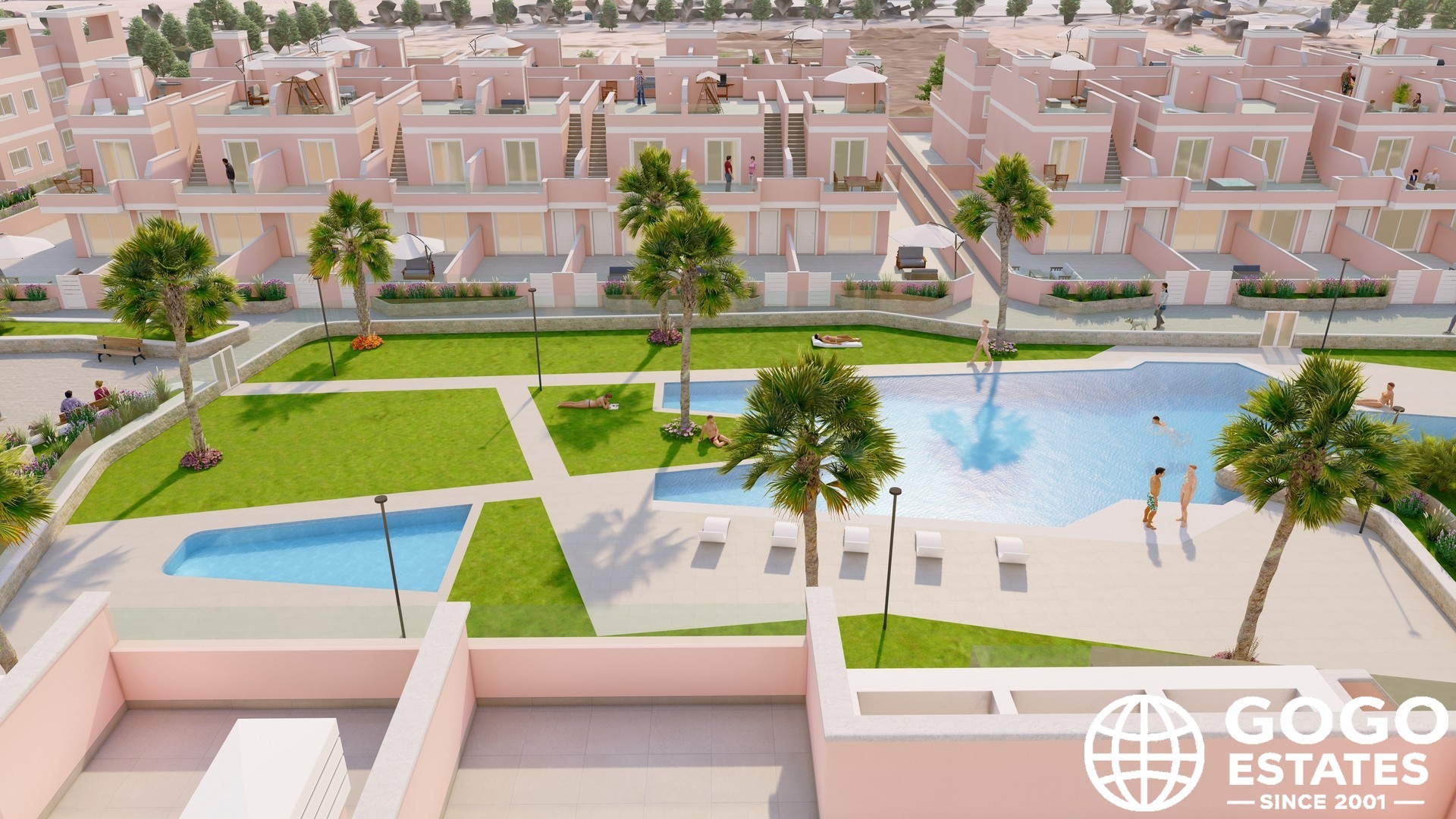 Enjoy outdoor living with a 53 m² terrace, perfect for relaxing or dining. The complex includes communal gardens, a pool, and a children's play area, fostering a community atmosphere.