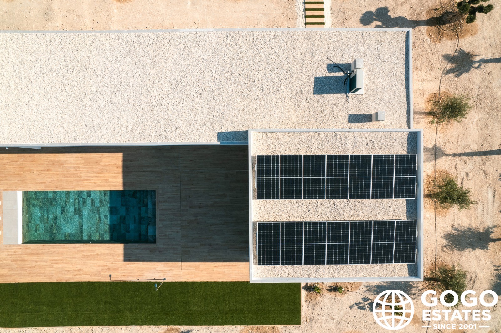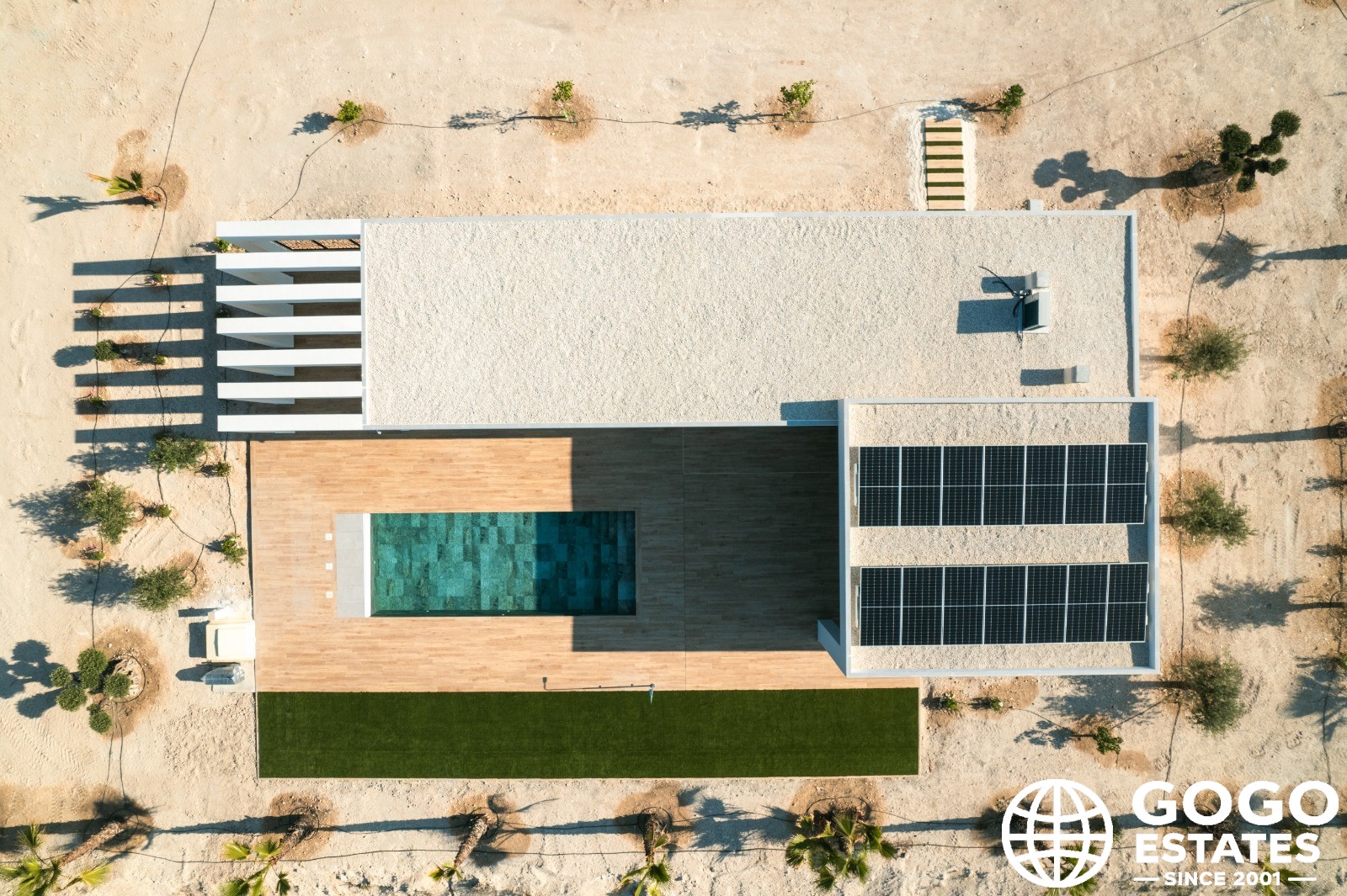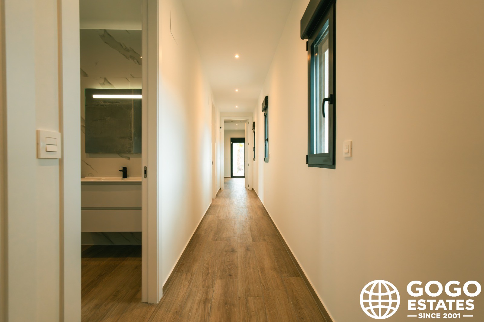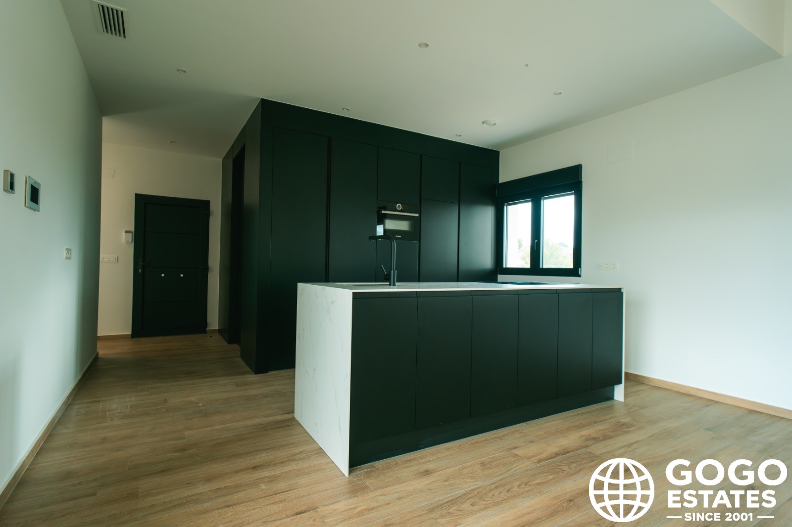 Inside, the home features three bedrooms and two bathrooms, offering a comfortable and functional space. The kitchen is equipped with modern appliances, ensuring convenience in daily life. Air conditioning and pre-installation of air conditioning guarantee a pleasant environment throughout the year. Built-in wardrobes provide efficient storage, maintaining order and organization in the home.