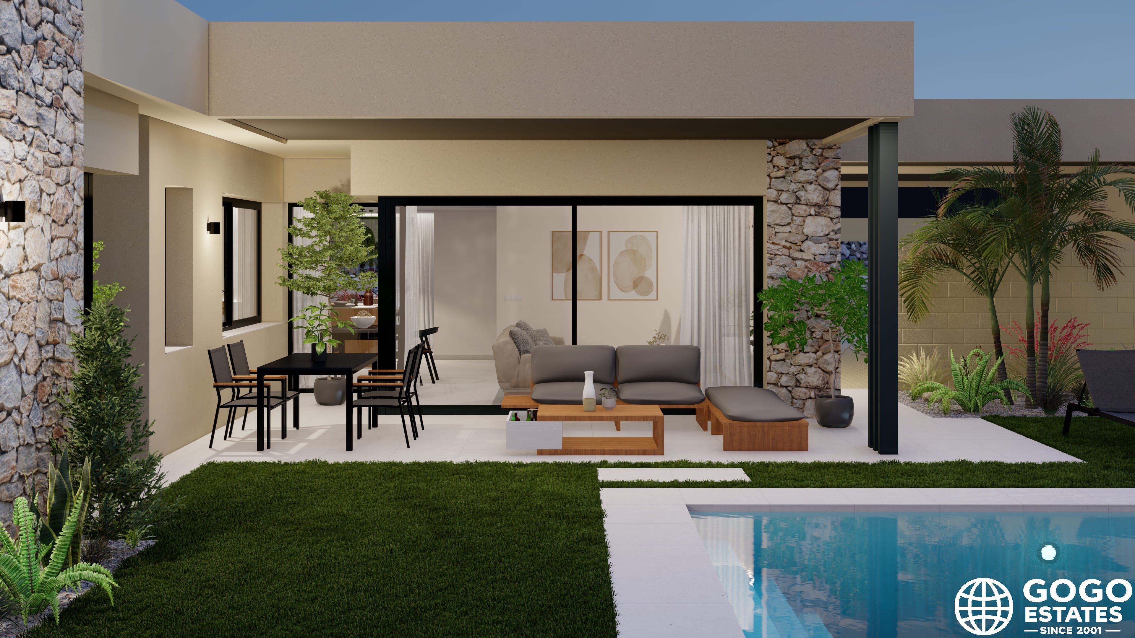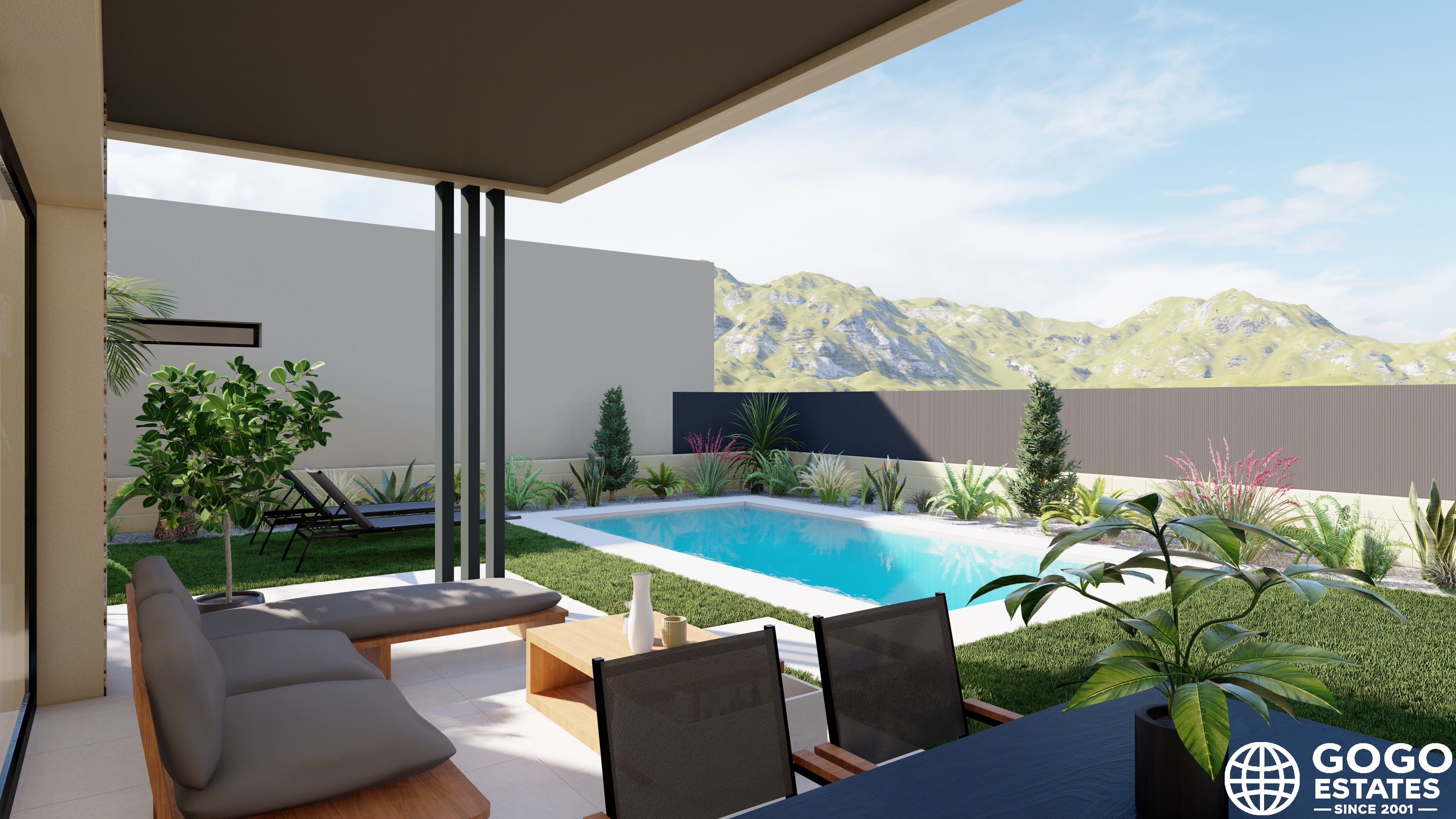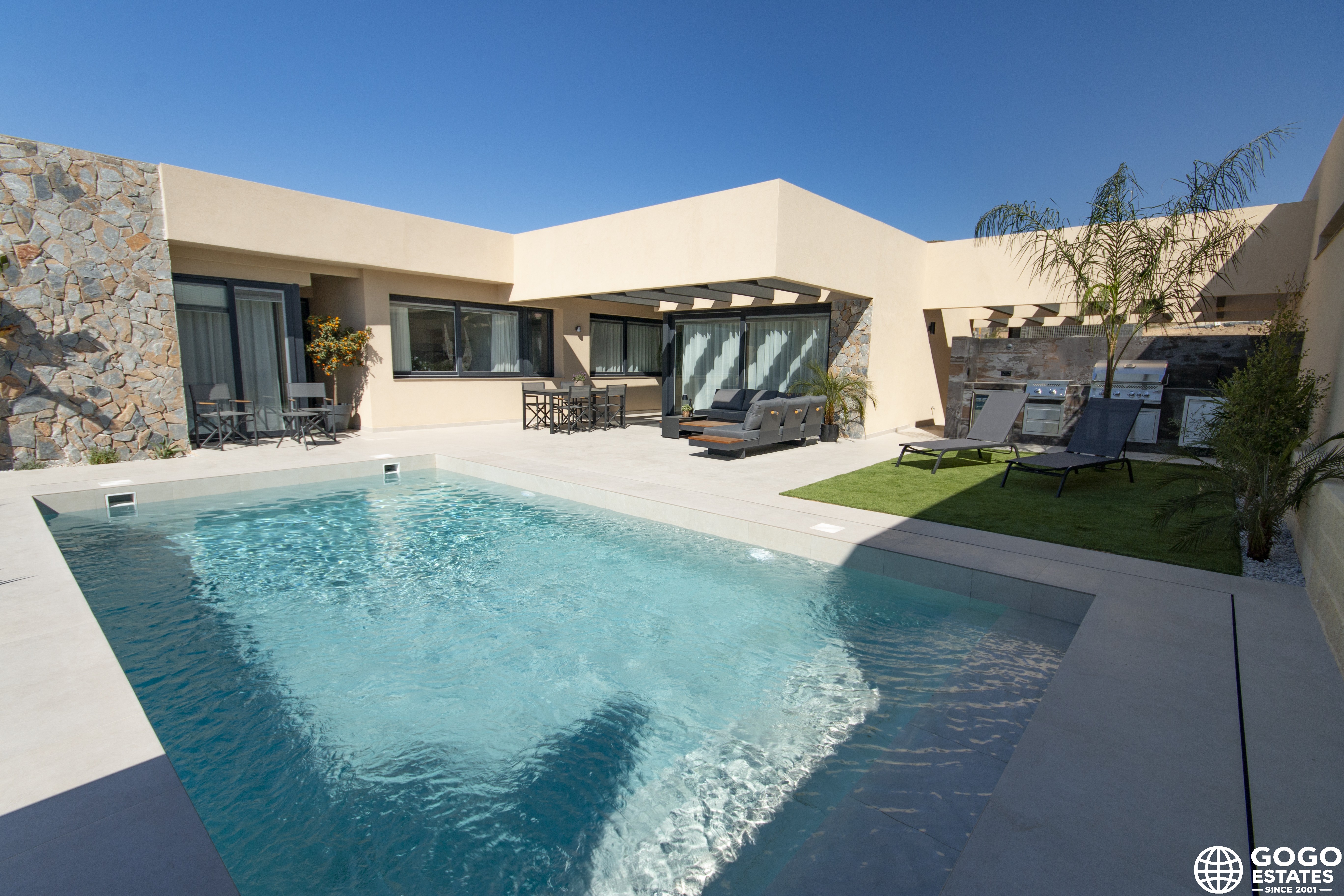 Each home is designed for maximum comfort, featuring modern amenities and quality finishes. The exterior design integrates with the natural surroundings, offering a private garden and terrace. A pergola adds elegance, while a private pool allows year-round enjoyment of the Mediterranean climate.