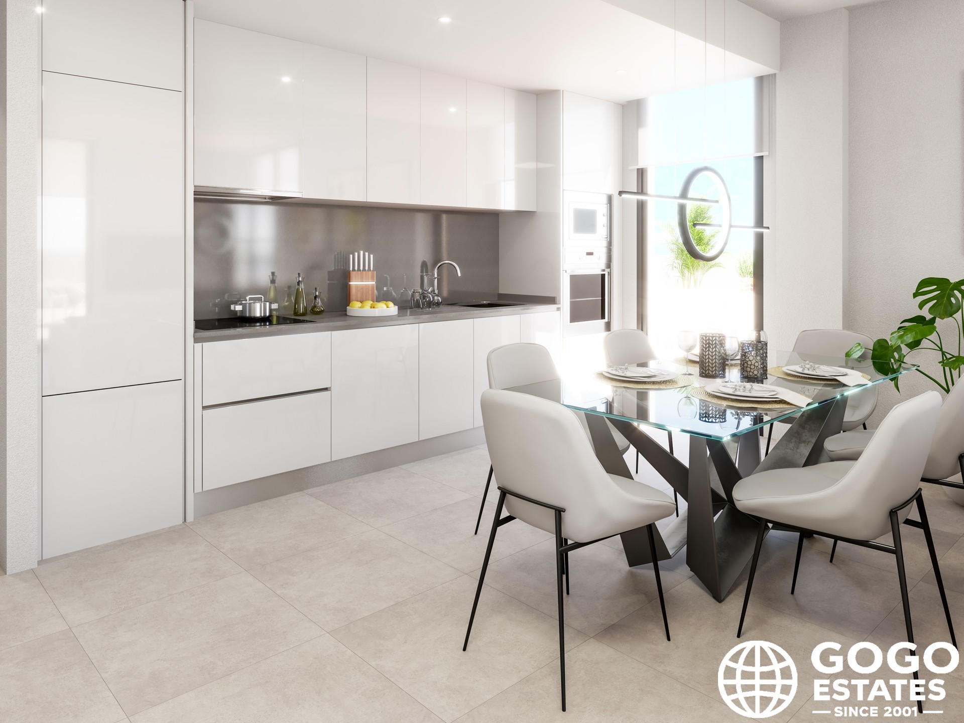 The property features a private terrace, perfect for enjoying the Mediterranean climate. Inside, the apartment includes 2 bedrooms and 2 bathrooms, with porcelain tile floors and pre-installed air conditioning. The kitchen is equipped with appliances, and built-in wardrobes provide ample storage.