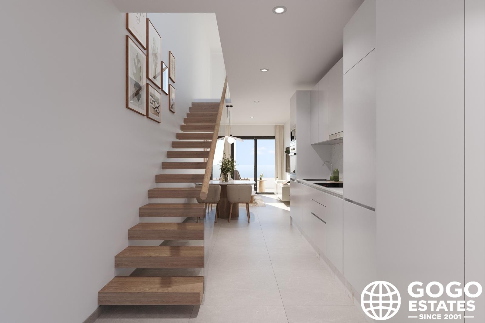 The penthouse features a private terrace perfect for outdoor relaxation, and the solarium provides extra space for sunbathing. Inside, modern features like porcelain stoneware floors and built-in wardrobes ensure comfort and functionality. The pre-installation of air conditioning and heating, along with a video intercom, adds to the convenience.