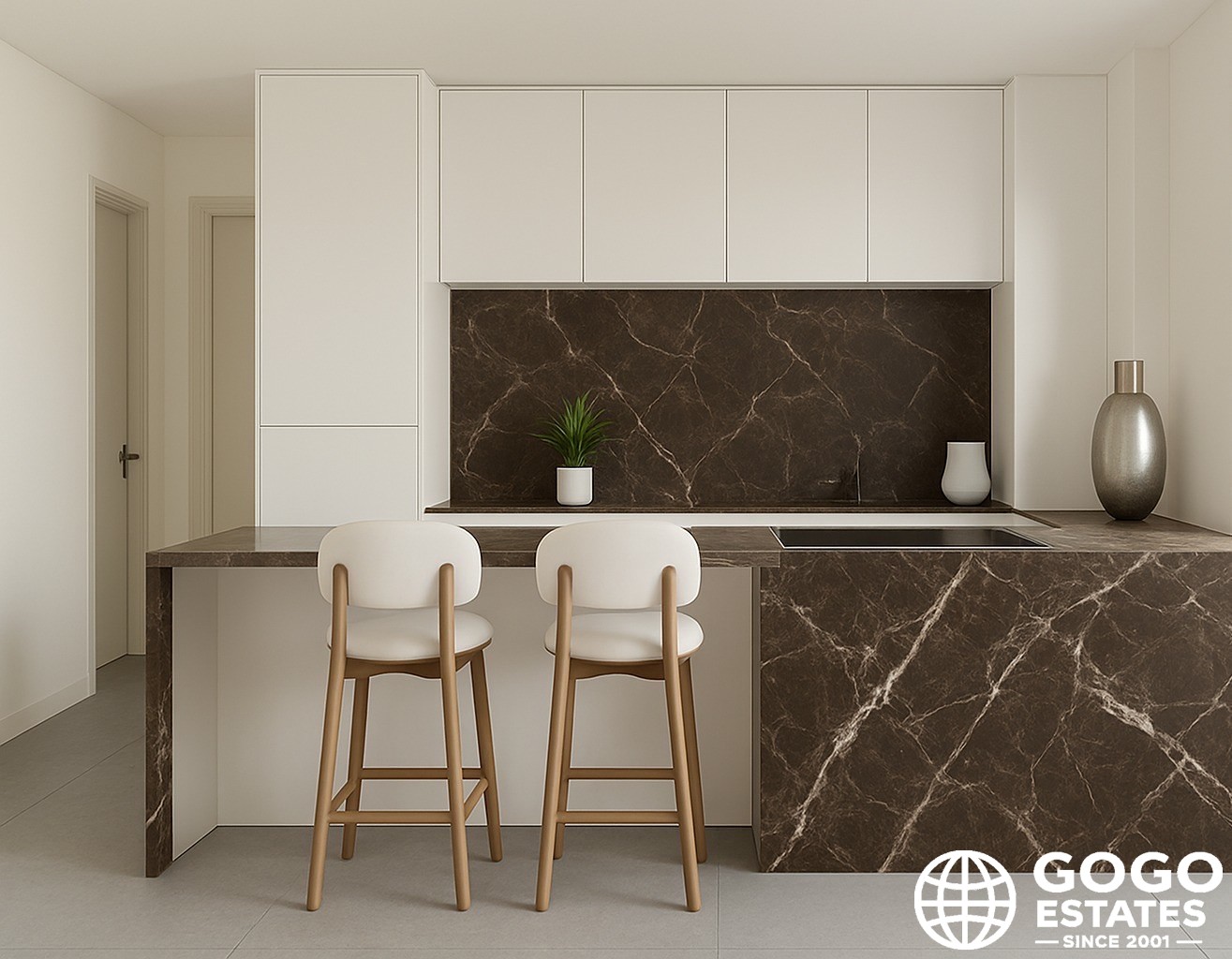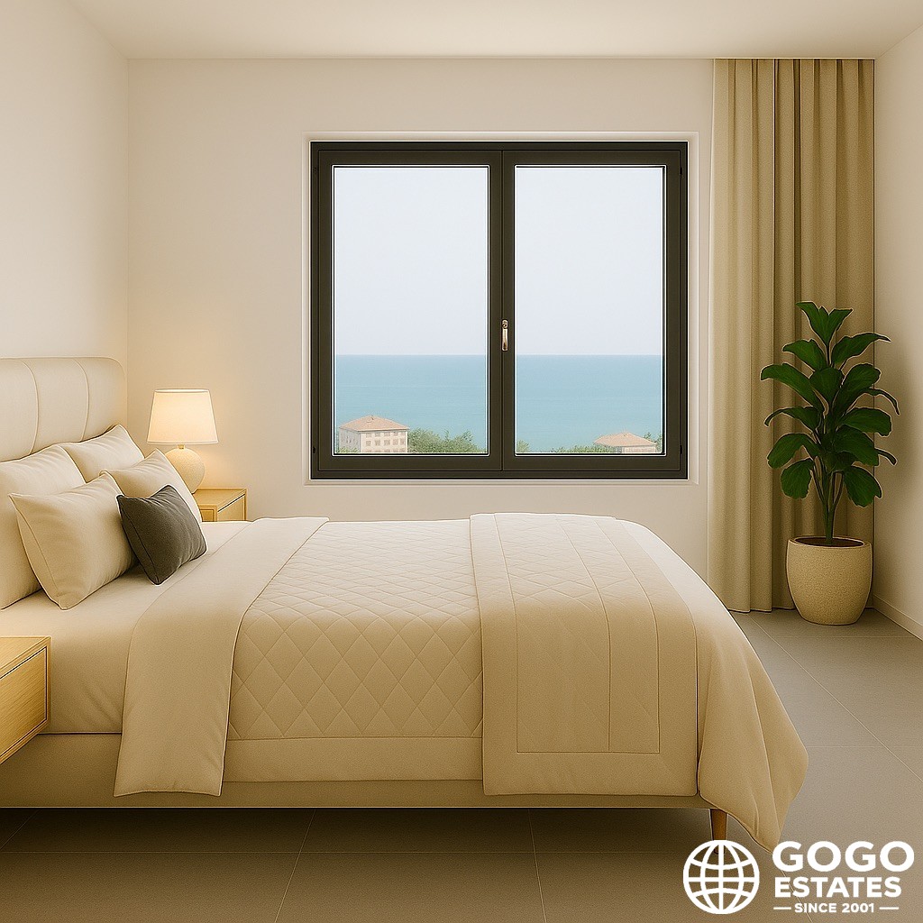 The interiors are elegantly designed with porcelain tile floors and built-in wardrobes, ensuring functionality and style. The property is equipped with modern appliances, ready for immediate use.